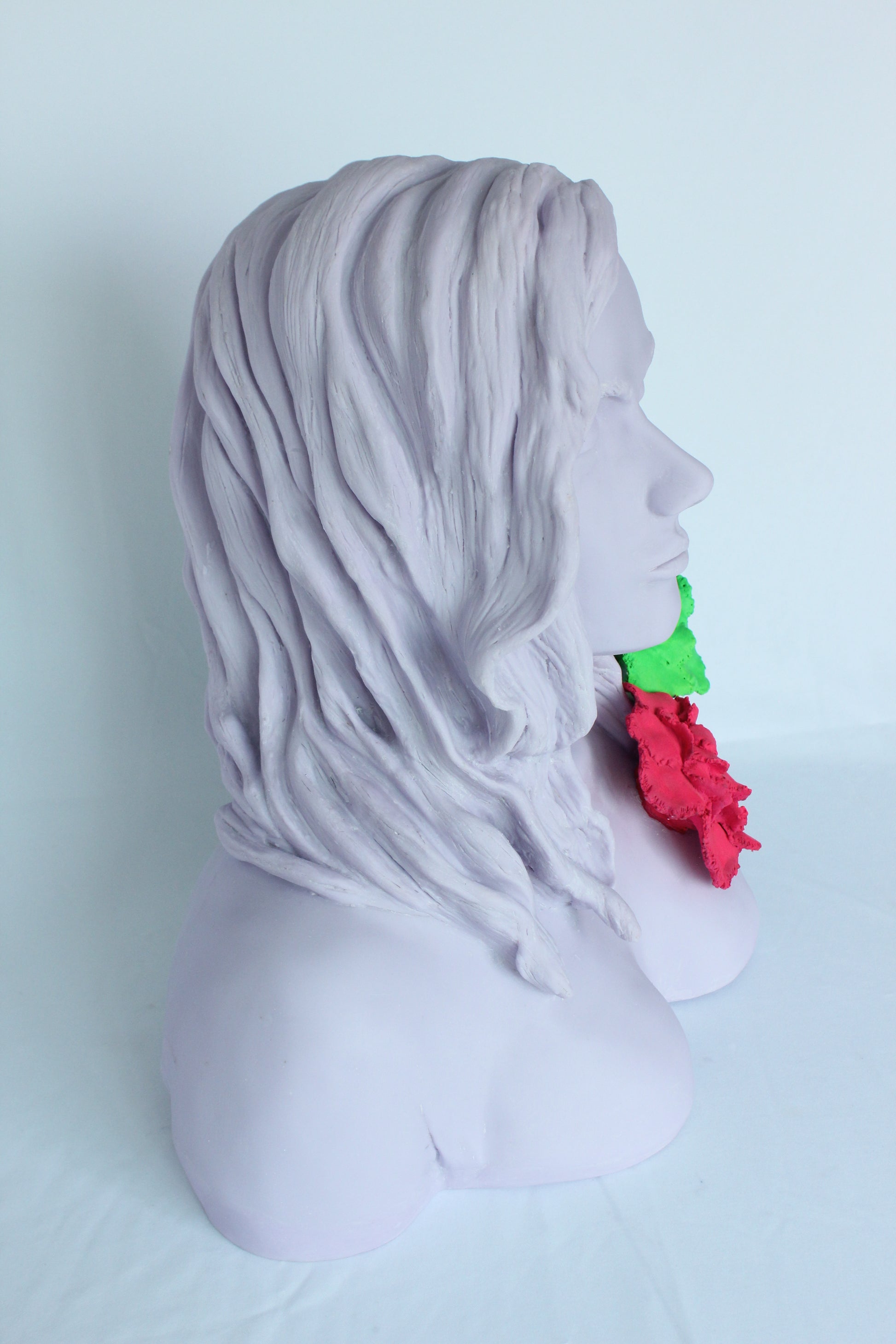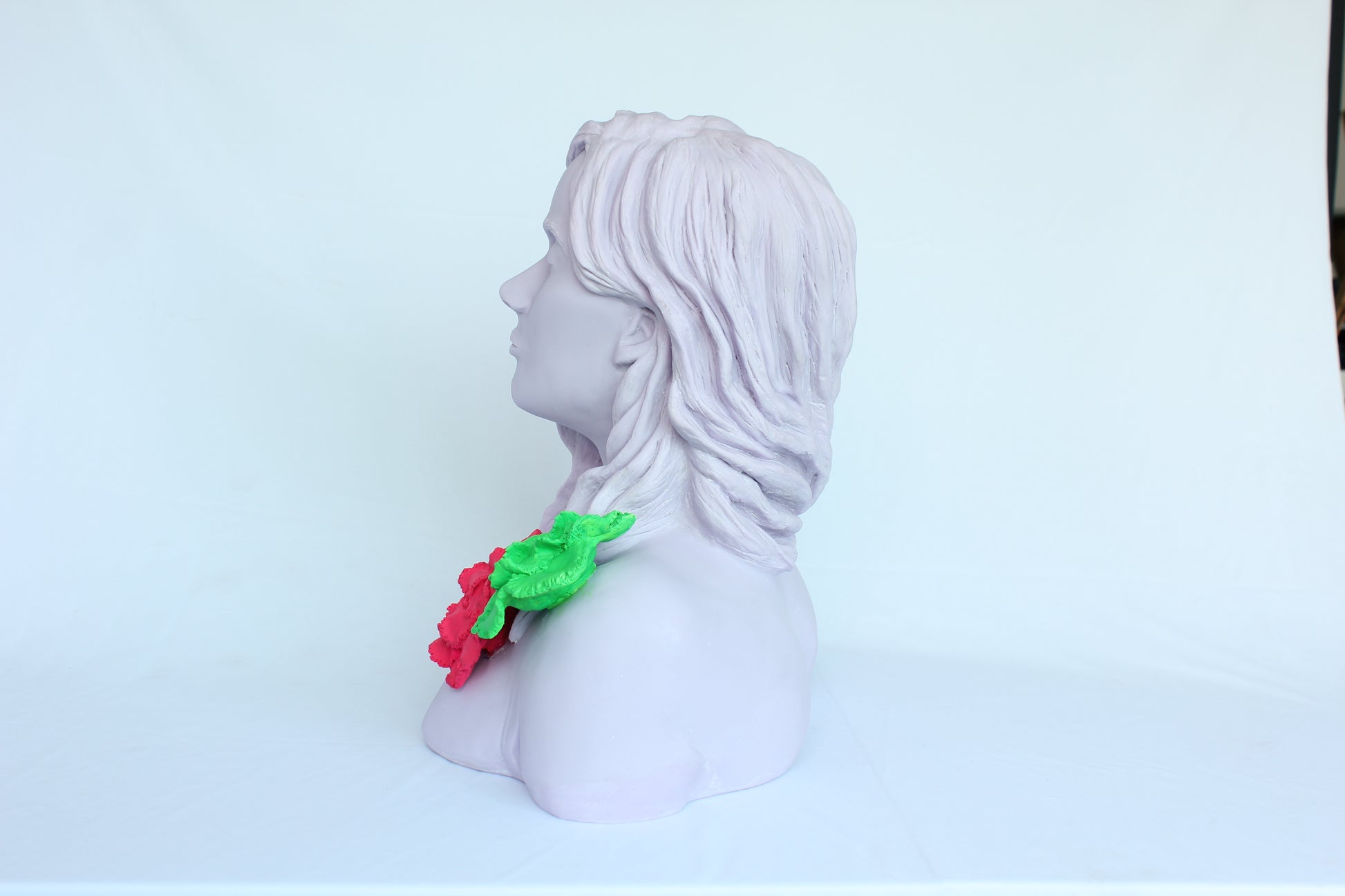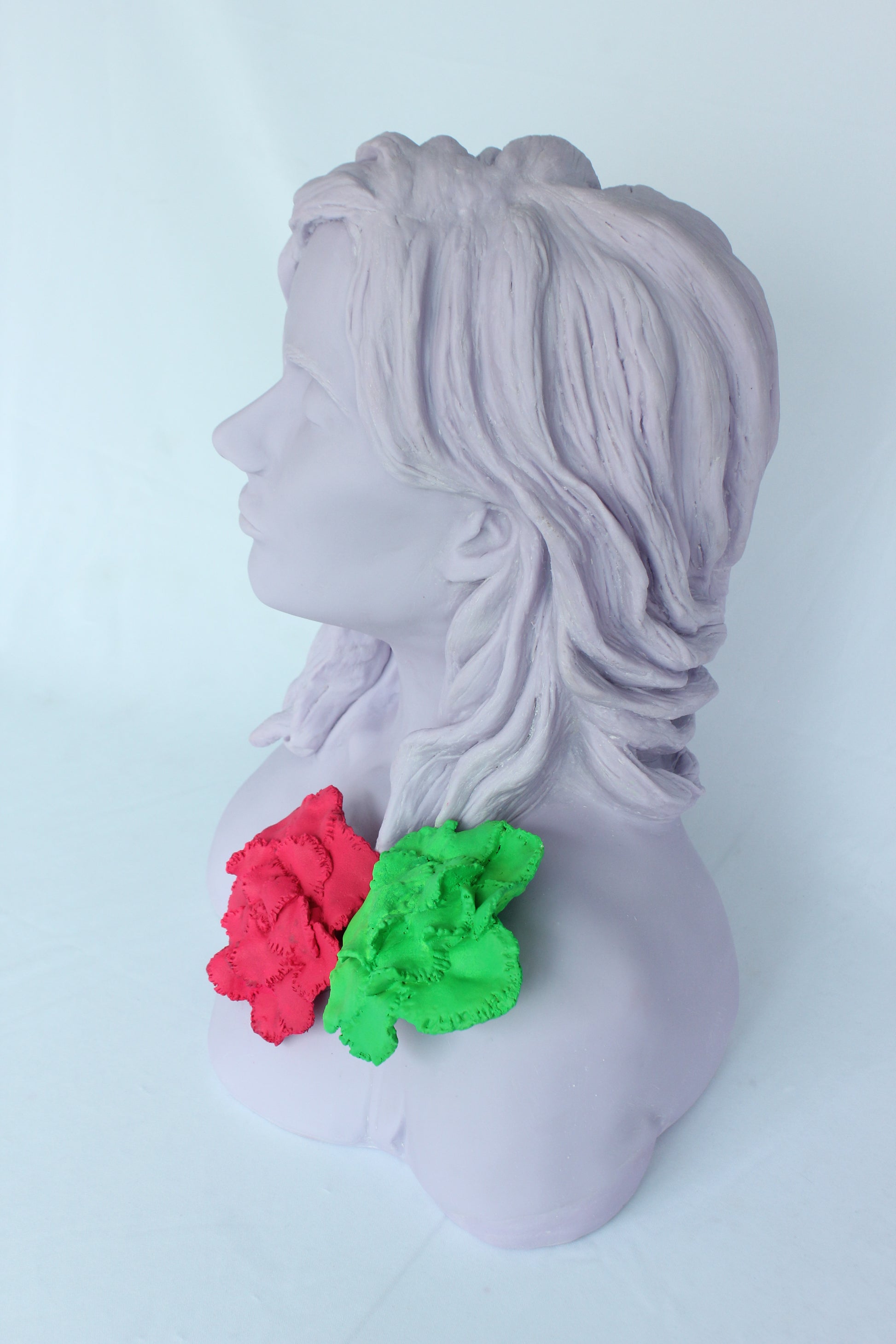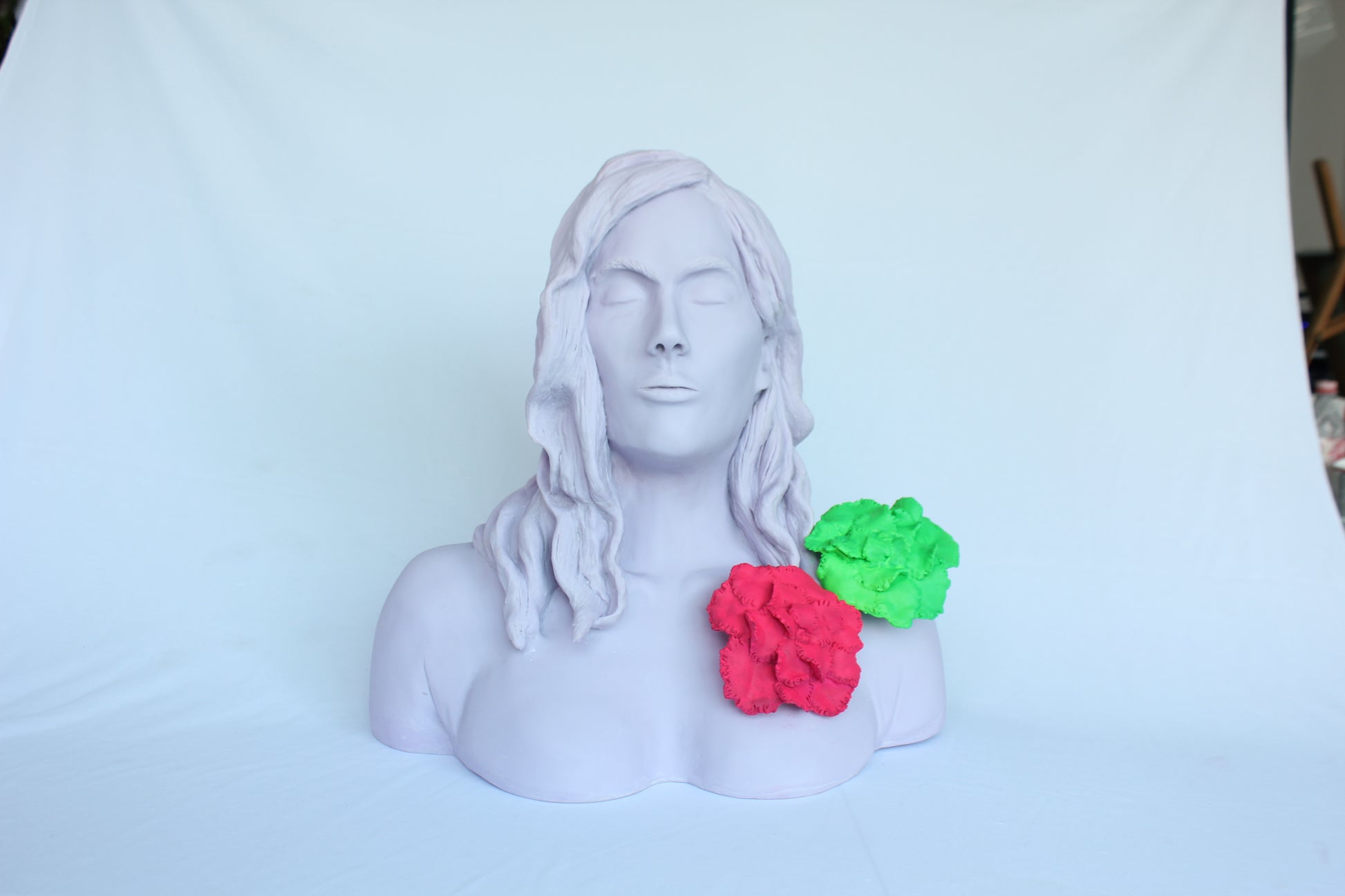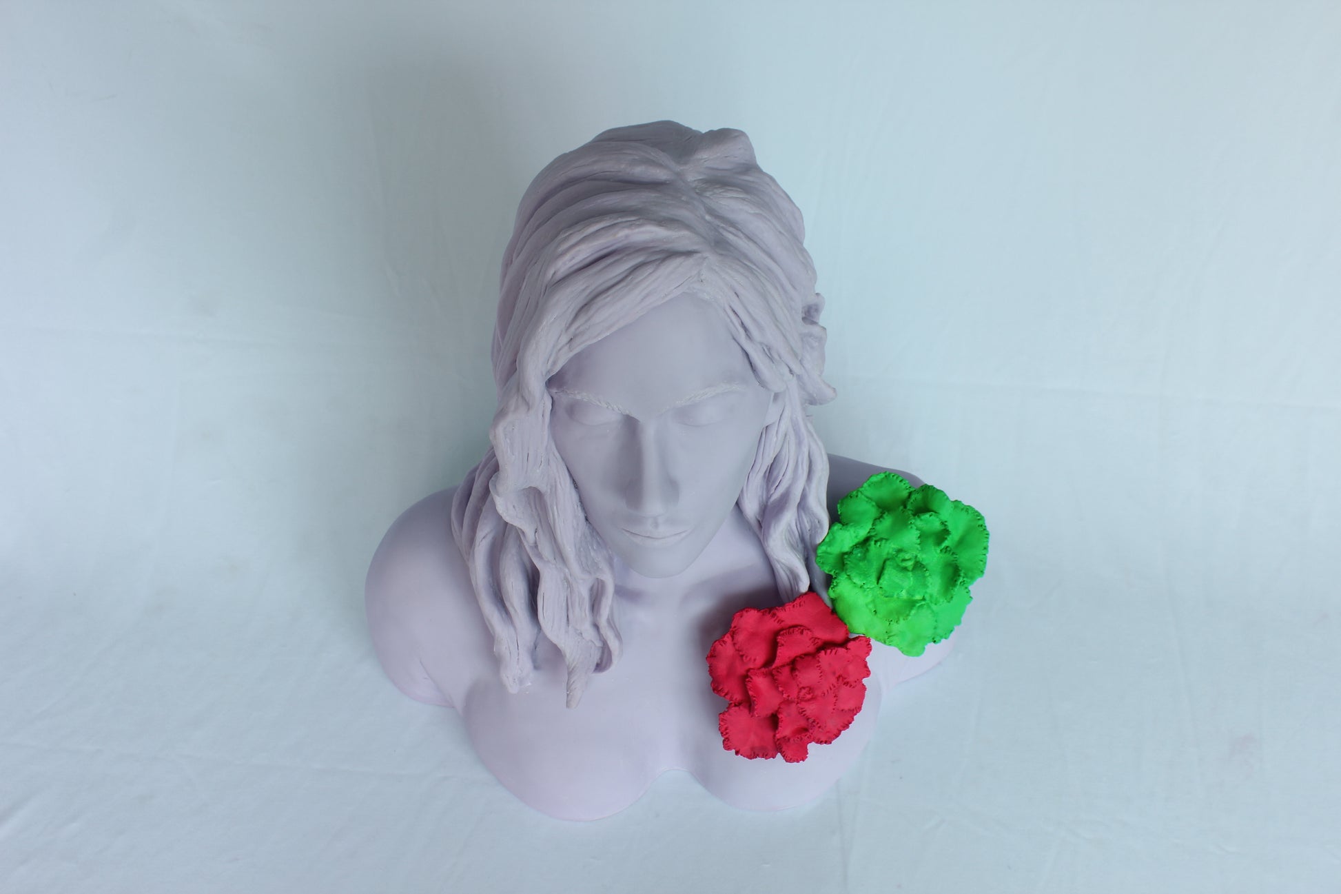 Mujer Mexicana es una impactante escultura creada por Celeste Bejarano, elaborada en resina epóxica. Esta obra explora la feminidad no solo como una identidad, sino como un poderoso agente de transformación social. En su creación, los tonos violetas predominan, simbolizando el proceso introspectivo y el empoderamiento de la mujer al reconectarse con su feminidad. La obra sugiere un viaje interno, donde la figura femenina se reconstruye, mirándose a sí misma para encontrar la fuerza y la sabiduría necesarias para influir en su entorno. Celeste plasma en esta pieza la idea de que la verdadera transformación comienza desde adentro.