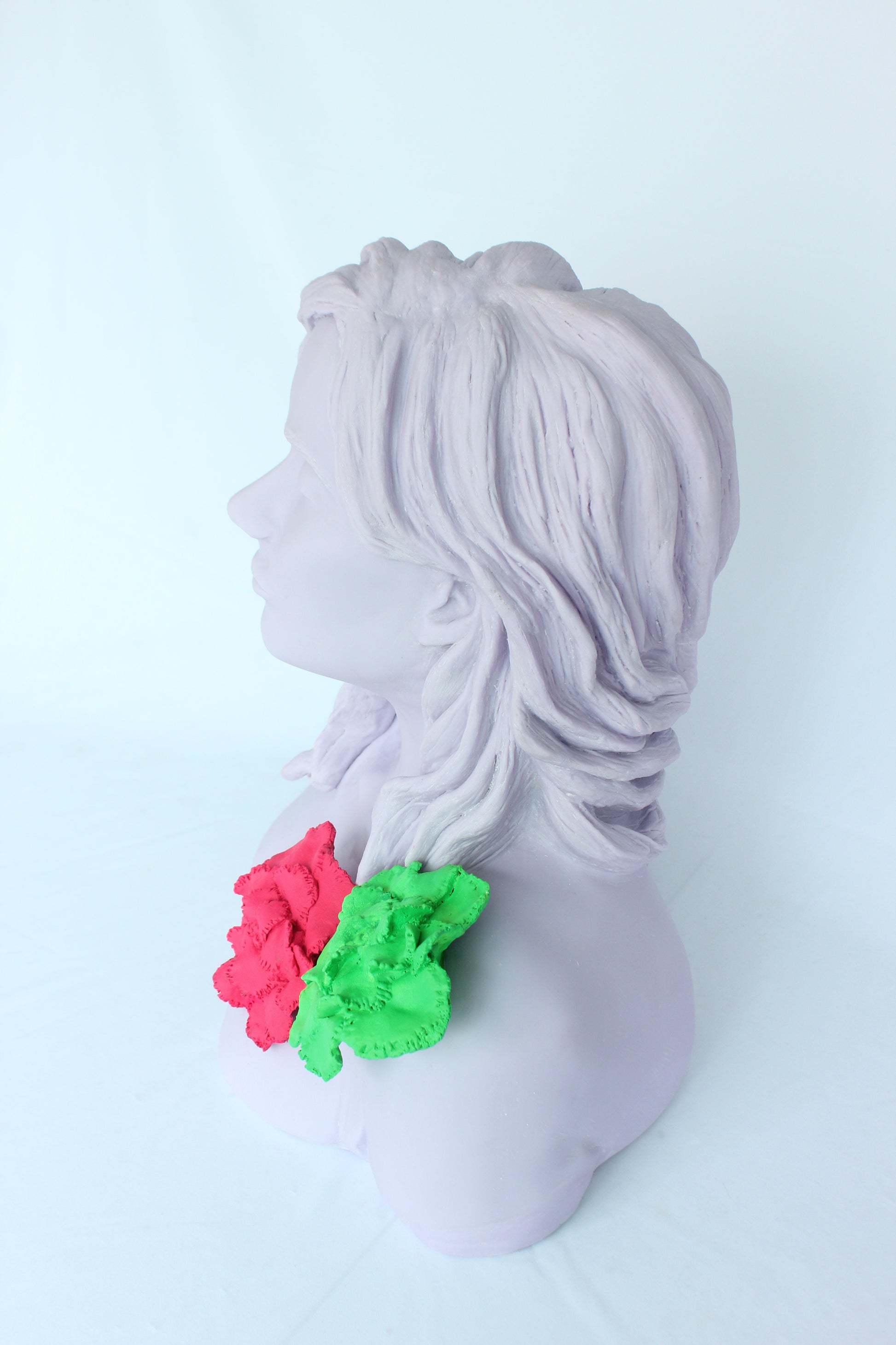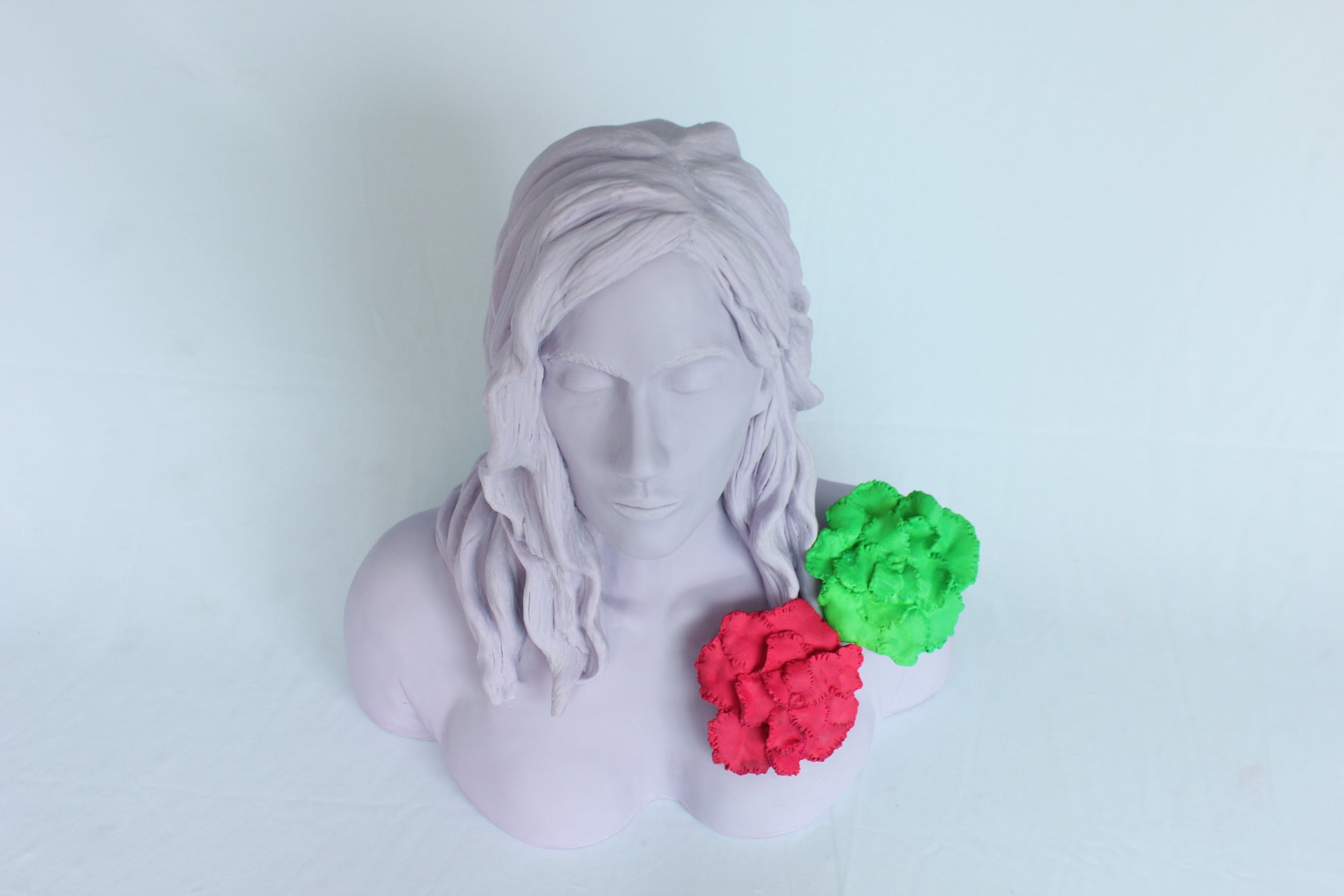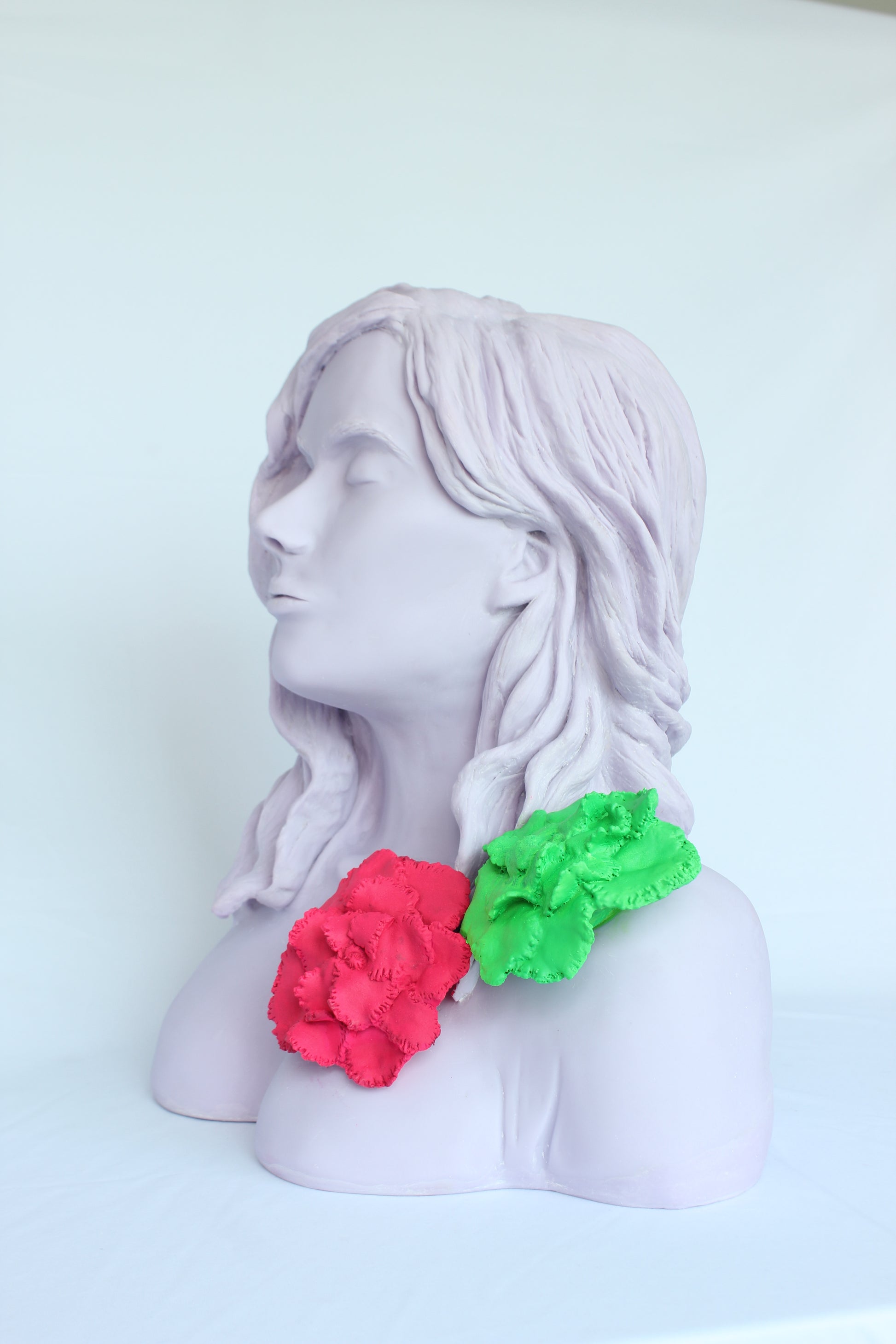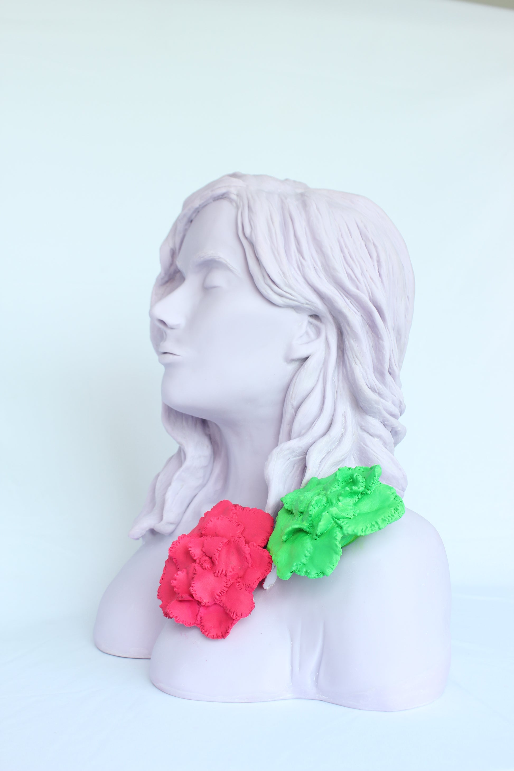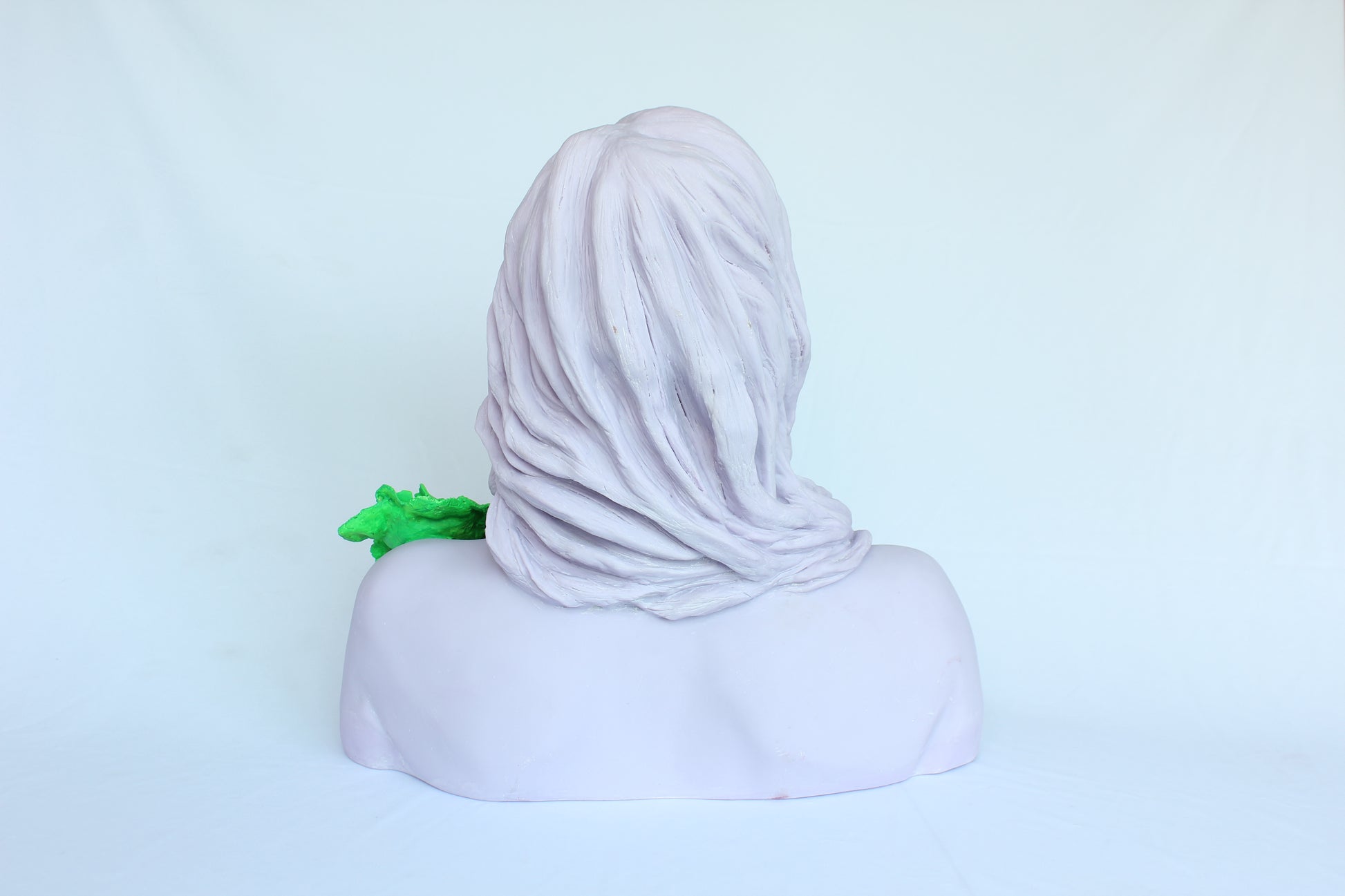 Mujer Mexicana es una impactante escultura creada por Celeste Bejarano, elaborada en resina epóxica. Esta obra explora la feminidad no solo como una identidad, sino como un poderoso agente de transformación social. En su creación, los tonos violetas predominan, simbolizando el proceso introspectivo y el empoderamiento de la mujer al reconectarse con su feminidad. La obra sugiere un viaje interno, donde la figura femenina se reconstruye, mirándose a sí misma para encontrar la fuerza y la sabiduría necesarias para influir en su entorno. Celeste plasma en esta pieza la idea de que la verdadera transformación comienza desde adentro.