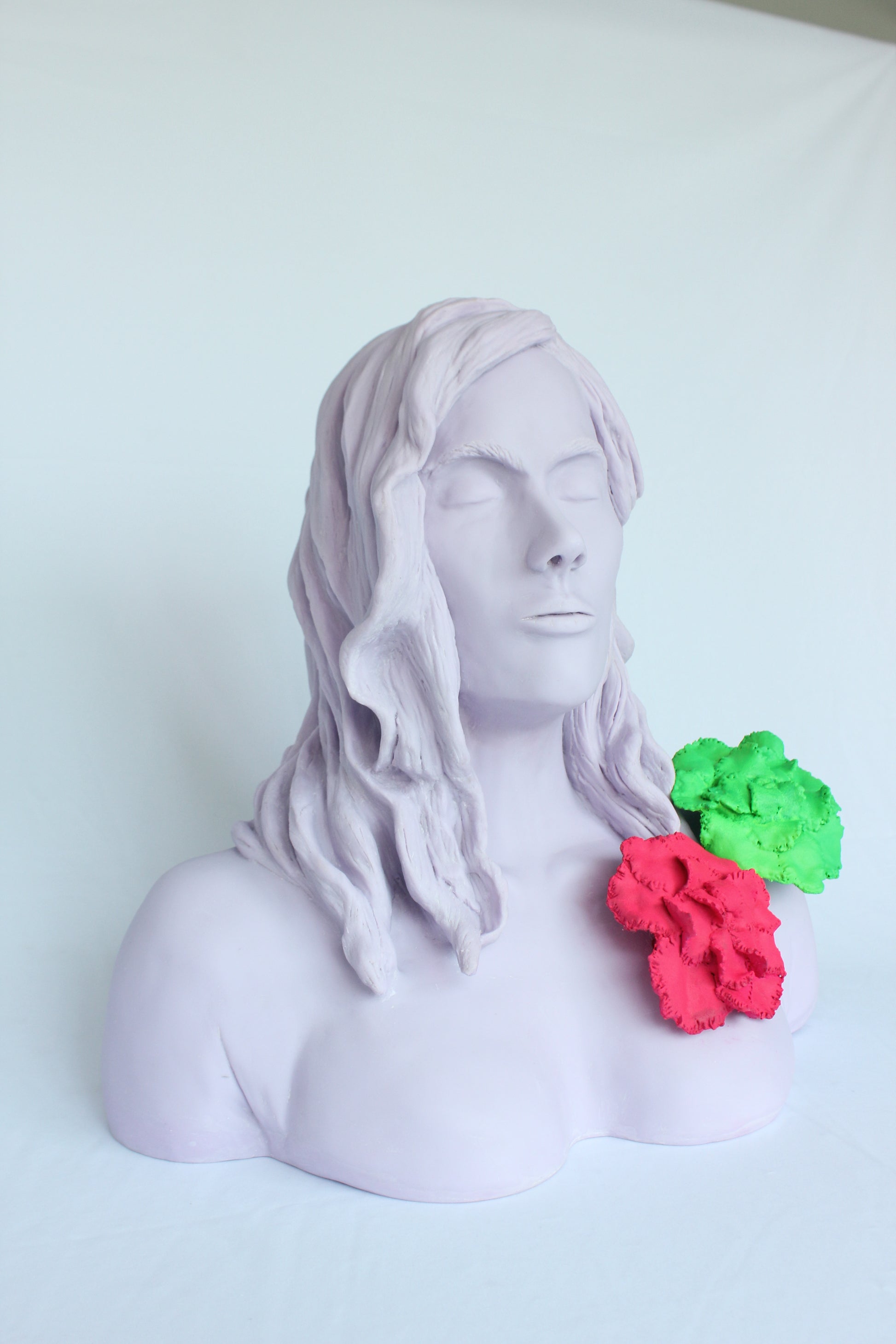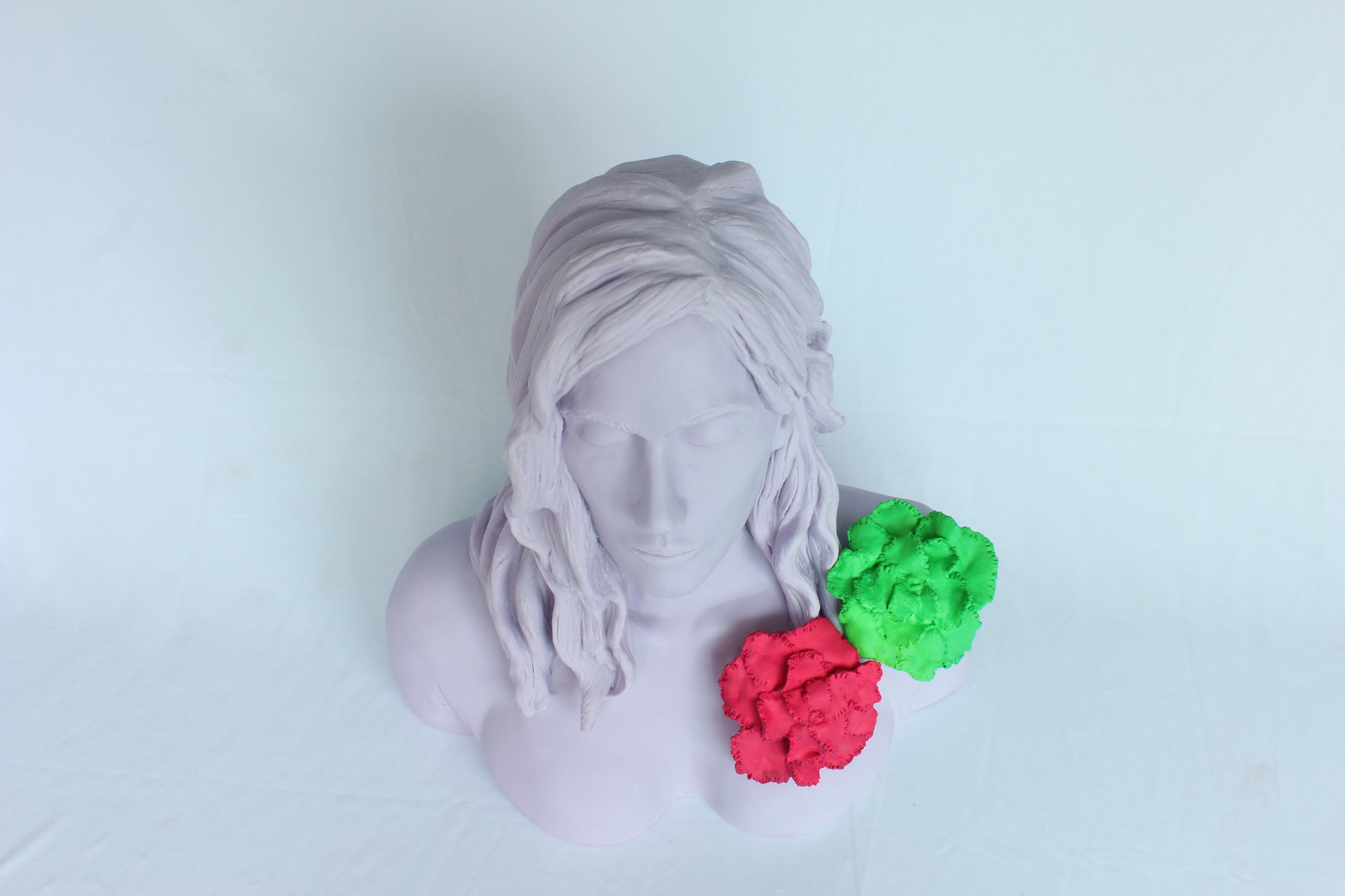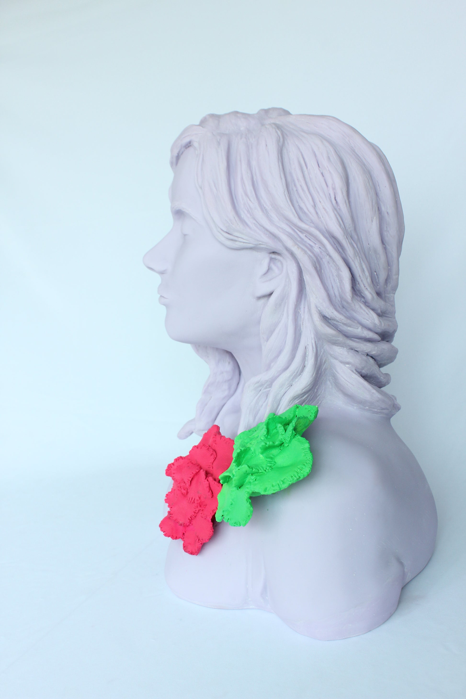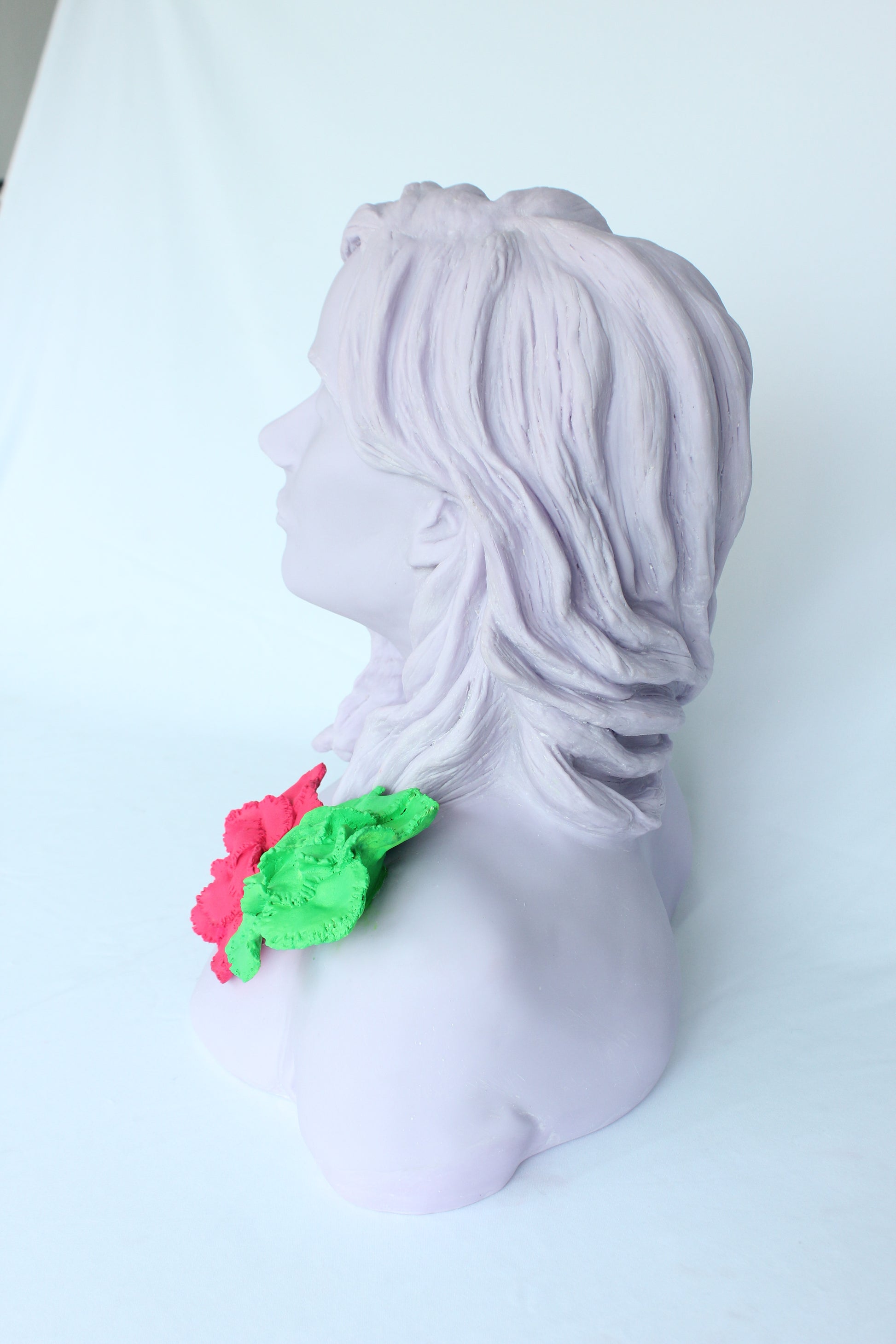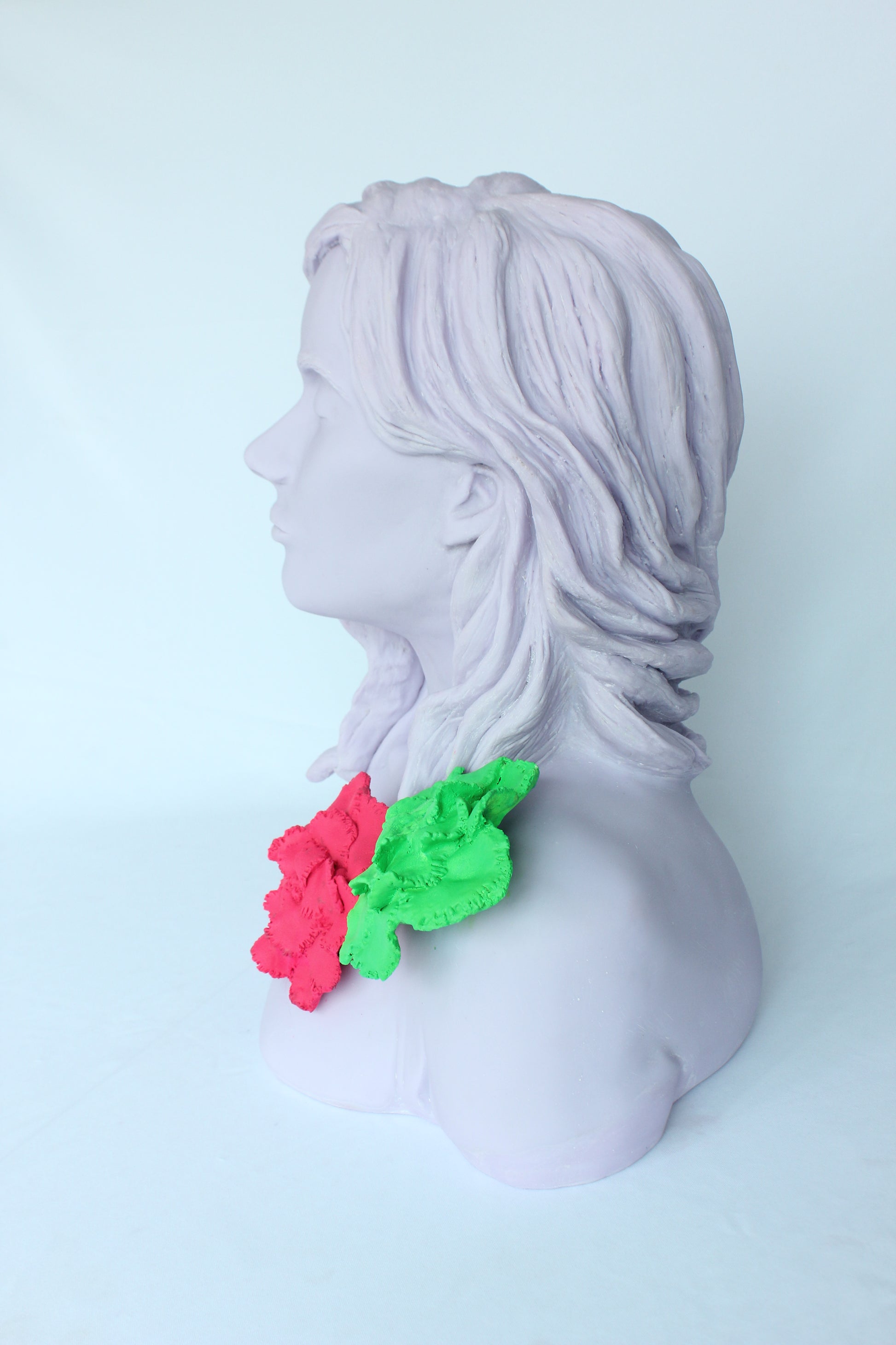 Mujer Mexicana es una impactante escultura creada por Celeste Bejarano, elaborada en resina epóxica. Esta obra explora la feminidad no solo como una identidad, sino como un poderoso agente de transformación social. En su creación, los tonos violetas predominan, simbolizando el proceso introspectivo y el empoderamiento de la mujer al reconectarse con su feminidad. La obra sugiere un viaje interno, donde la figura femenina se reconstruye, mirándose a sí misma para encontrar la fuerza y la sabiduría necesarias para influir en su entorno. Celeste plasma en esta pieza la idea de que la verdadera transformación comienza desde adentro.