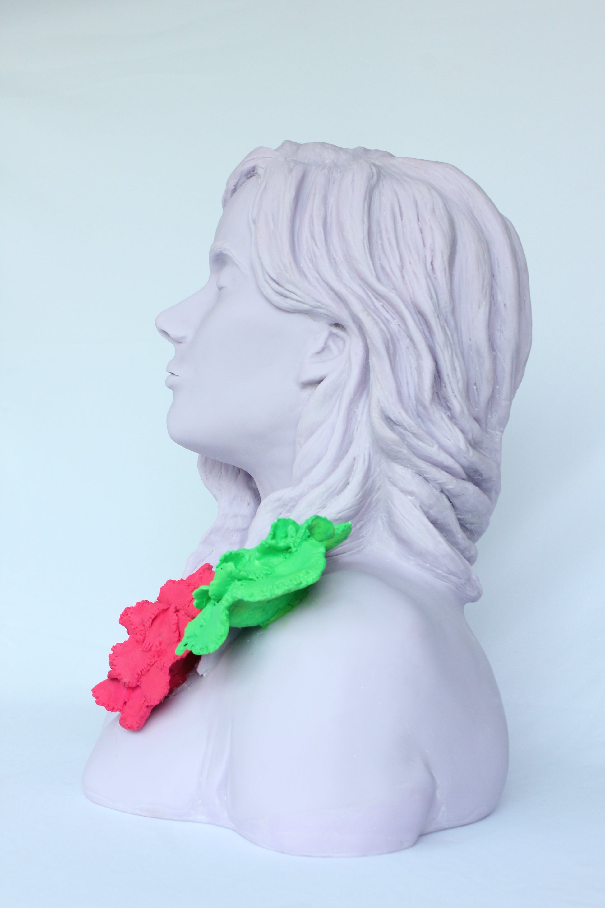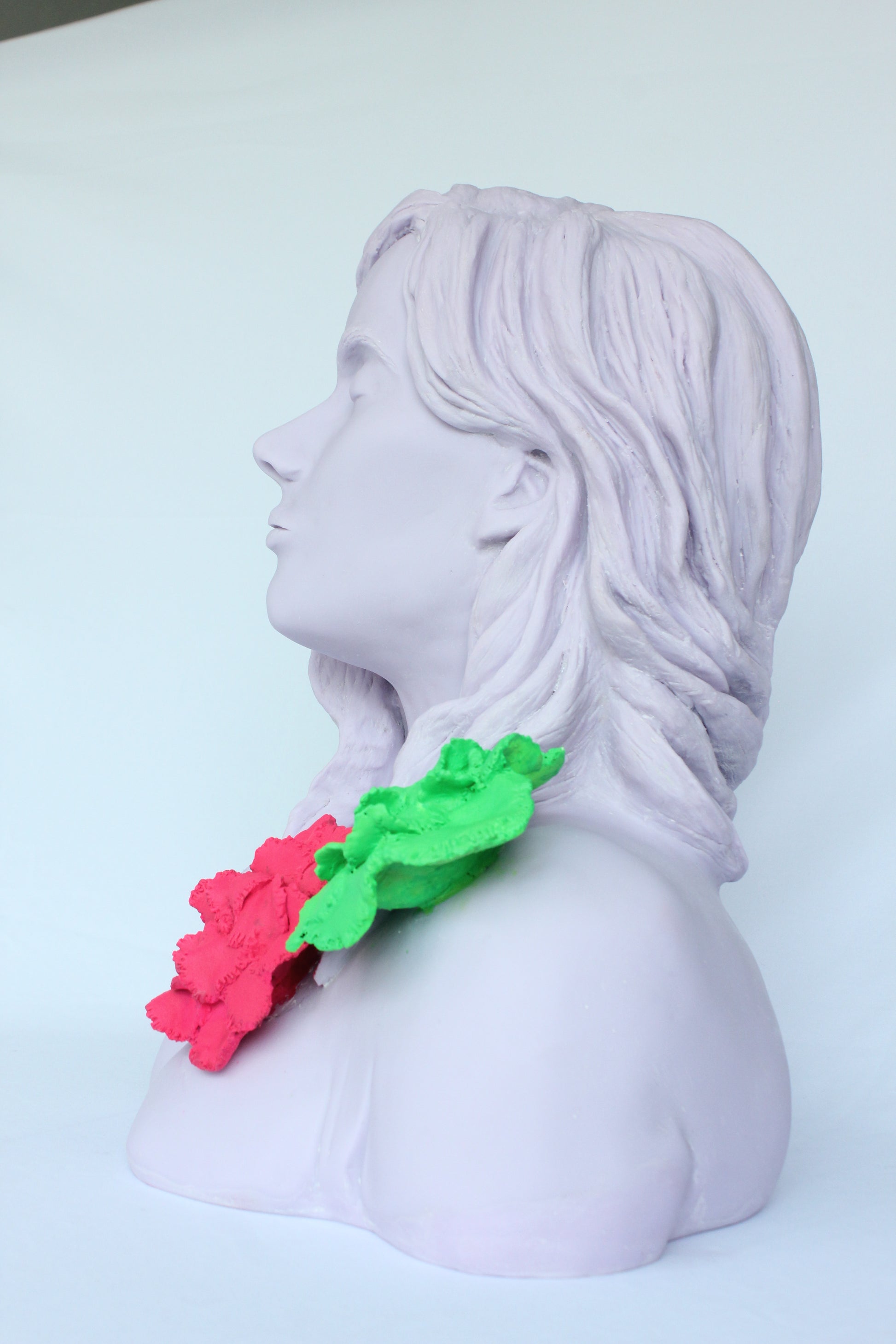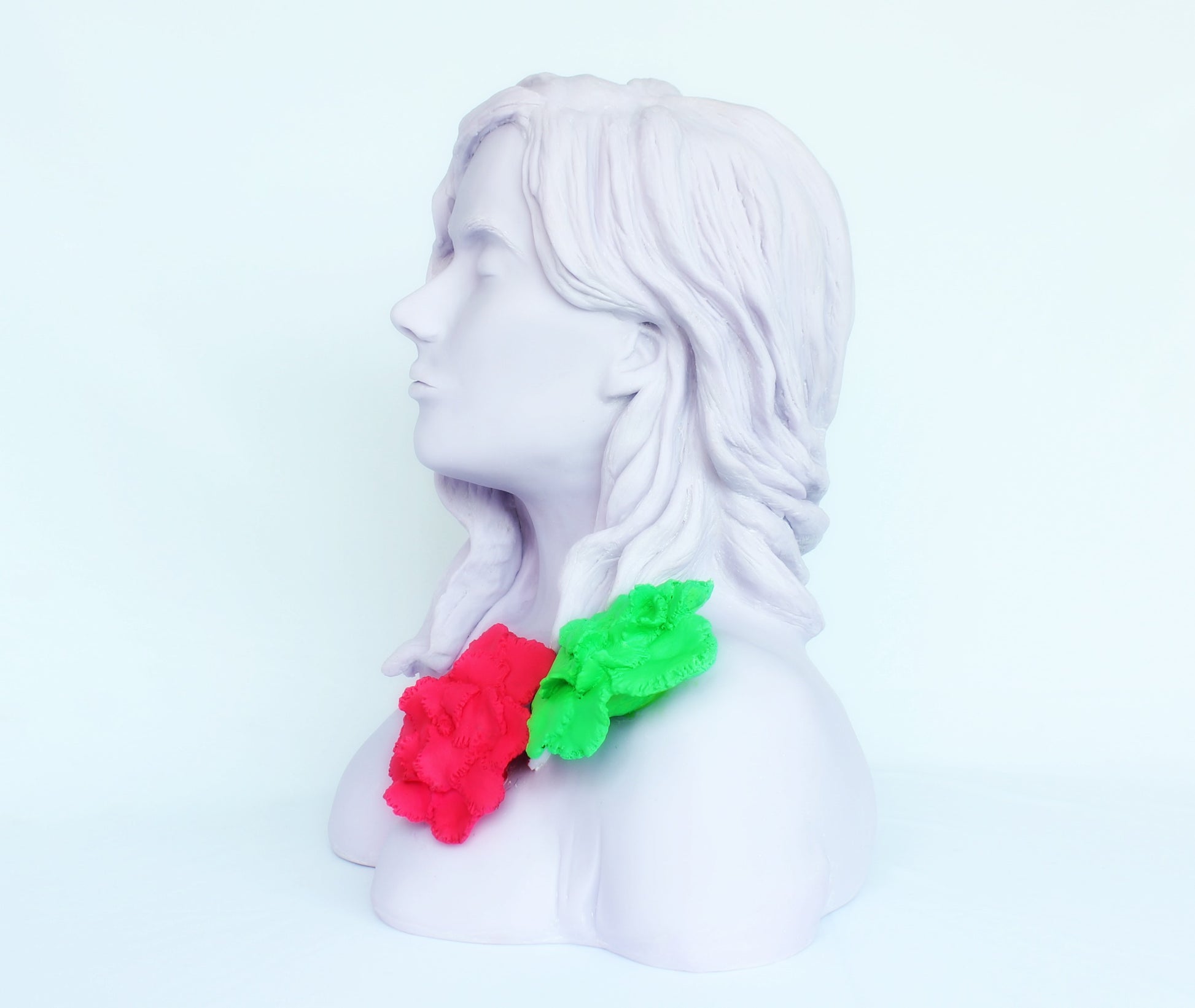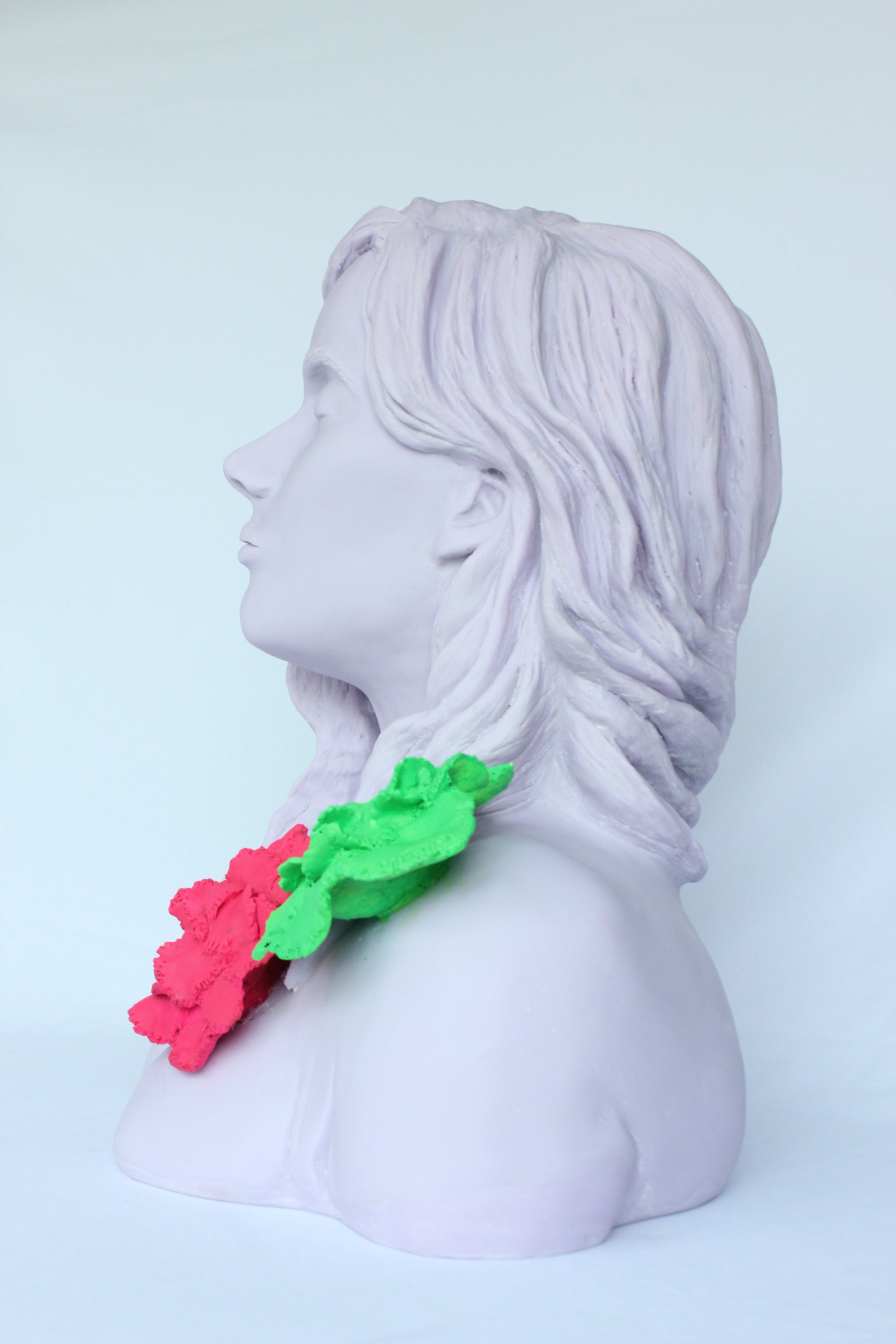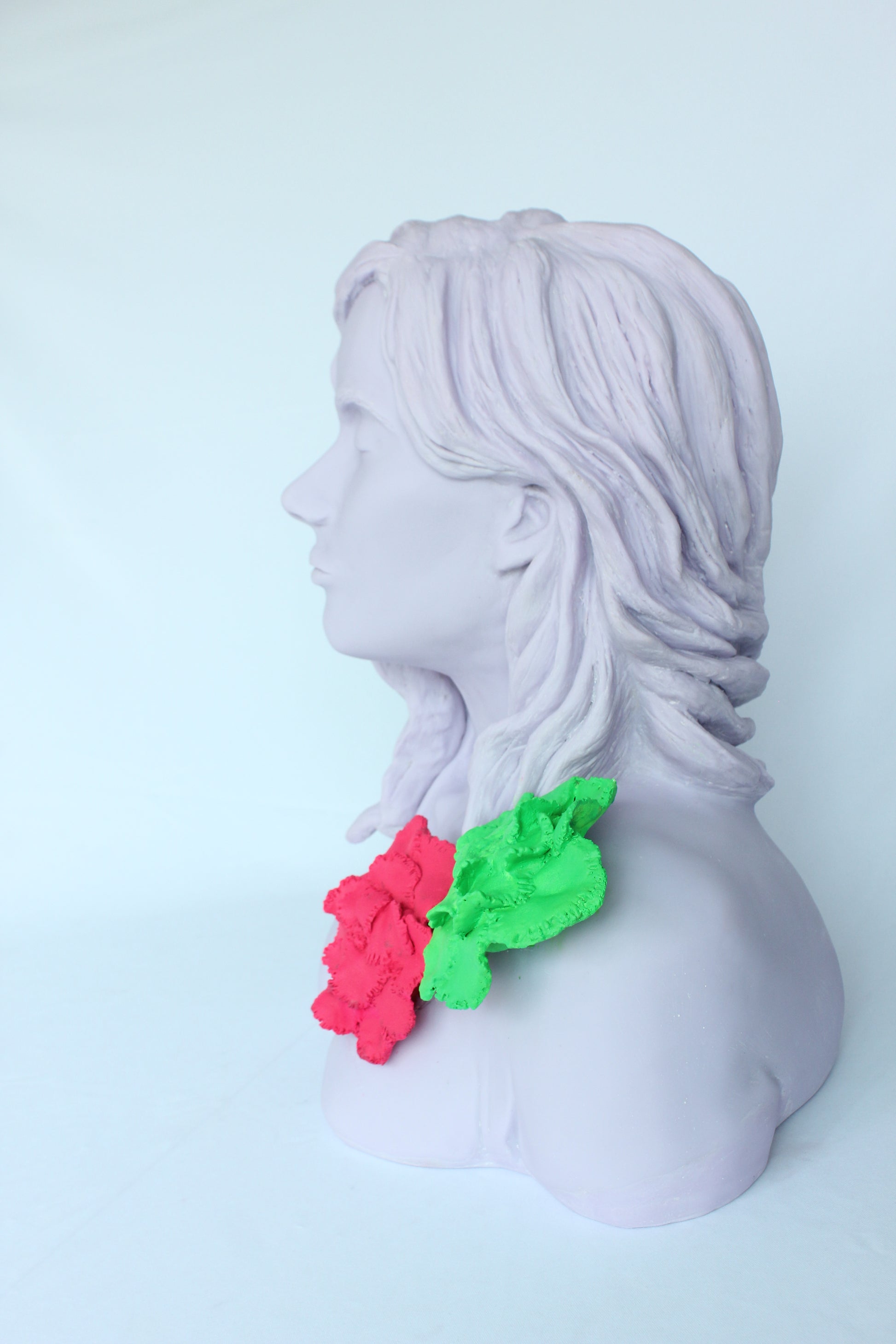 Mujer Mexicana es una impactante escultura creada por Celeste Bejarano, elaborada en resina epóxica. Esta obra explora la feminidad no solo como una identidad, sino como un poderoso agente de transformación social. En su creación, los tonos violetas predominan, simbolizando el proceso introspectivo y el empoderamiento de la mujer al reconectarse con su feminidad. La obra sugiere un viaje interno, donde la figura femenina se reconstruye, mirándose a sí misma para encontrar la fuerza y la sabiduría necesarias para influir en su entorno. Celeste plasma en esta pieza la idea de que la verdadera transformación comienza desde adentro.
