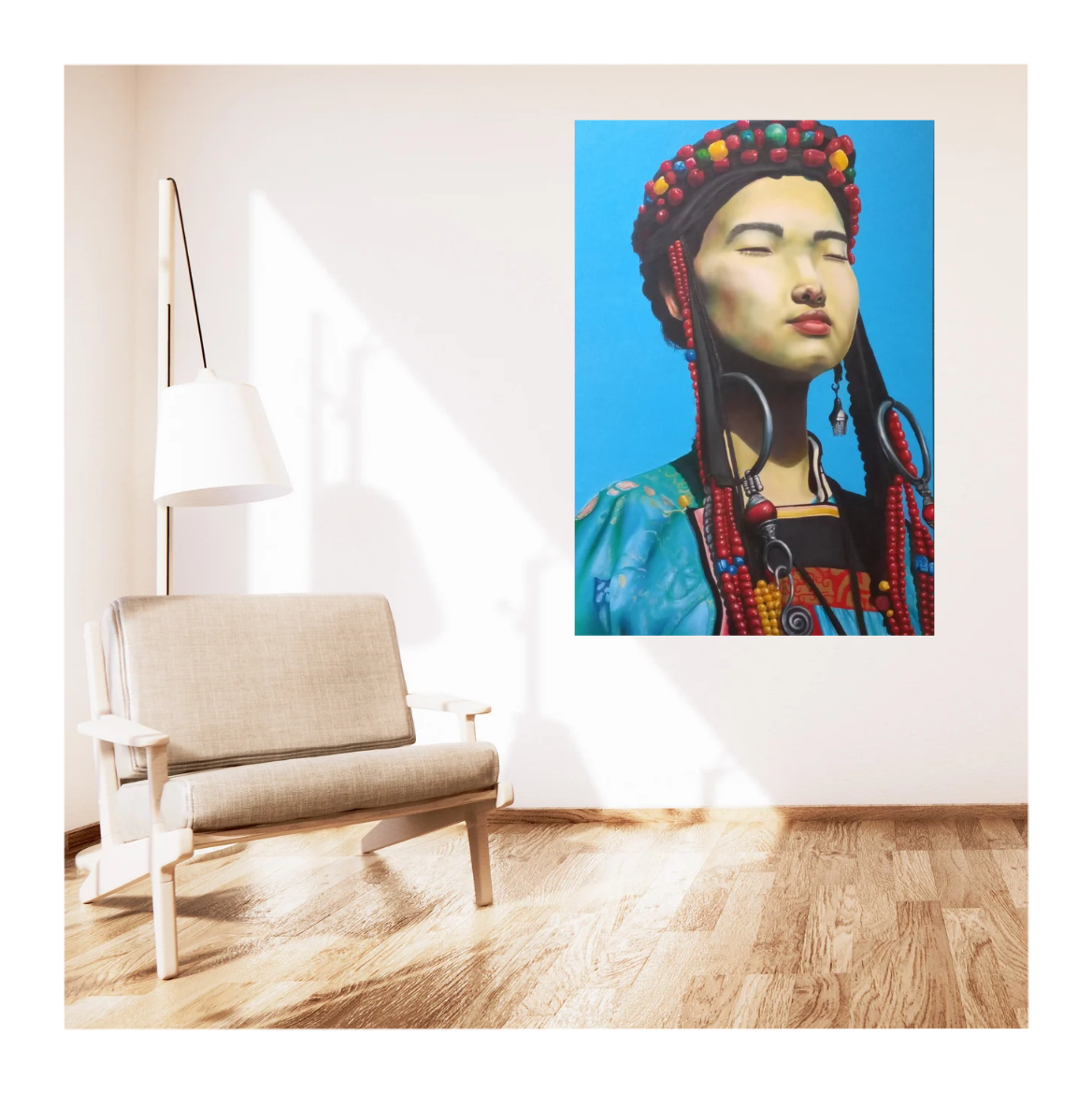 De la colección mujeres del mundo, surge esta obra en tributo a mujeres de todo tipo de distintas regiones del mundo. Con una atmosfera cálida, esta pintura refleja la calidez del momento plasmado en la obra además de belleza y tranquilidad.