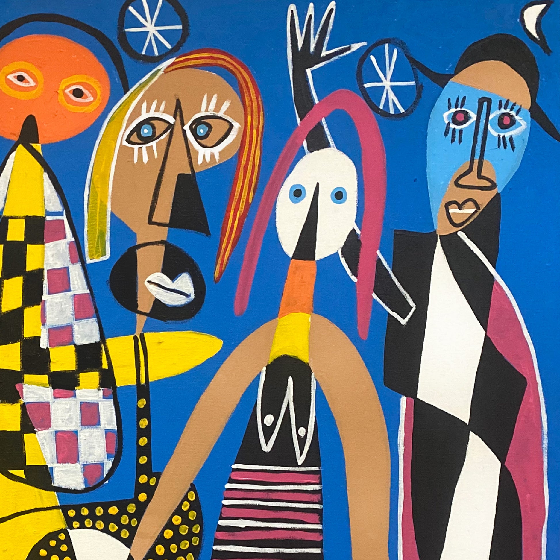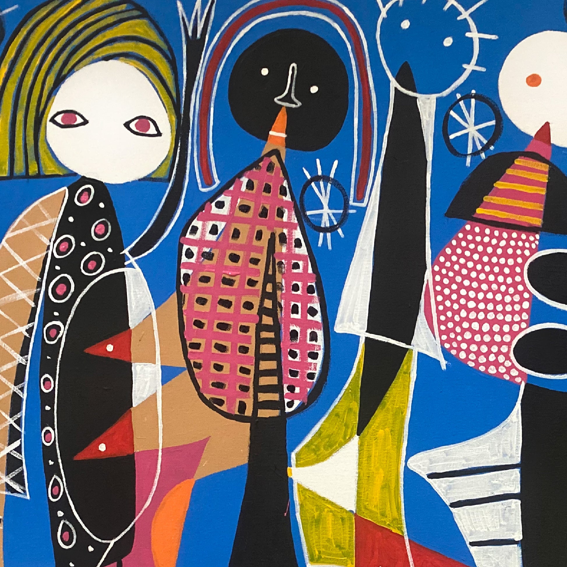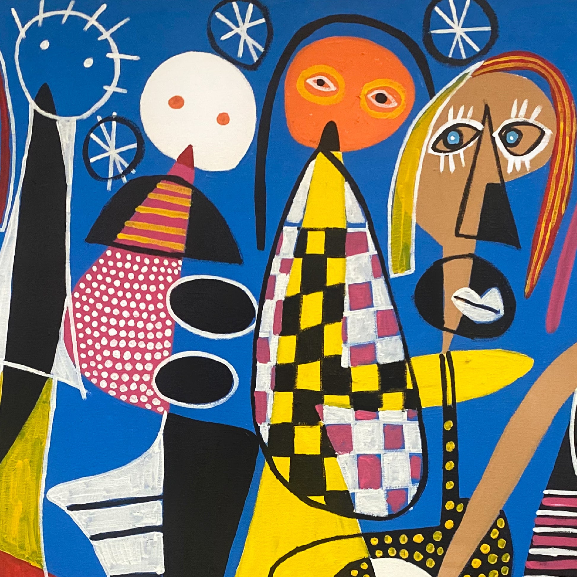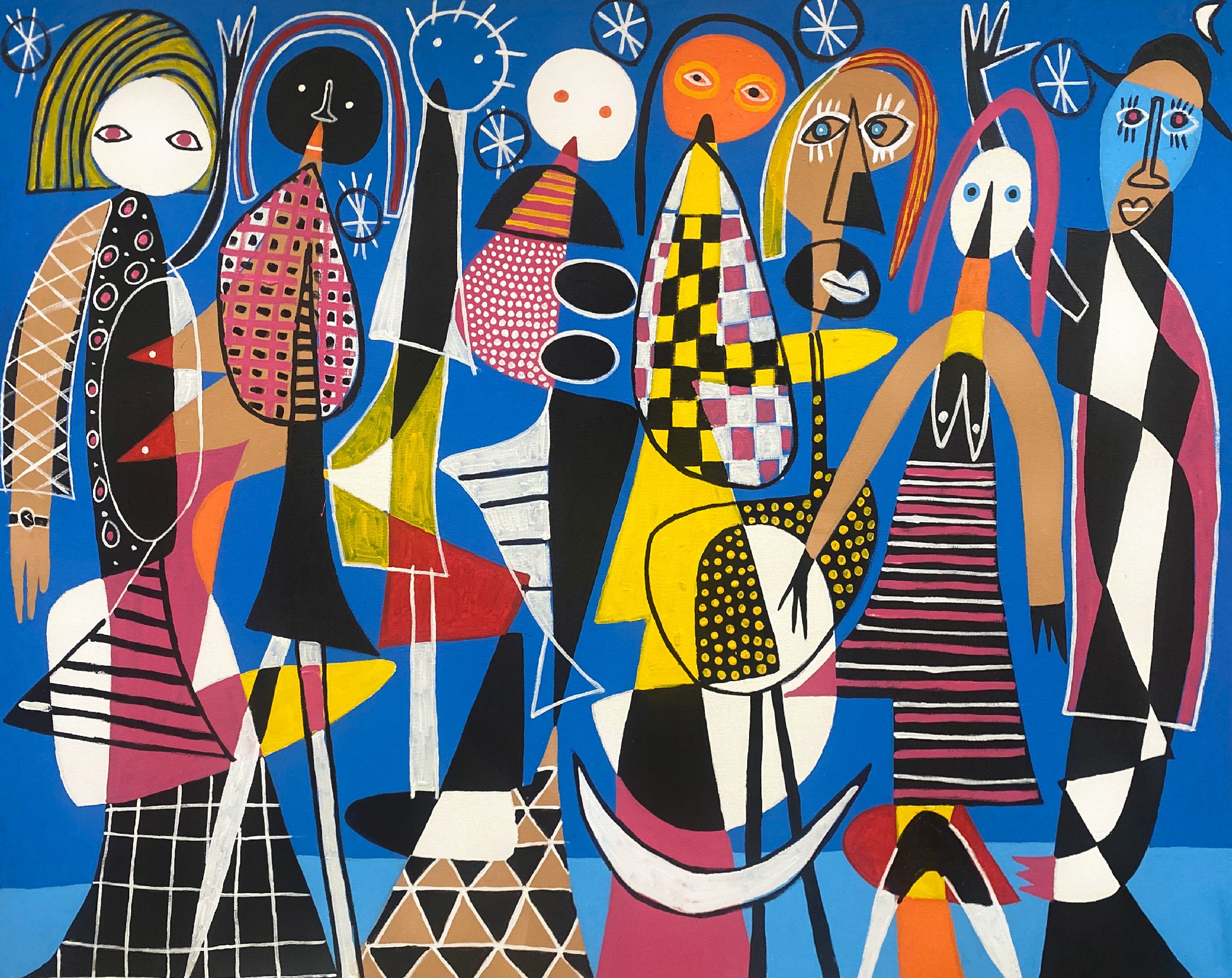 Multitud, plantea una reflexión sobre el vínculo entre individualidad y colectividad en clave visual. Su composición, construida desde la espontaneidad, transmite energía y gozo sin recurrir a narrativas literales. La escena, cargada de signos y símbolos, logra captar la atención del espectador no por lo que representa, sino por cómo se estructura. Esta cualidad le ha permitido al artista sostener una propuesta original dentro del panorama contemporáneo.
