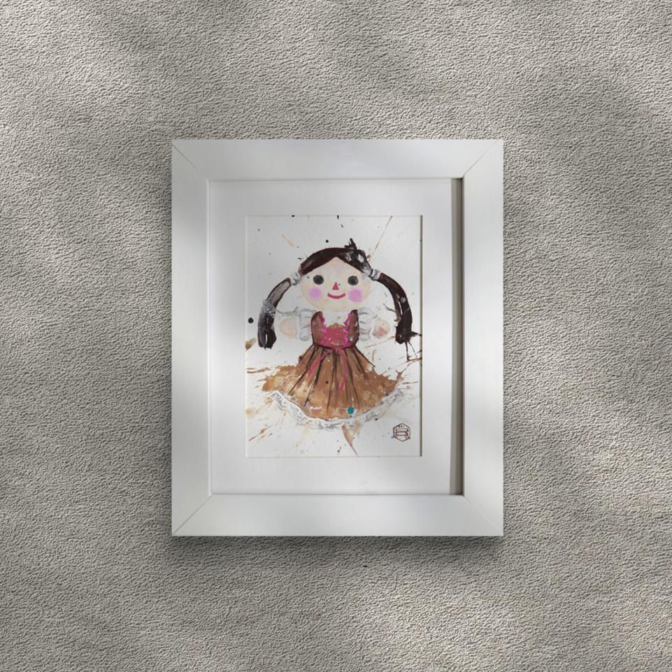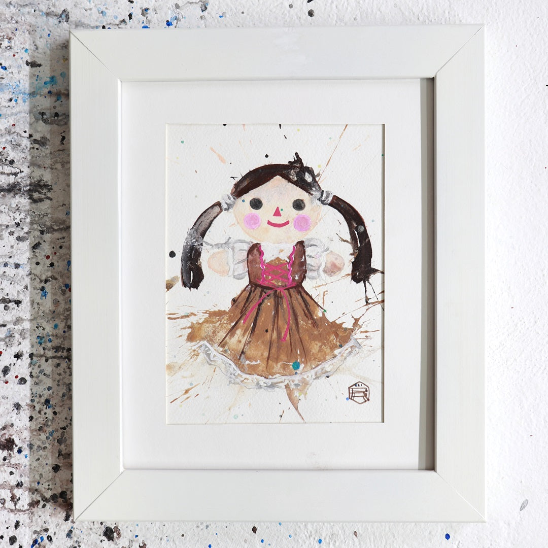 Esta pintura de una muñeca holandesa captura la dulzura y la nostalgia de tiempos pasados.