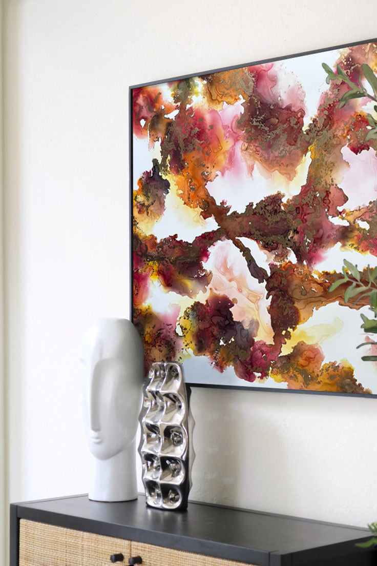 Una vez ubicada la obra en su lugar de exposición, te recomendamos evitar tocarla, no la expongas a cambios bruscos de temperatura y ten cuidado exponiéndola mucho a la luz. Procura mantenerla limpia, libre de polvo y comida y trata de no limpiarla con productos químicos que usarías normalmente en tu casa. Con esto lograrás tener una obra como nueva.