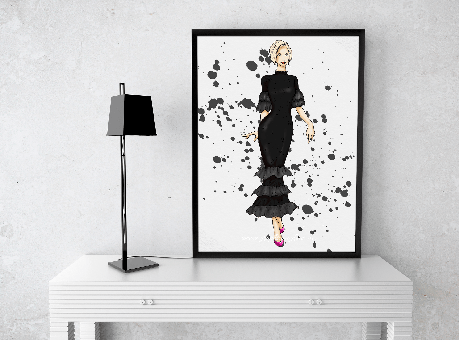 *Negro es encantador y elegante. Perfecto para la decoración del hogar *Limitado a solo 4 piezas *Las ilustraciones vienen en papel y tintas de alta calidad Cada ilustración es firmada, numerada y autenticada. El ilustrador de modas