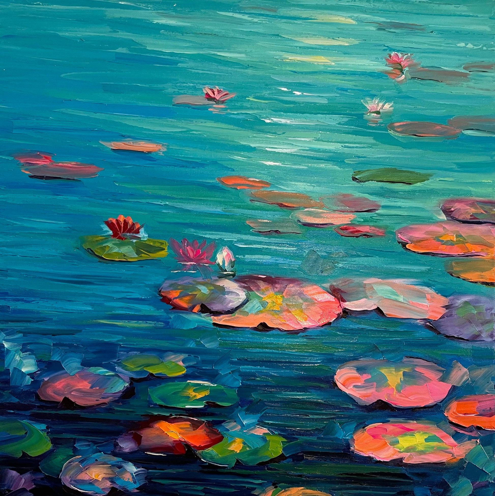Estilo impresionista, con textura, colorida y luminosa, colores vibrantes que realzan cualquier espacio.