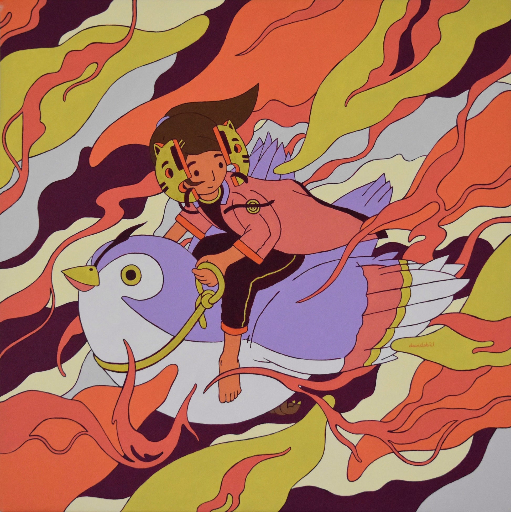 Pintura acrílica sobre bastidor, la pieza puede prescindir de uso de marco.