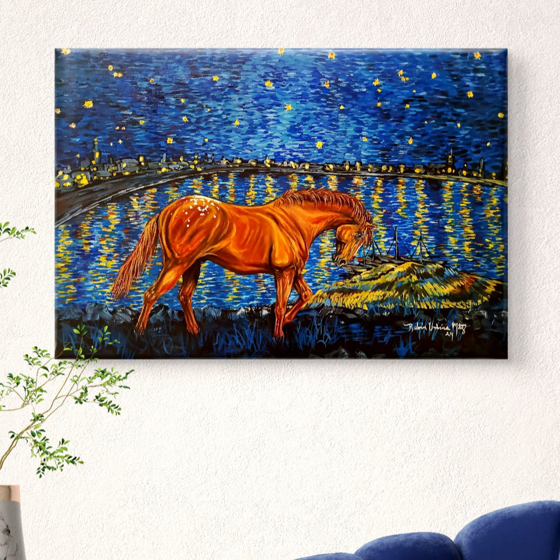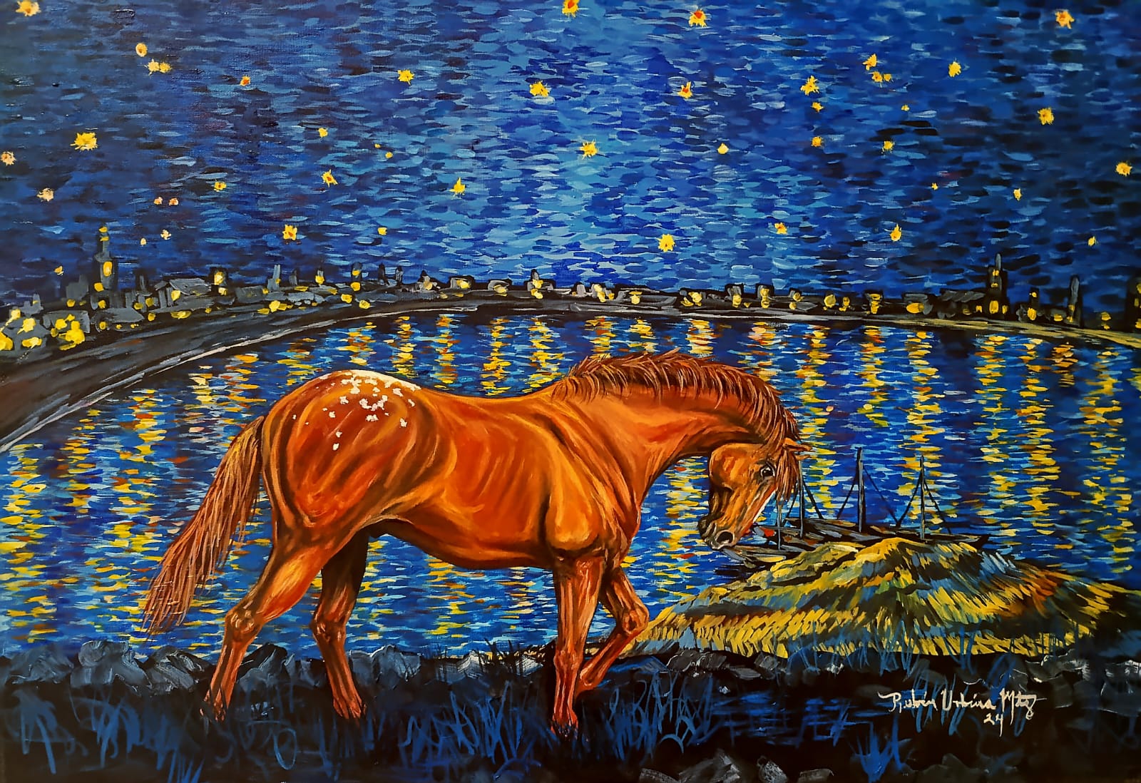 Obra inspirada en el pintor Van Gogh con un toque personal y unico.
