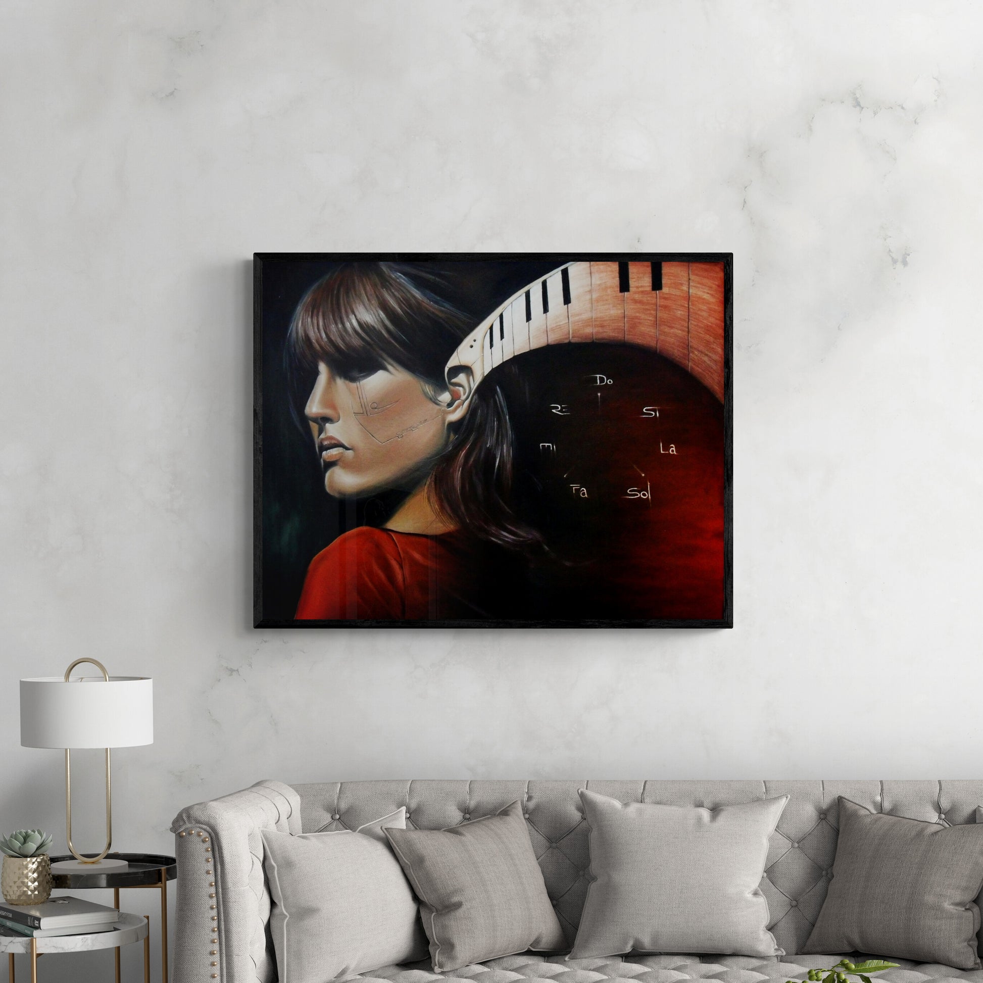 Octava musical en forma circular y en movimiento en el sentido del reloj. La mujer representa a "Euterpe", la Diosa de la Música en la mitología griega.
