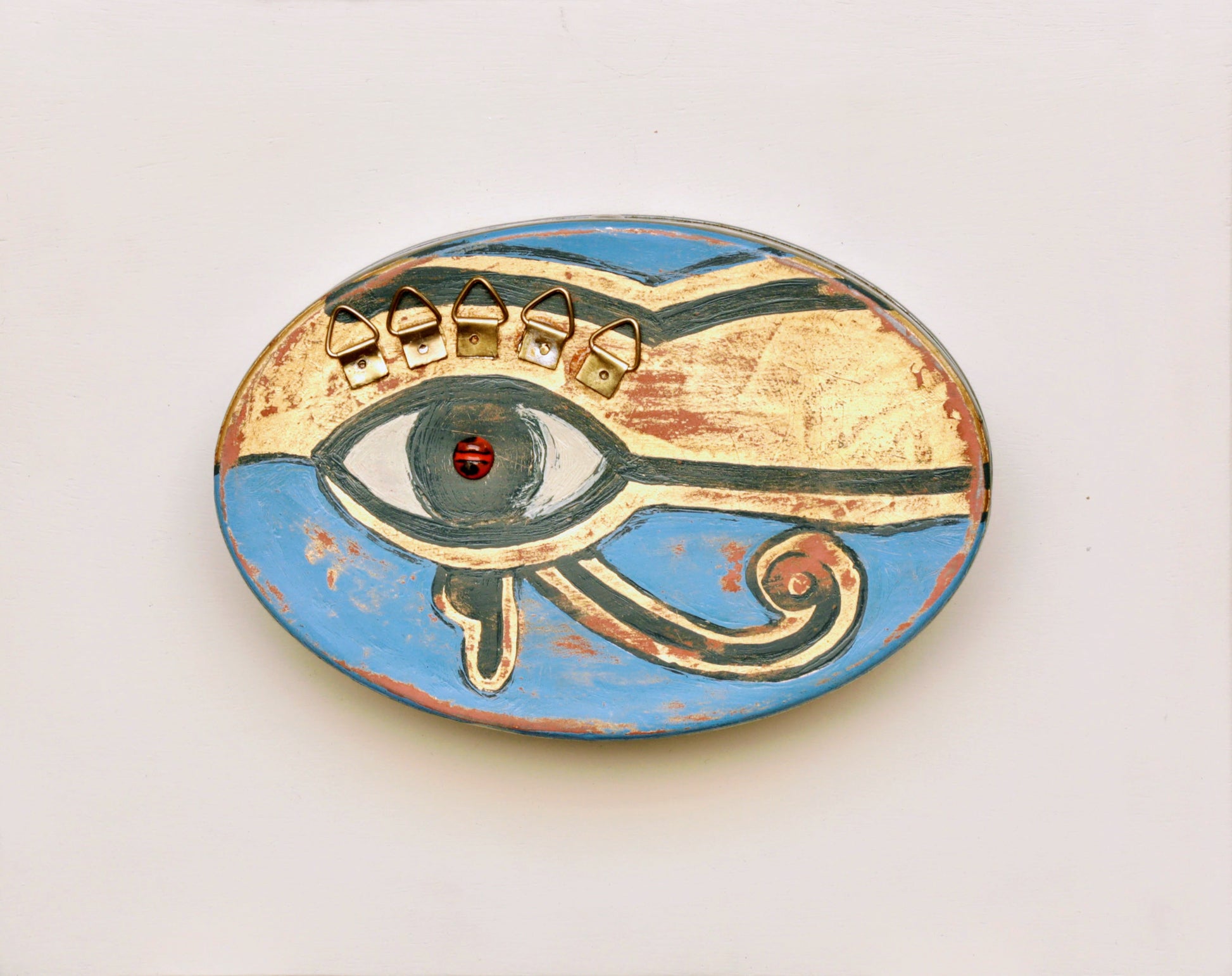 Esta obra pertenece a la serie de pinturas "La mirada enlatada" en donde las diferentes versiones de la forma ojo dialogan con la idea de que lo importante no es ver, sino cómo vemos.