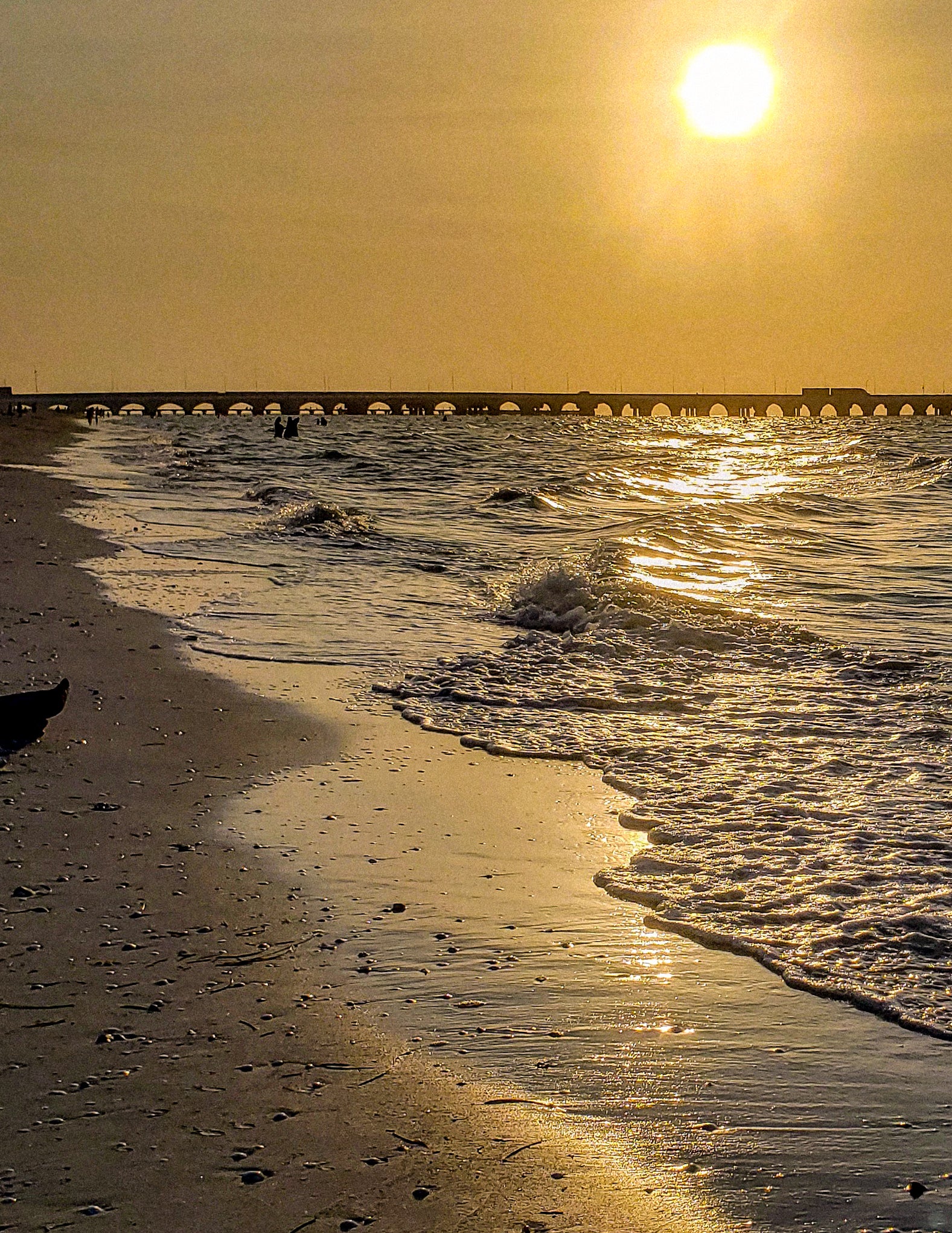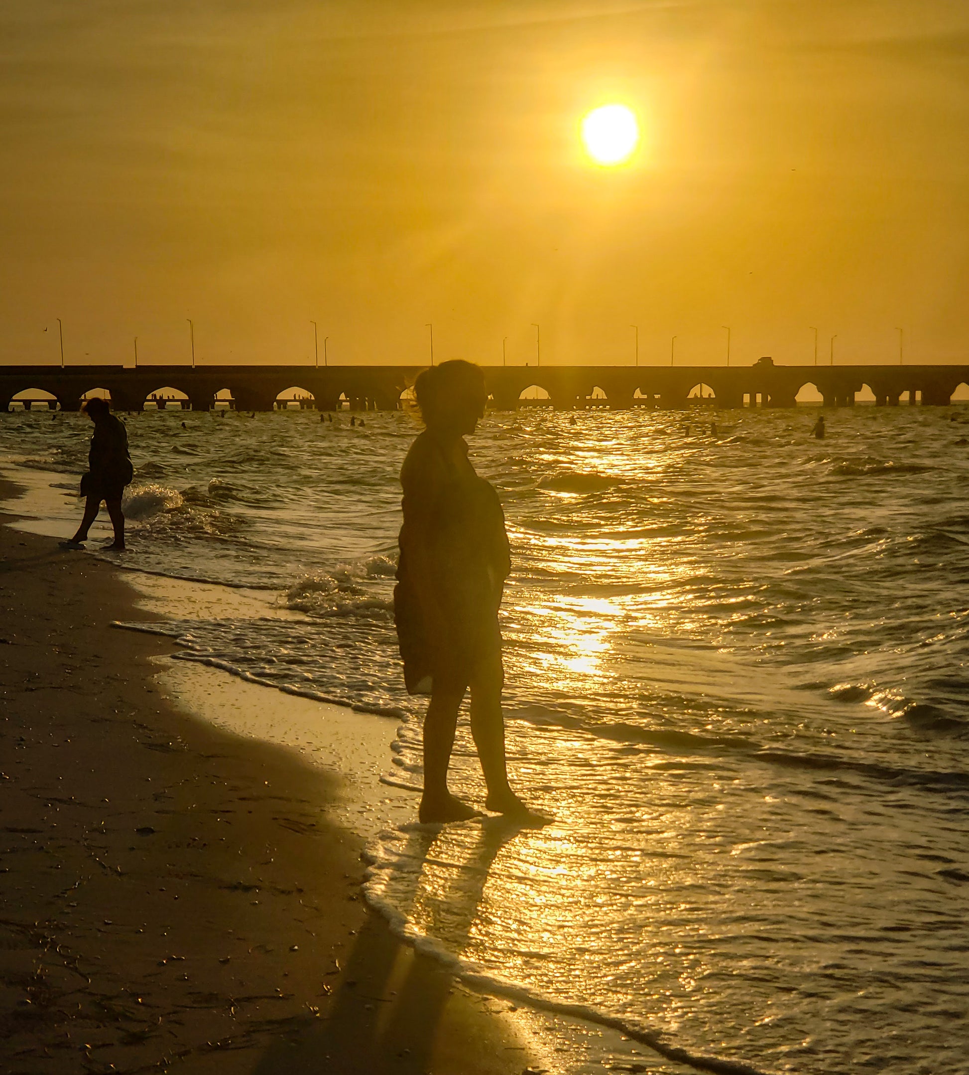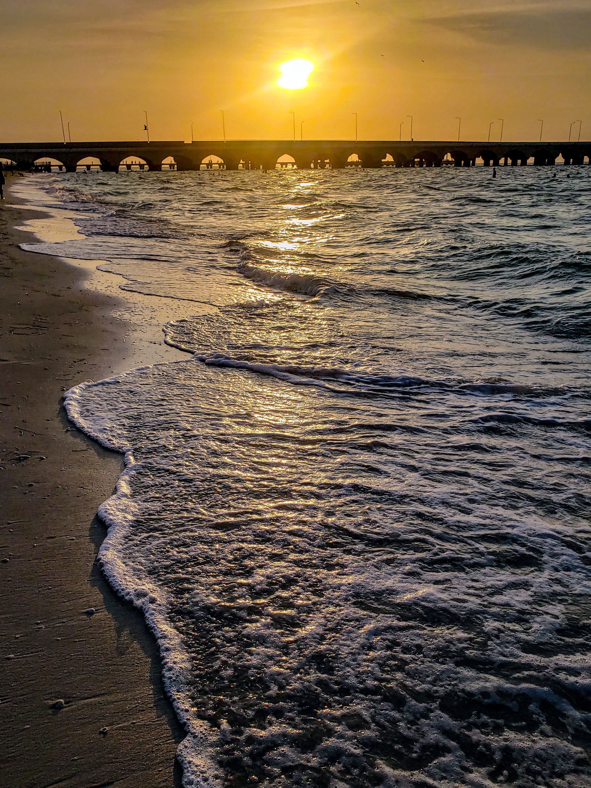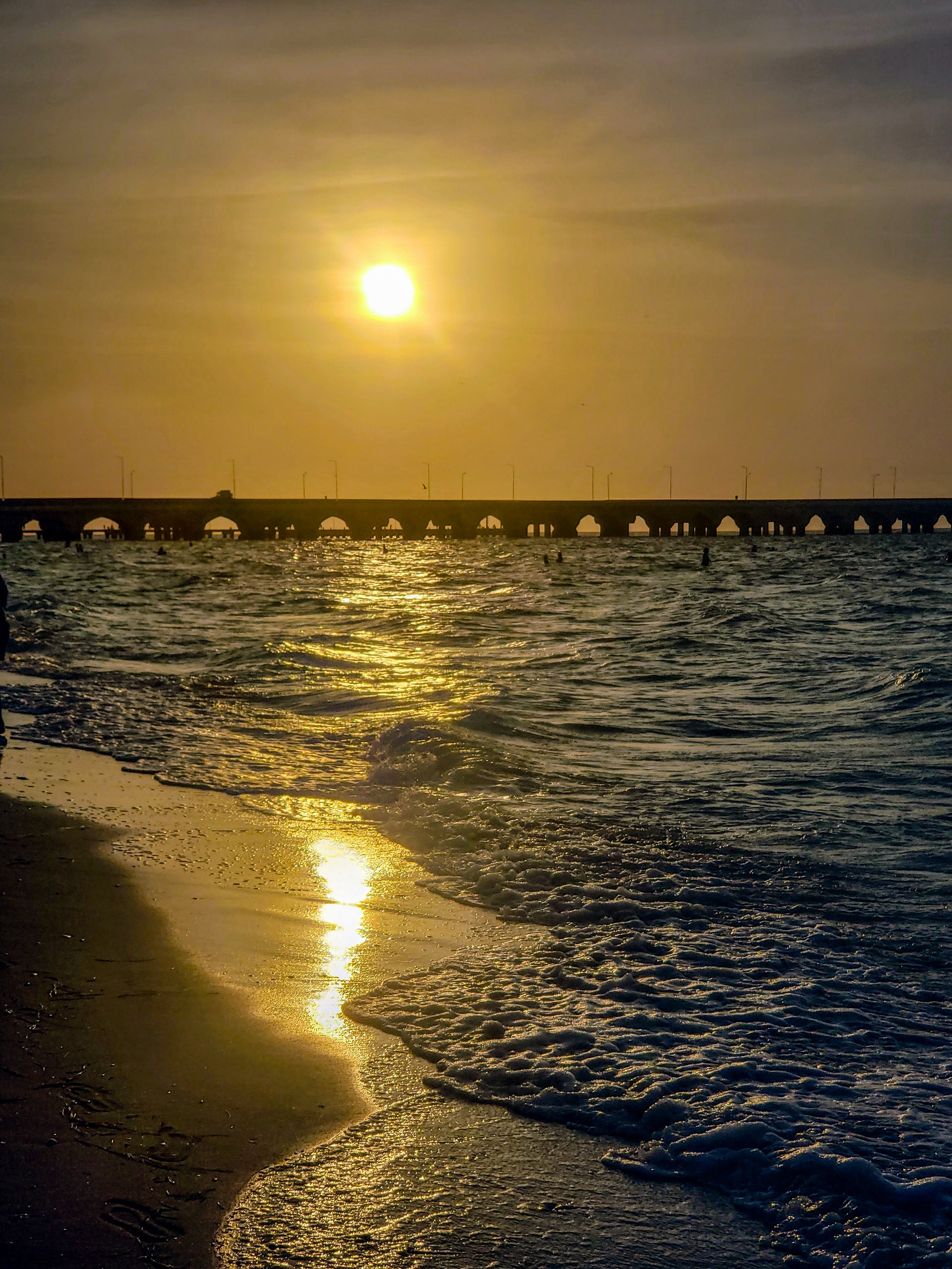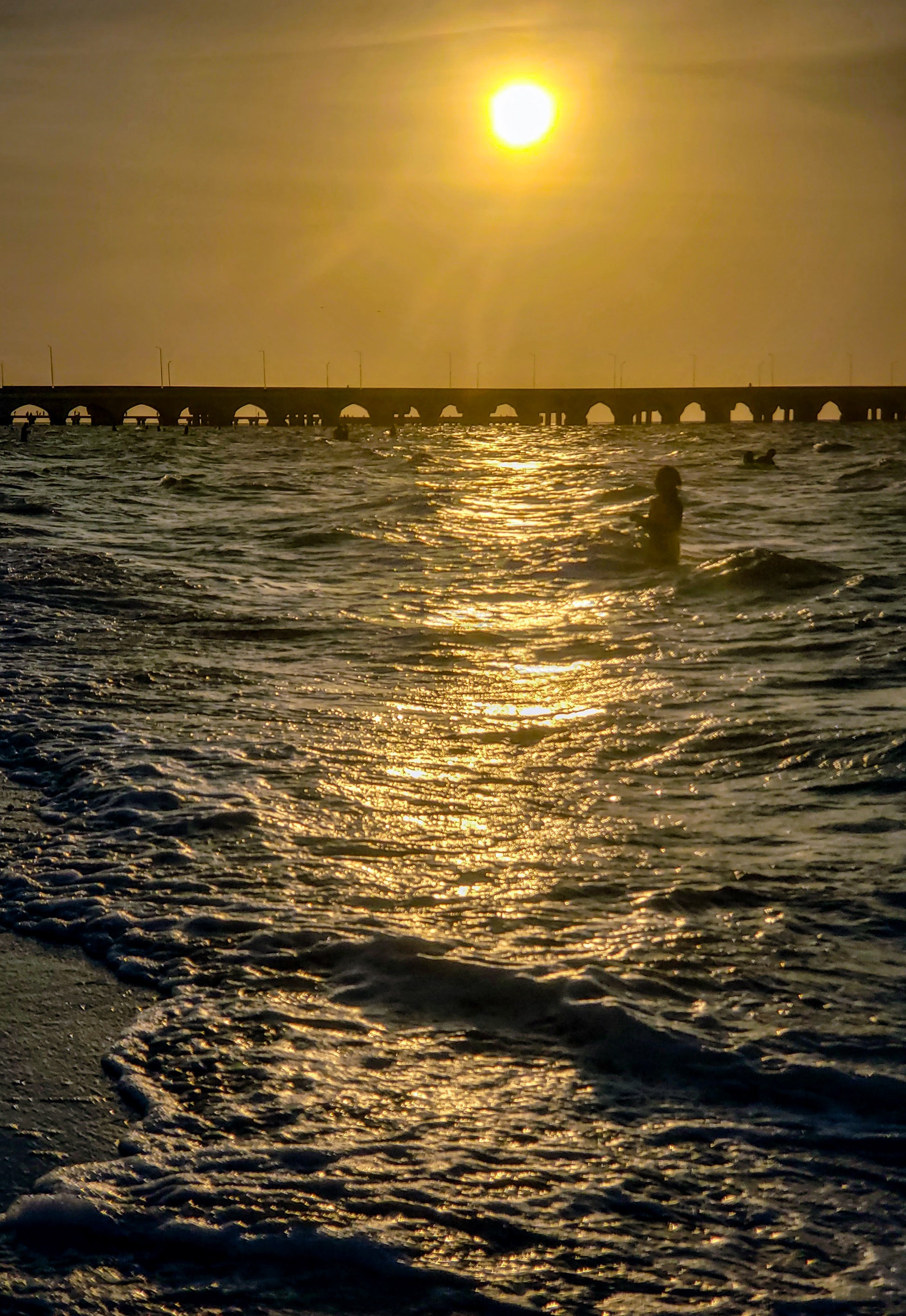A los pies del sol y enmarcado por su inmenso muelle en el Estado de Yucatán; se observa el oleaje tranquilo, sereno, que al igual que él, elige dormir.