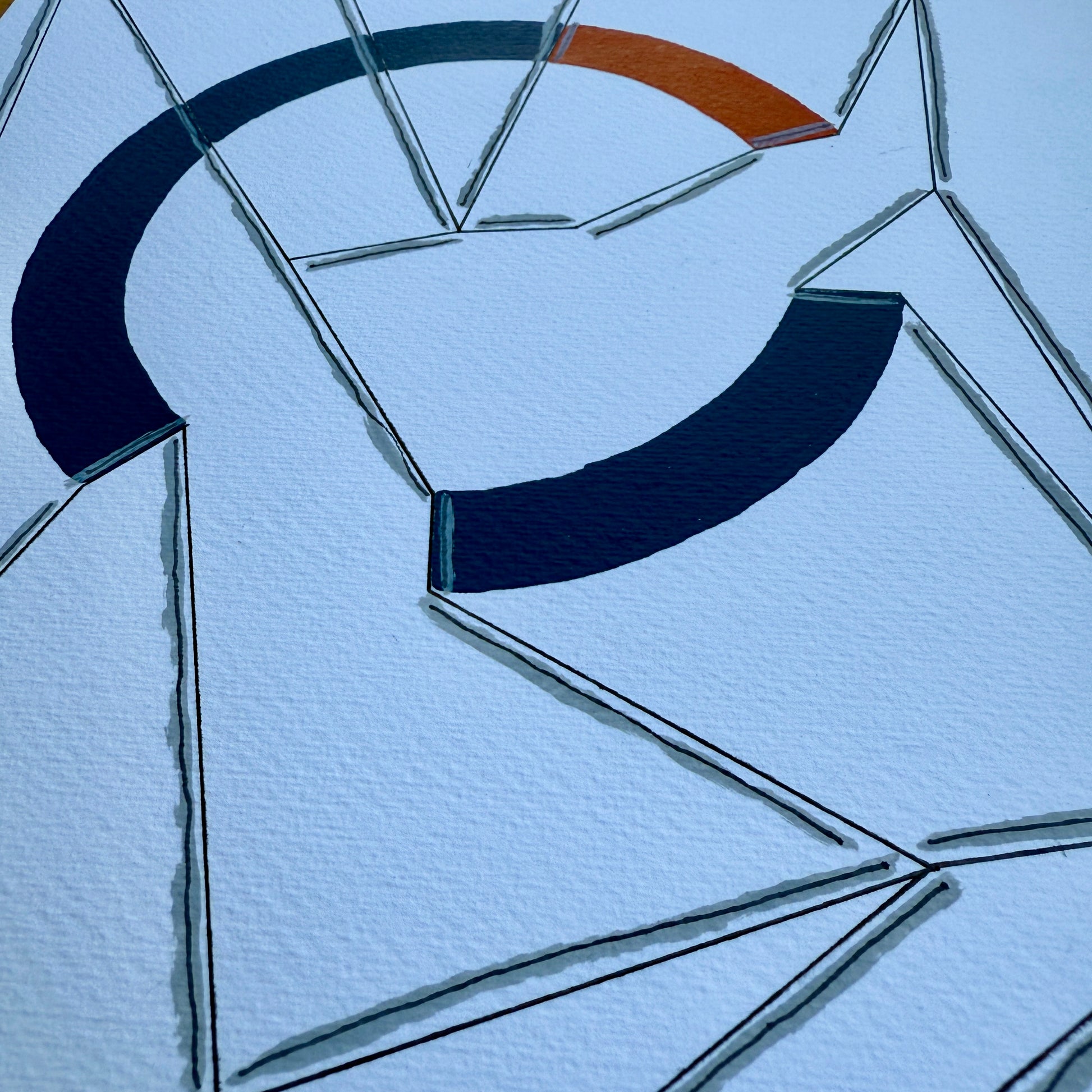 El intento de mantener un centro de equilibrio cuando todo se descompone alrededor. La órbita ya no es circular, es quebrada, interrumpida por ángulos imposibles.