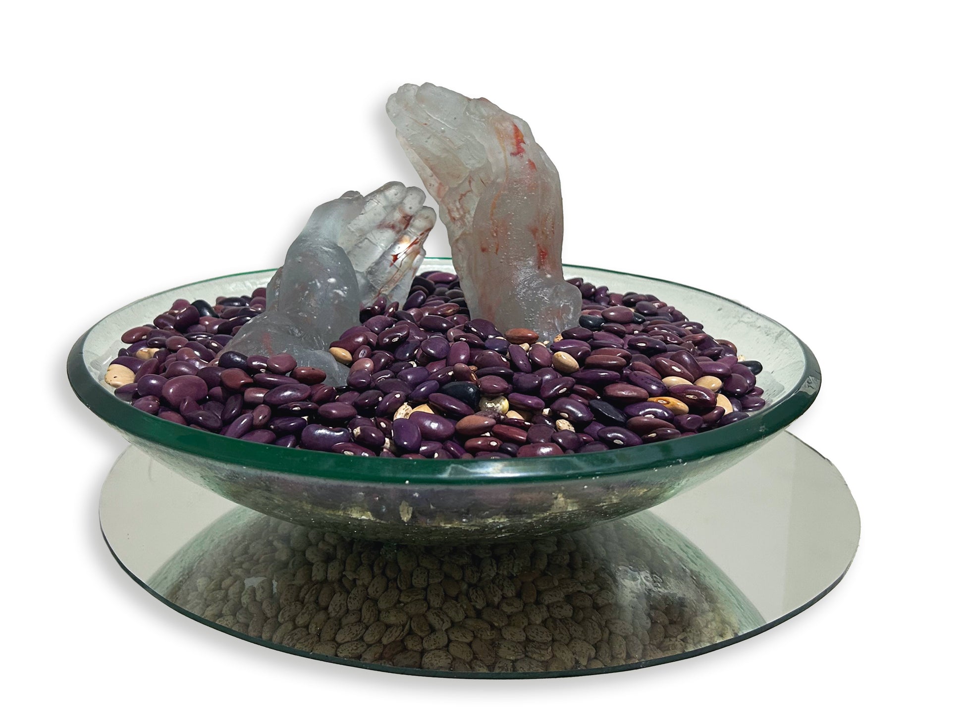 Cuenta la historia Maya que los Dioses crearon la vida humana a partir de cuatro semillas de maíz: Roja, Negra, Amarilla y Blanca, como espejos las manos reflejan, la materialización del proceso creativo, representa la transformación y la espiritualidad.