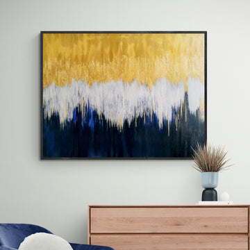 ¡El cuadro tiene un toque de hoja de oro, dos tunos de azul y algo de blanco! Muy elegante y original