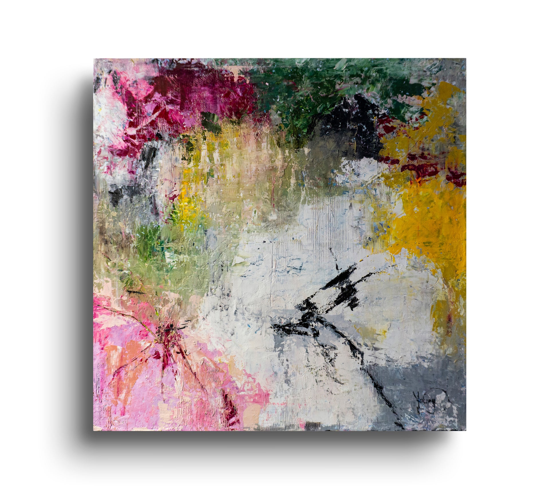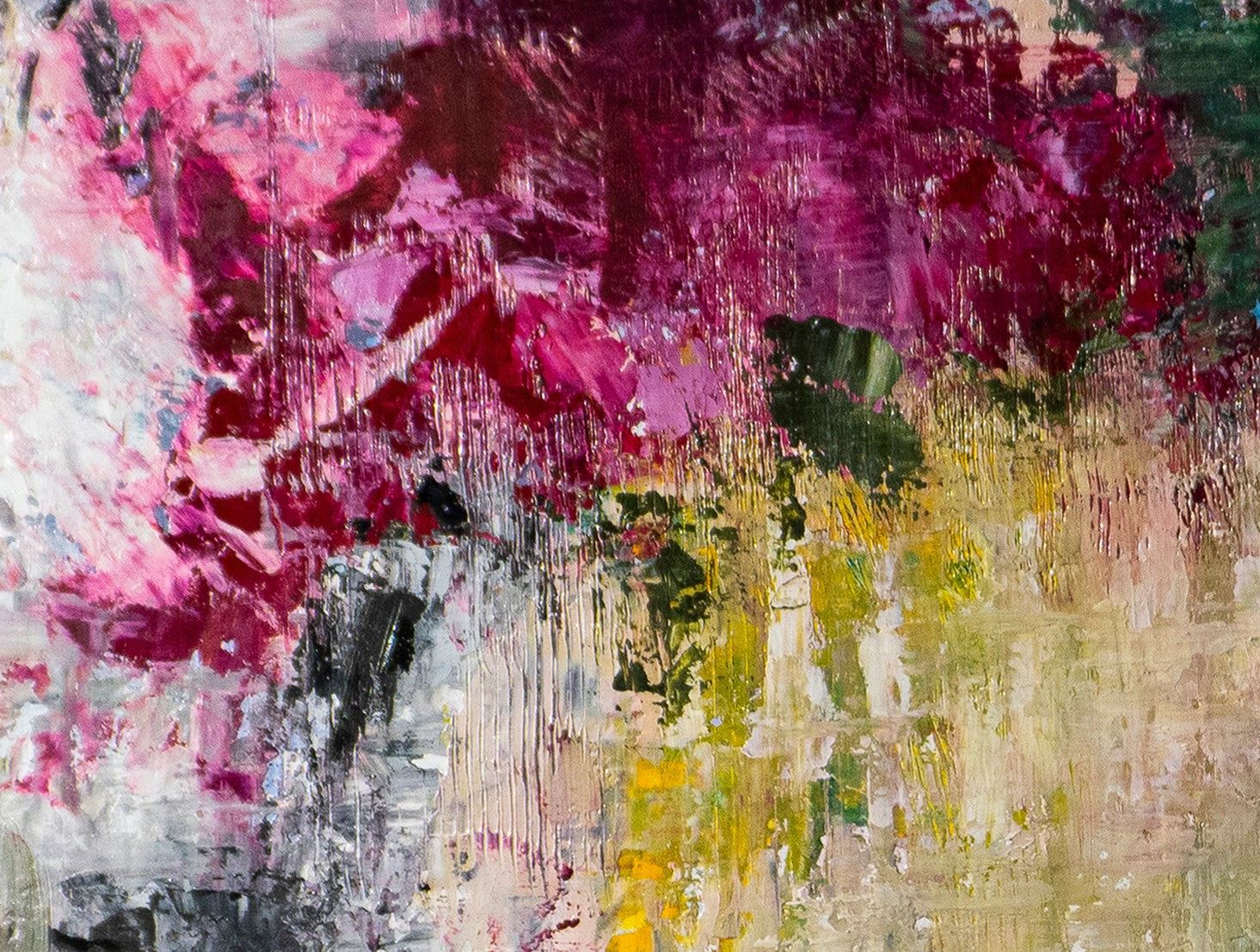 Otoño es una obra abstracta que invita a contemplar la nostalgia desde la sutileza de lo efímero. A través de formas sugeridas que remiten a flores en disolución y trazos que evocan la caída suave de la lluvia, la pieza captura el tránsito entre lo vivido y lo que comienza a desvanecerse.