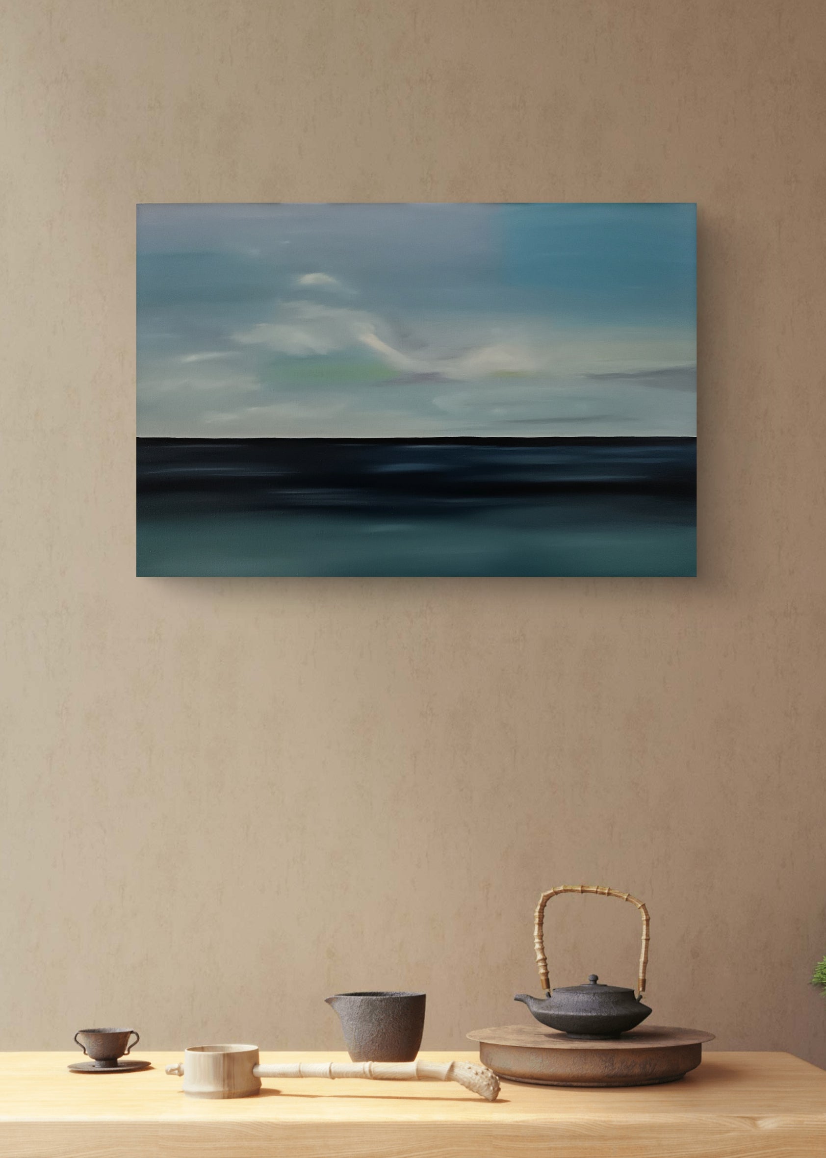Este cuadro esta inspirado en un último día de vacaciones en la Playa, cuando uno da vuelta y ve el mar por última vez, queriendo llevar ese recuerdo tan lindo. Asi se crea un sentimiento bello de nostalgia.