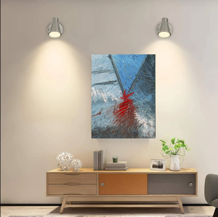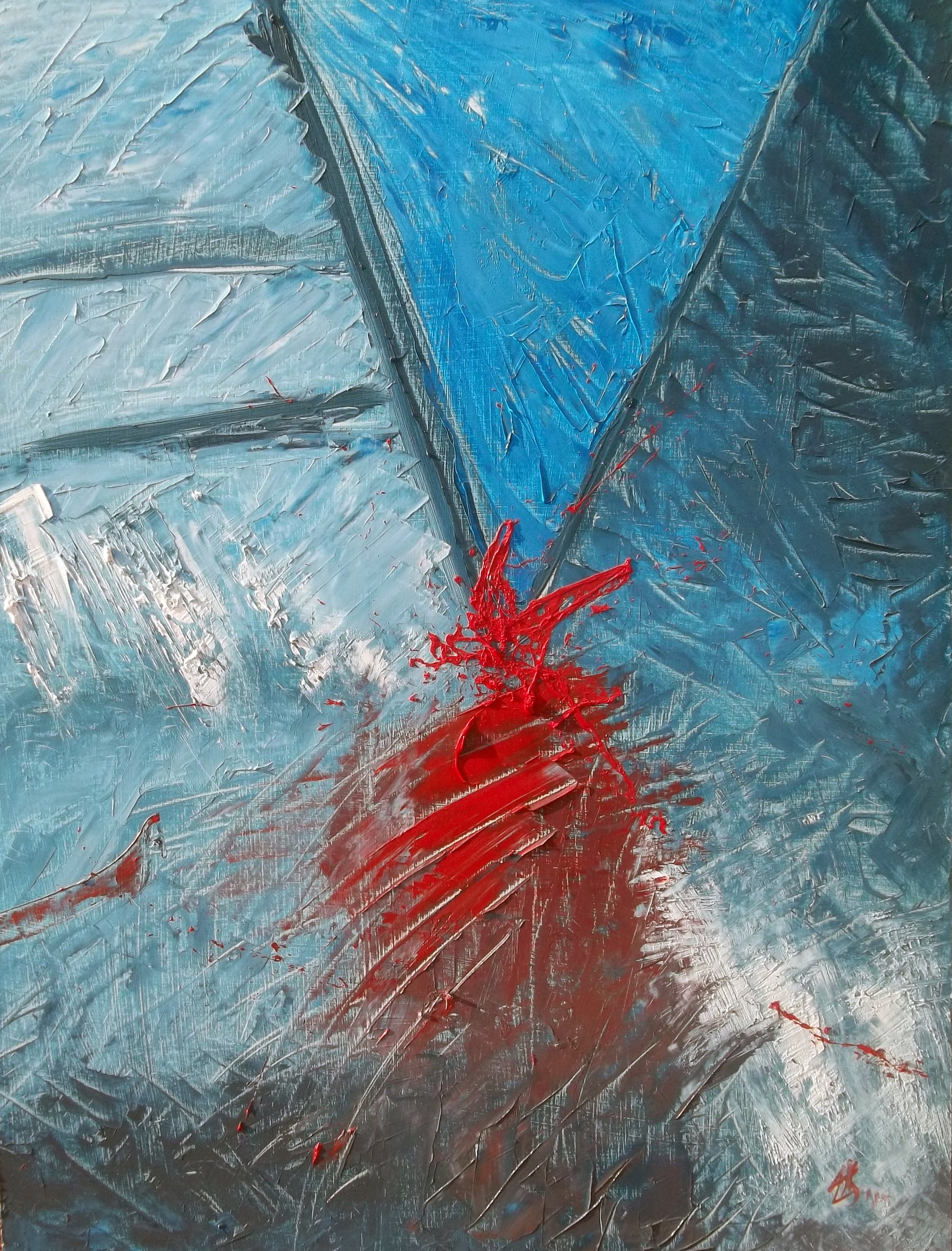 En "Paisaje azul", el artista utiliza una paleta de tonos predominantemente azules, que se mezclan y superponen para crear una atmósfera calmada y etérea. Los empastes gruesos y fluidos reflejan las suaves modulaciones y variaciones rítmicas de la melodía que inspira la obra, generando una sensación de movimiento tranquilo y envolvente. Los trazos ondulantes y las áreas de color difuso evocan la naturaleza fluida y cambiante de una composición musical, creando una experiencia visual inmersiva.