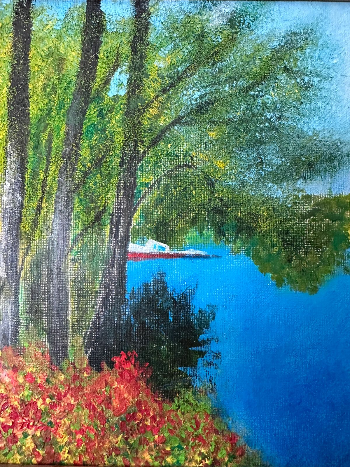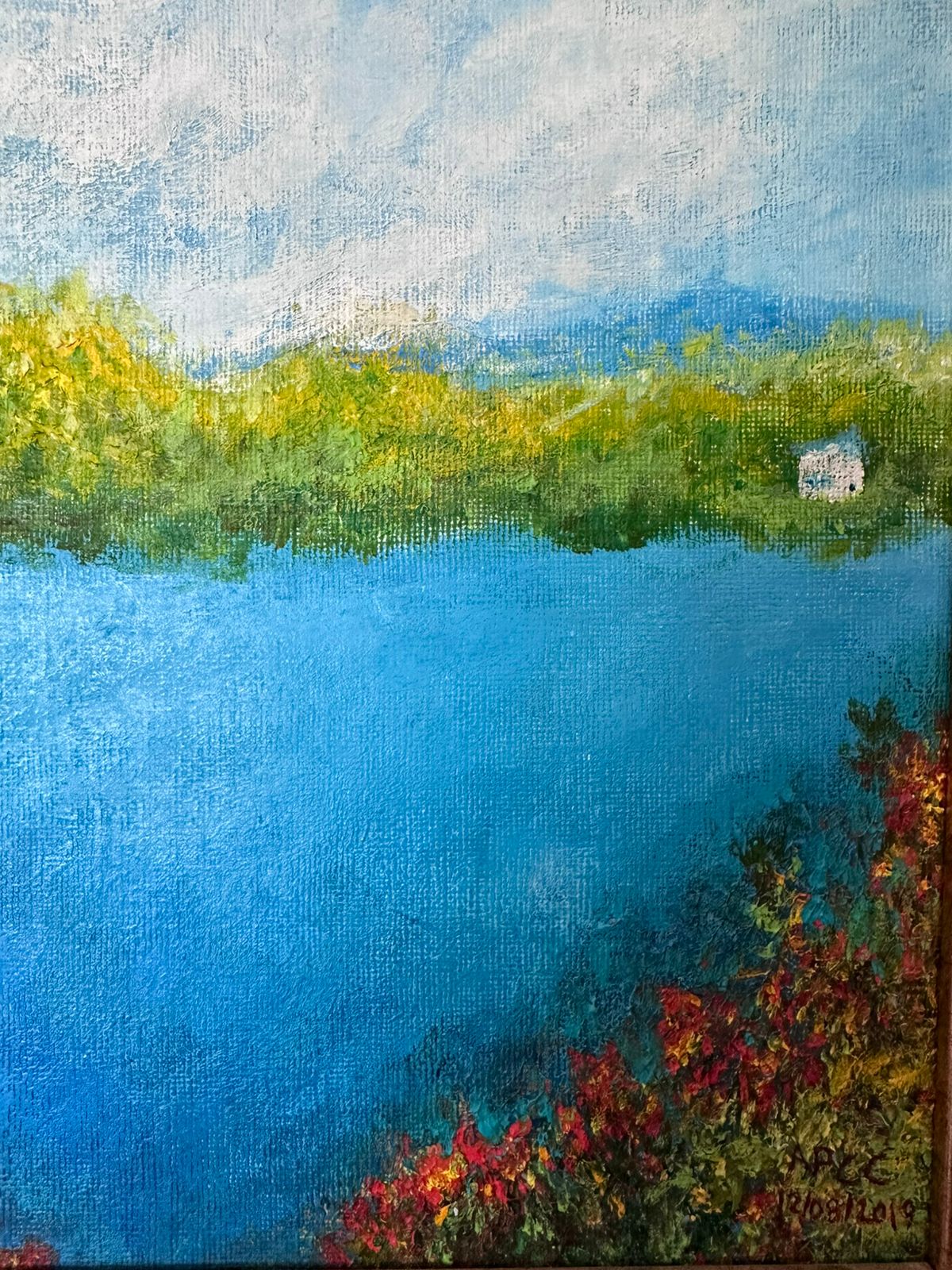 Paisaje con lago azul