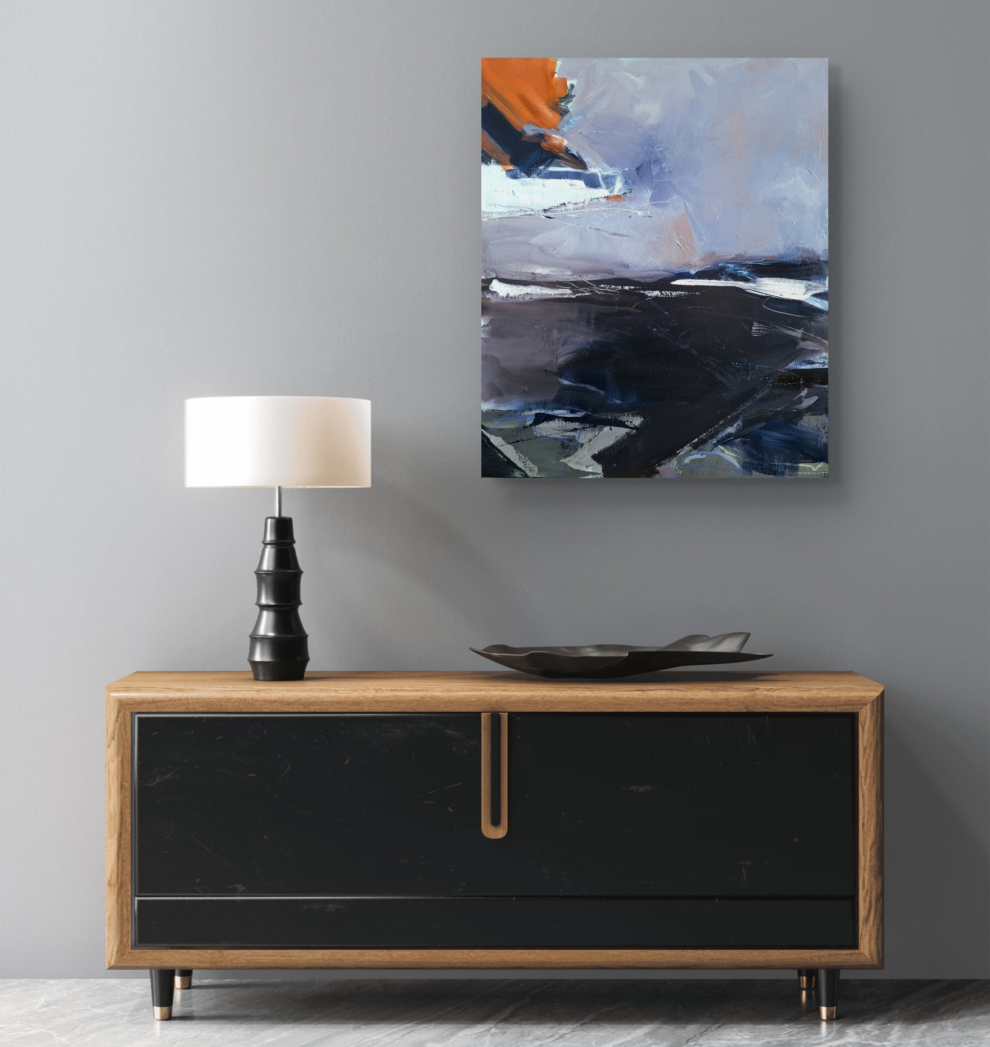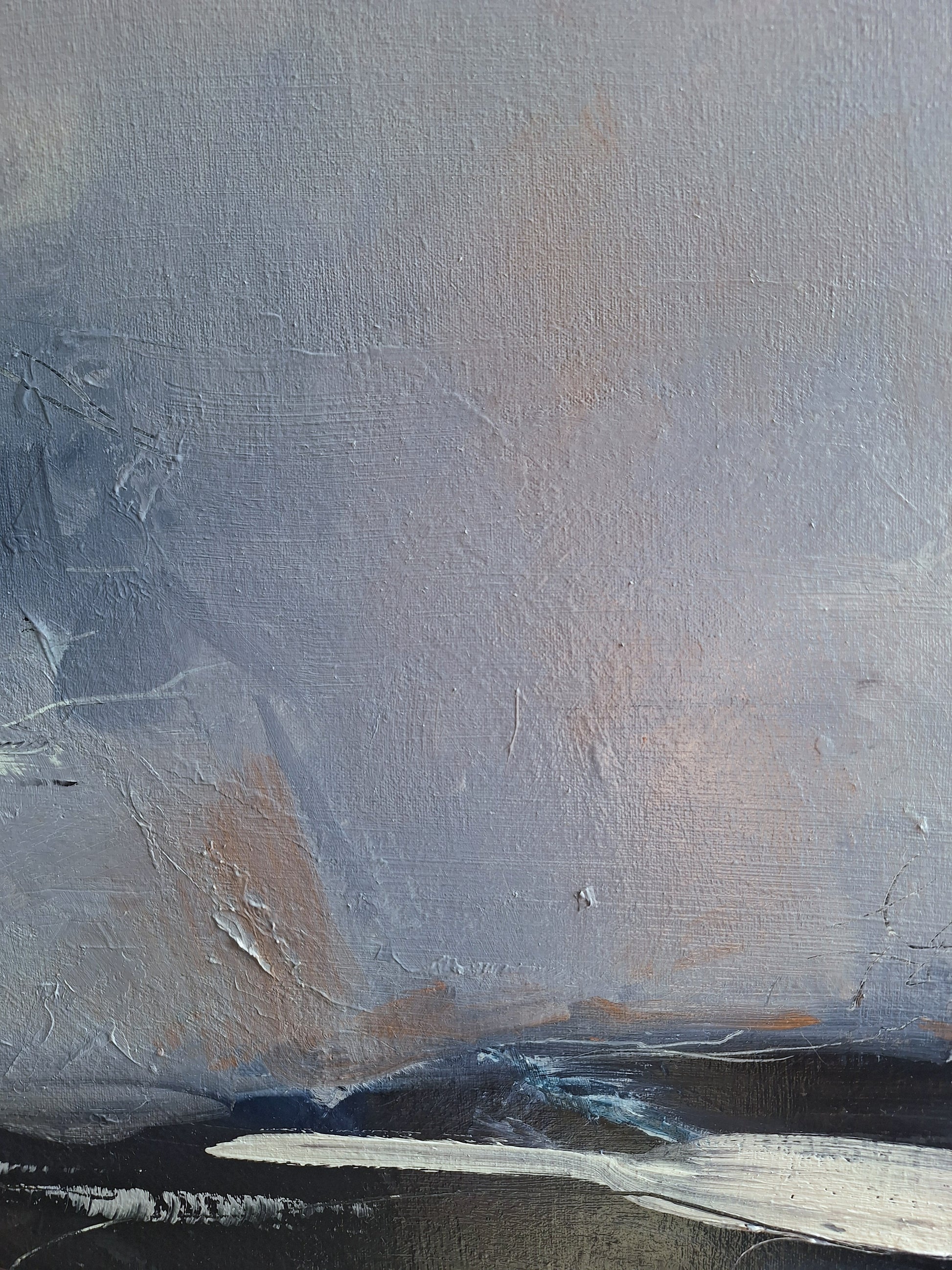En este paisaje onírico semi-abstracto, capturo el diálogo entre la calma y la tormenta. Quise transmitir esa energía efímera que sentimos en un paisaje nocturno, donde las emociones se vuelven fluidas y abstractas. Esta obra ofrece un espacio para conectar con tus propios pensamientos y sensaciones más auténticas.
