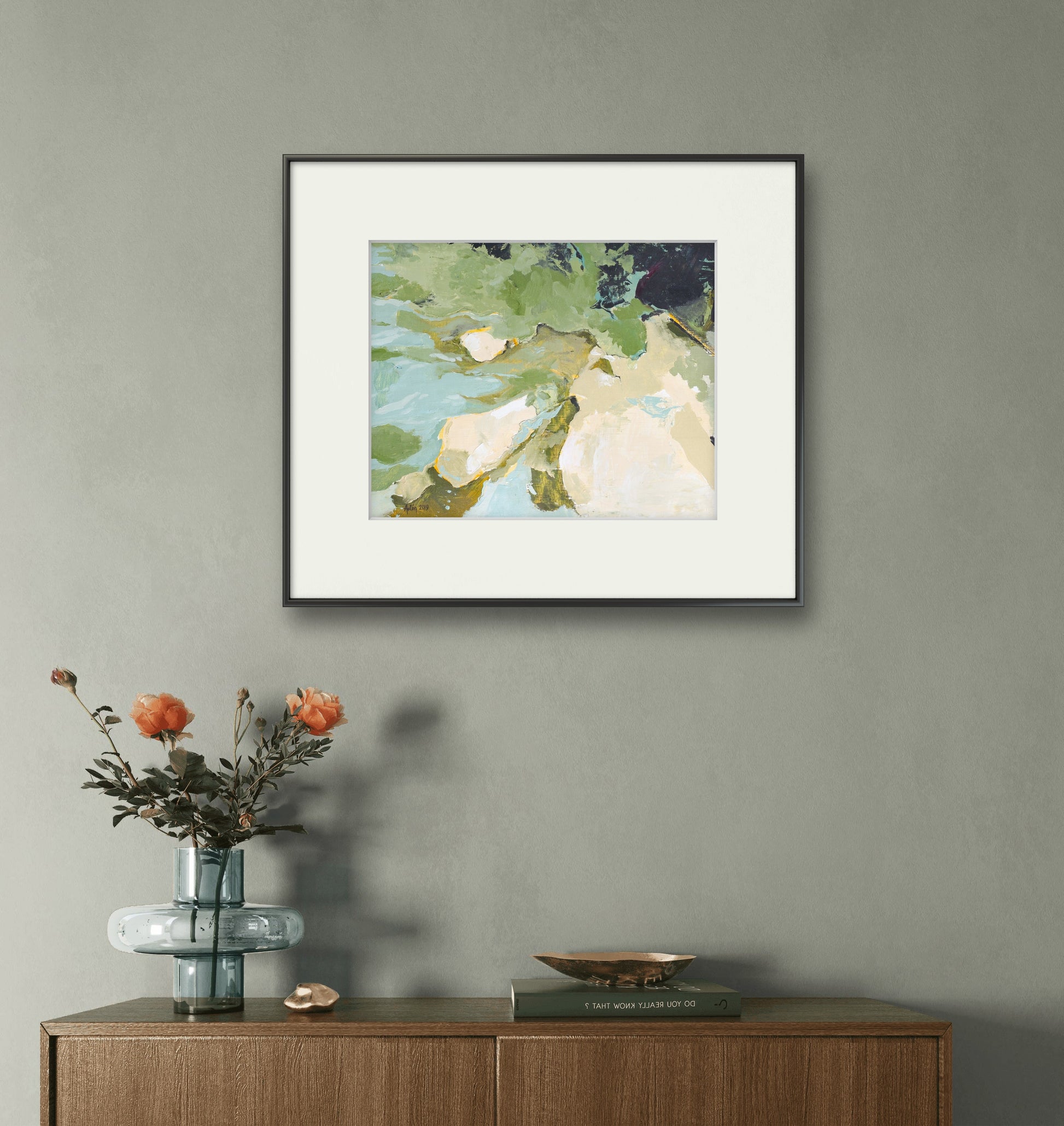 Esta pintura abstracta está inspirada en paisajes de la localidad de Cancún, específicamente las profundidades de la selva, presenta una invitación a la introspección y la conexión con la naturaleza. Forma parte de la Colección Inmersión.