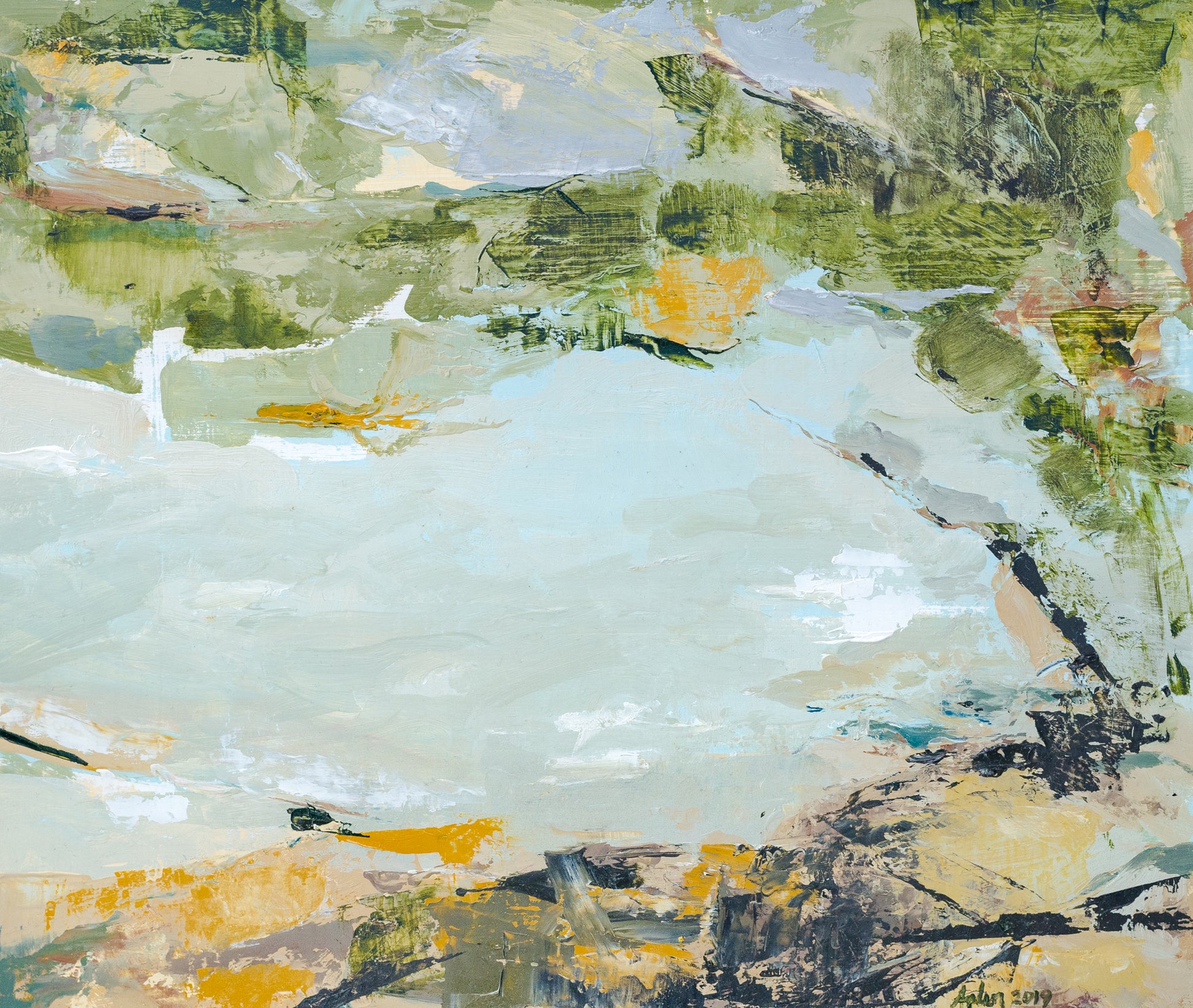 Esta pintura abstracta está inspirada en paisajes de la localidad de Cancún, específicamente las profundidades de la selva, presenta una invitación a la introspección y la conexión con la naturaleza. Forma parte de la Colección Inmersión.