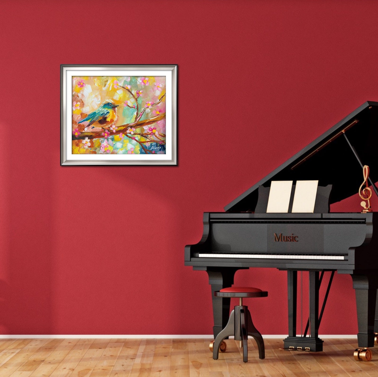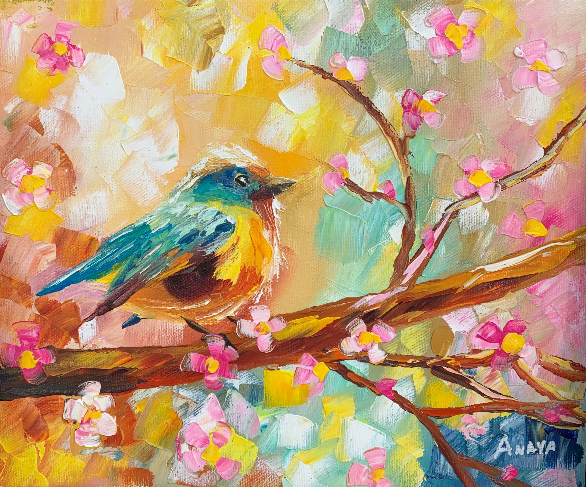 En esta serie de Pajaritos el artista quiere expresar el gran color y belleza del ave, transmitiéndolo con los colores y textura.