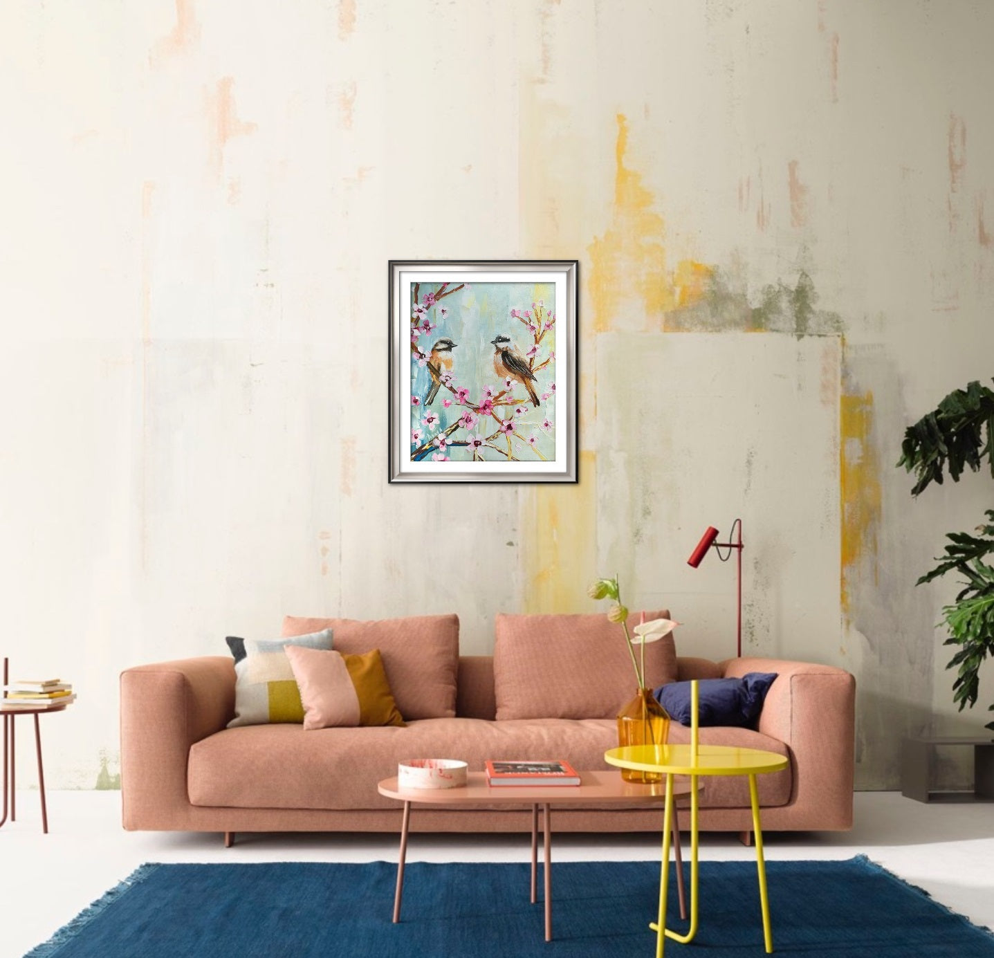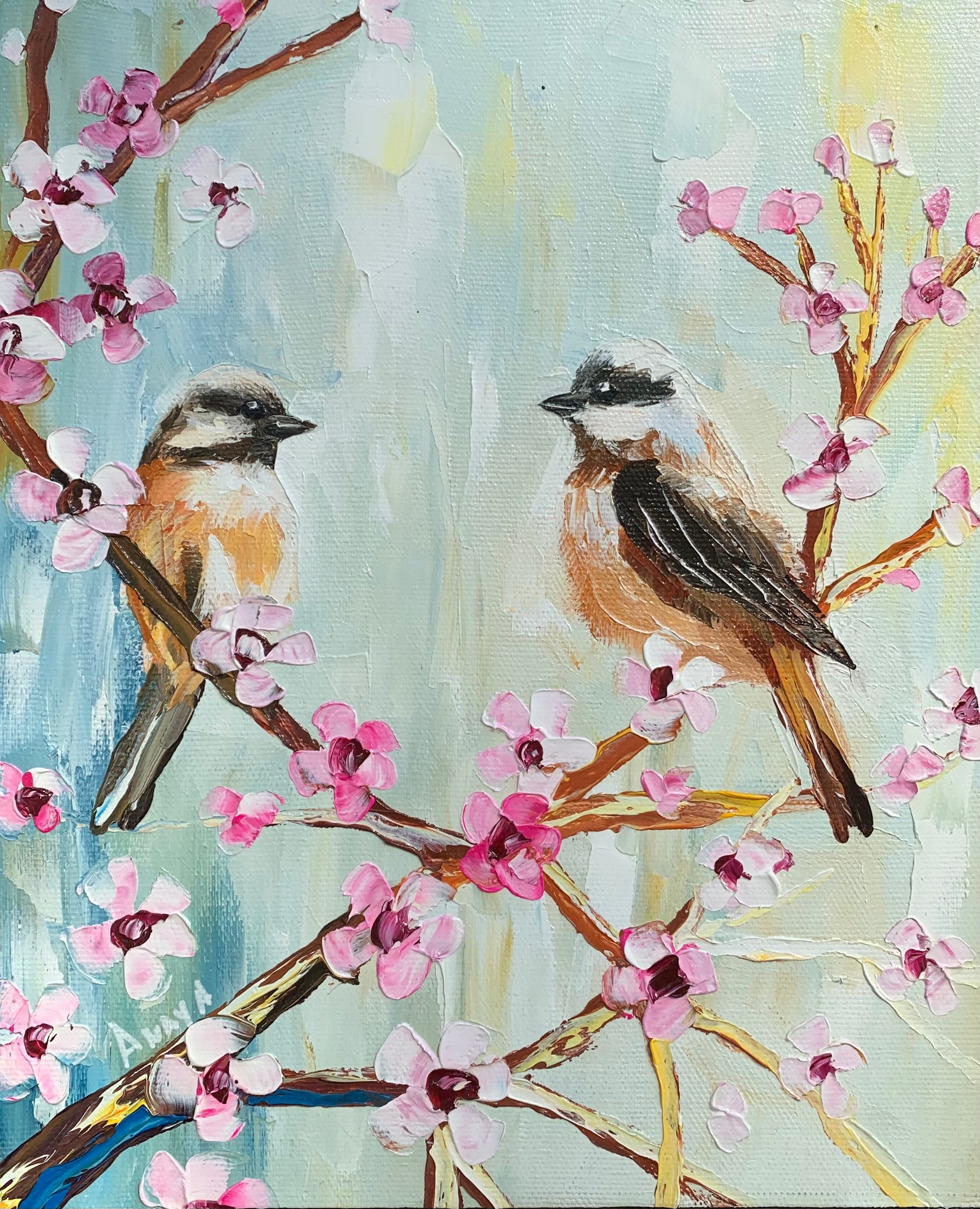 En esta serie de Pajaritos el artista quiere expresar el gran color y belleza del ave, transmitiéndolo con los colores y textura.