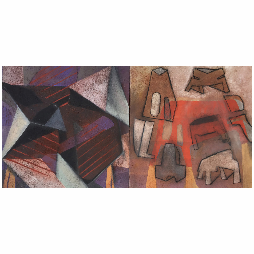 Esta obra forma parte de una serie de pinturas que contienen aspectos de carácter abstracto y simbólico, utilizando la dualidad y el equilibrio como eje principal. La asimetría como eje estético, un elemento para crear composiciones dinámicas usando formatos duales horizontales y verticales. El uso del color, tierras, carbón. ceniza, ceras, oleó, acrílico y pigmentos, materiales que contienen en si aspectos simbólicos, Formas geométricas que interactúan con ambientes orgánicos.