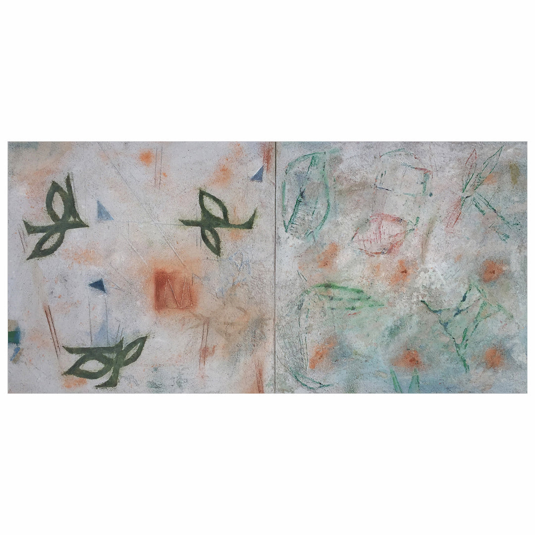 Esta obra forma parte de una serie de pinturas que contienen aspectos de carácter abstracto y simbólico, utilizando la dualidad y el equilibrio como eje principal. La asimetría como eje estético, un elemento para crear composiciones dinámicas usando formatos duales horizontales y verticales. El uso del color, tierras, carbón. ceniza, ceras, oleó, acrílico y pigmentos, materiales que contienen en si aspectos simbólicos, Formas geométricas que interactúan con ambientes orgánicos.