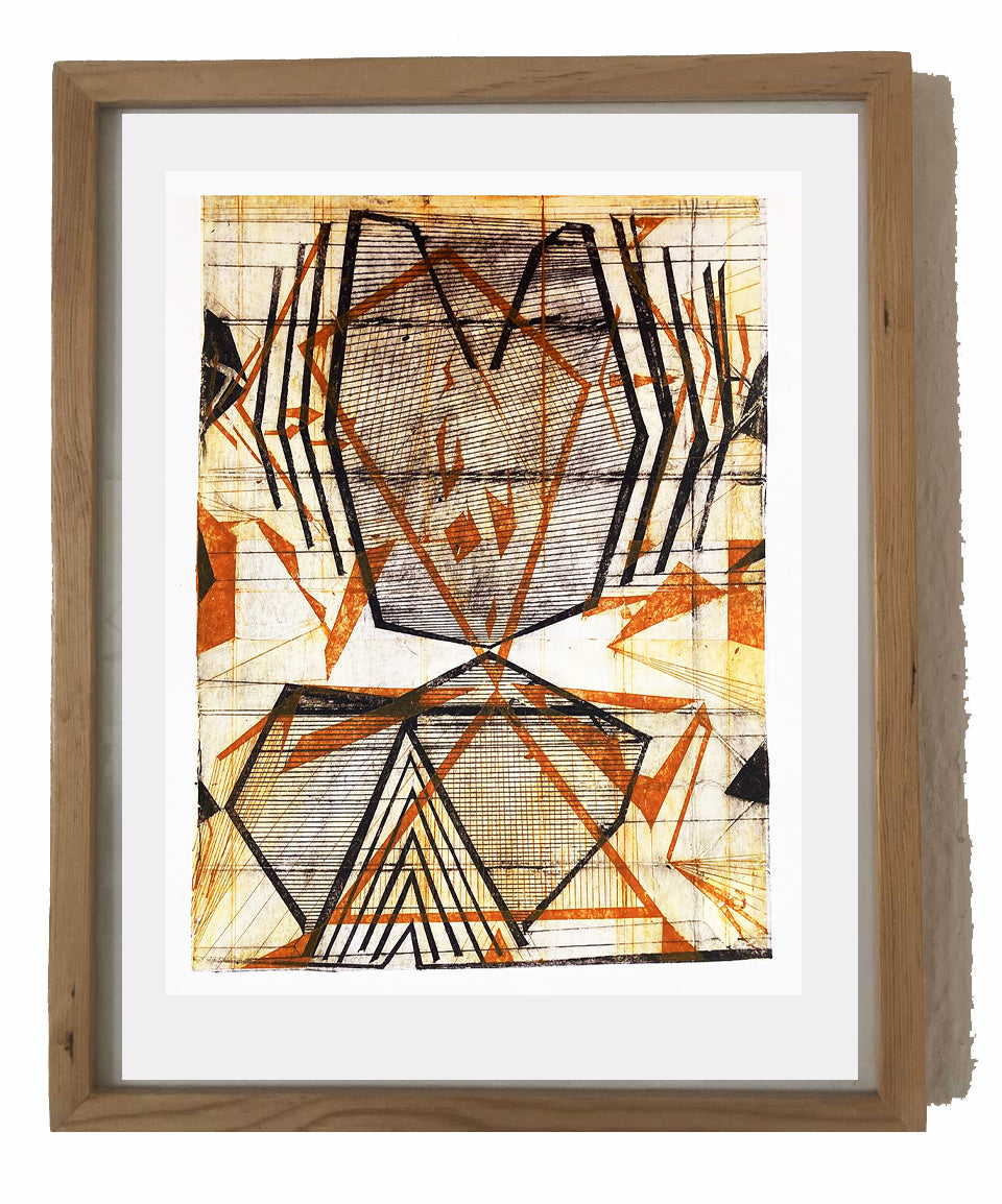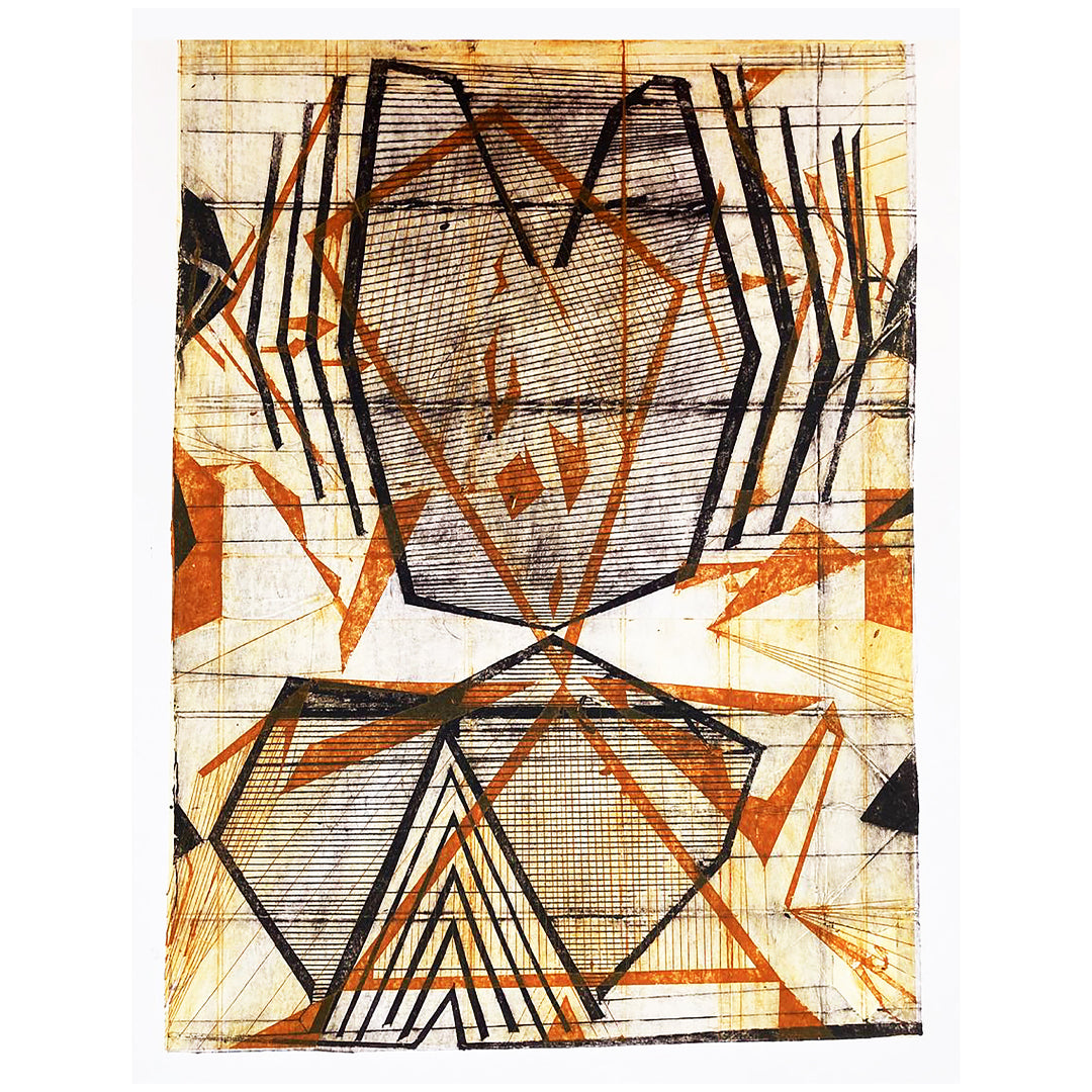 Paradigma es una serie de grabados realizados con material de reciclaje, están elaborados sobre placas de cartón con aluminio de envases y la idea principal es utilizar diferentes capas y aprovechar los formatos y composiciones que el material ofrece, otro aspecto es el uso del color en el grabado y realizado yuxtaposiciones de formas y matices que diferentes espacios plásticos, el uso de elementos geométricos y orgánicos generando un propio lenguaje de expresión.