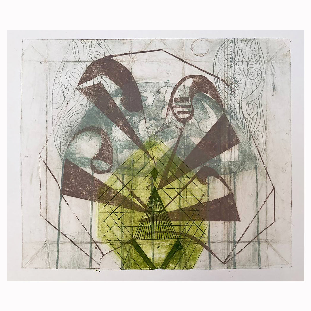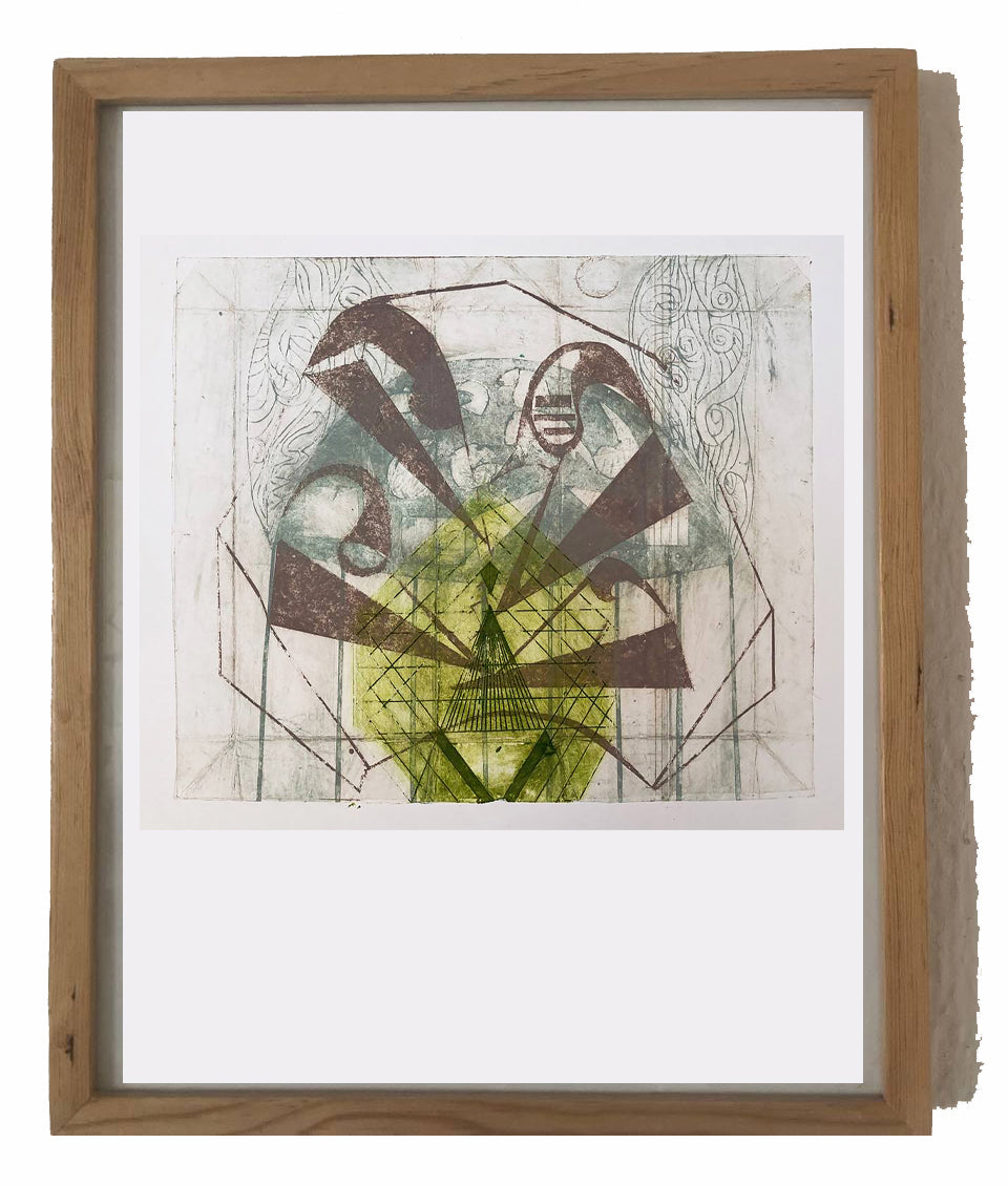 Paradigma es una serie de grabados realizados con material de reciclaje, están elaborados sobre placas de cartón con aluminio de envases y la idea principal es utilizar diferentes capas y aprovechar los formatos y composiciones que el material ofrece, otro aspecto es el uso del color en el grabado y realizado yuxtaposiciones de formas y matices que diferentes espacios plásticos, el uso de elementos geométricos y orgánicos generando un propio lenguaje de expresión.