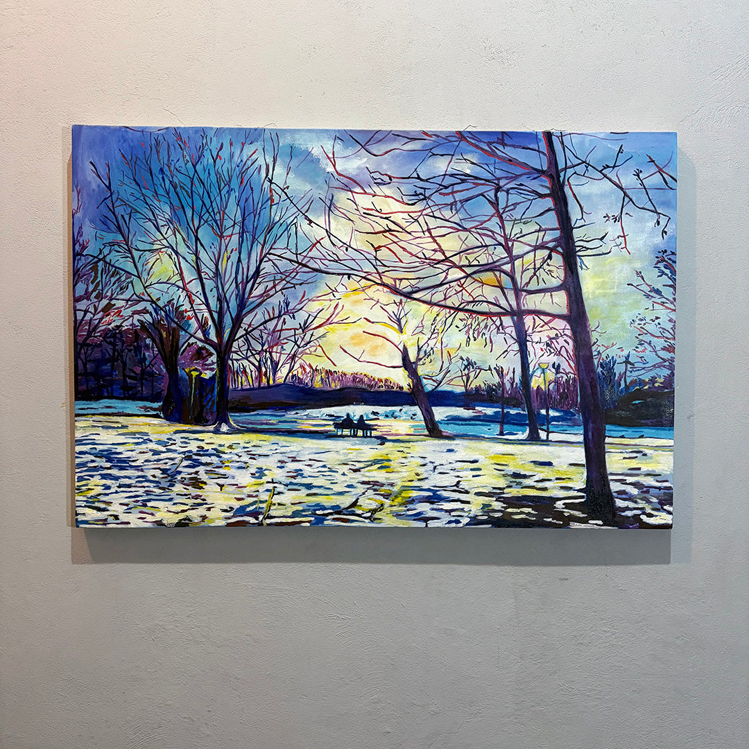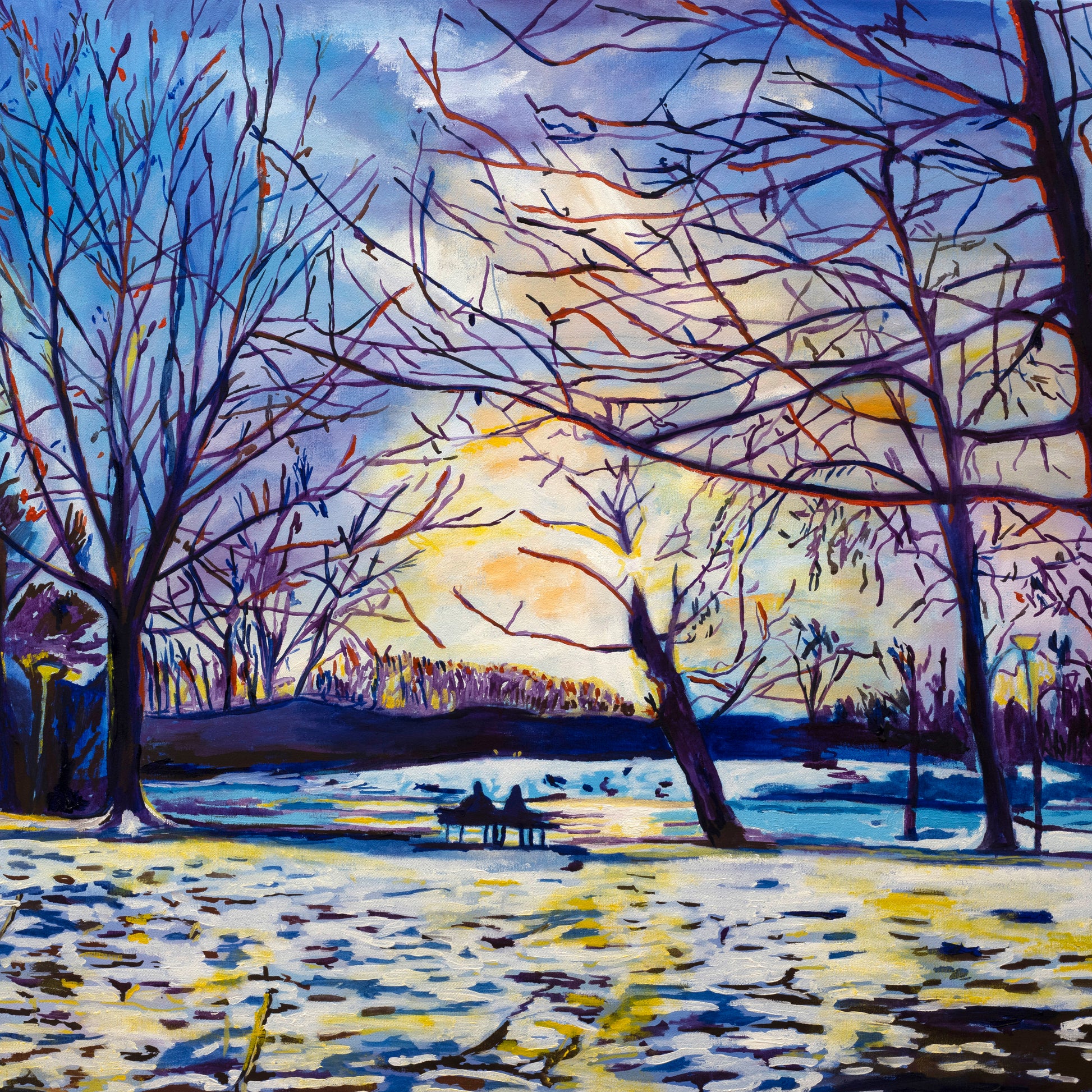 Una pareja sobre un paisaje nevado en Ámsterdam