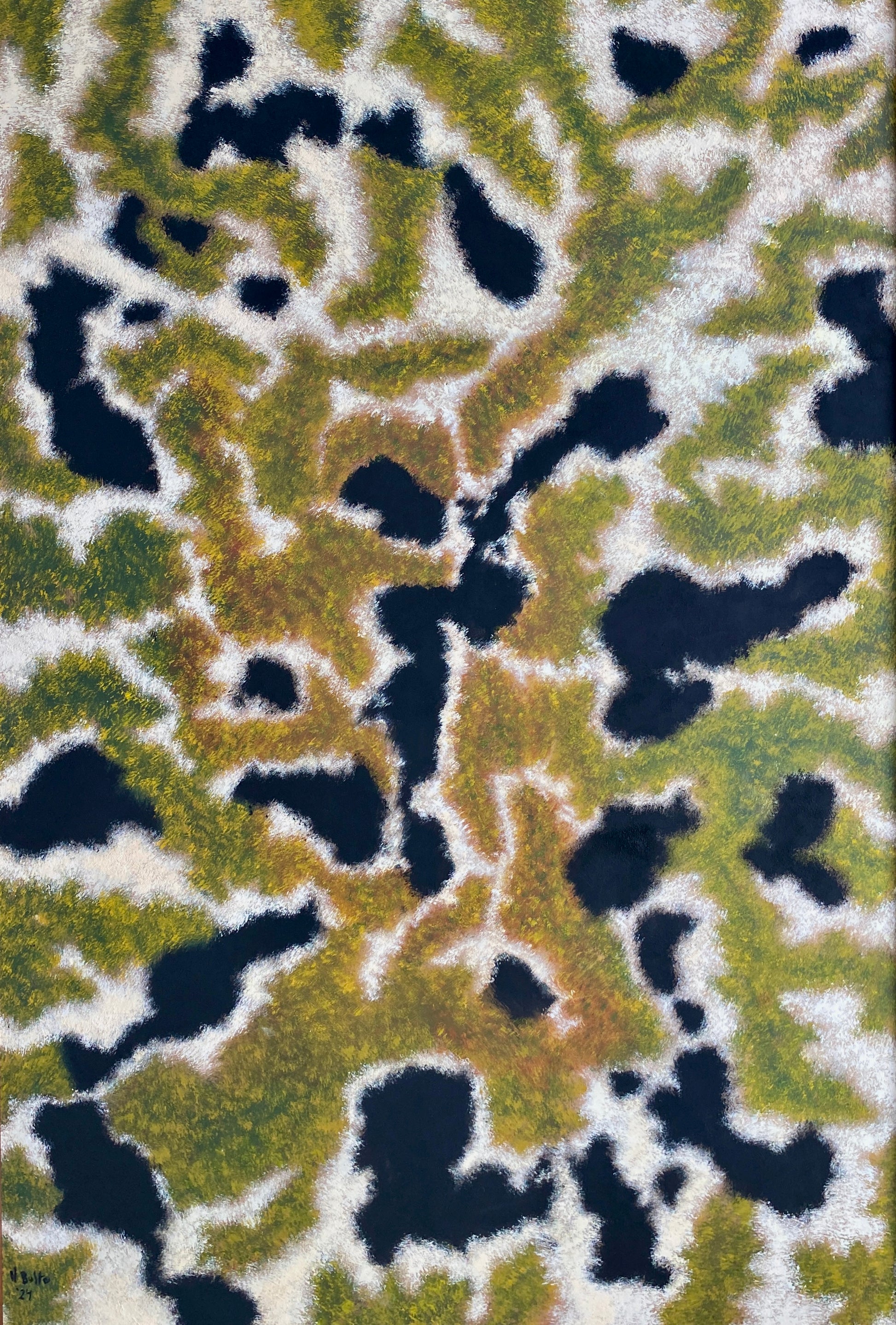 Esta obra es parte de una serie cuya única intención es disfrutar un tipo de textura visual que surgió en una de mis experimentaciones al aplicar una técnica similar al puntillismo.