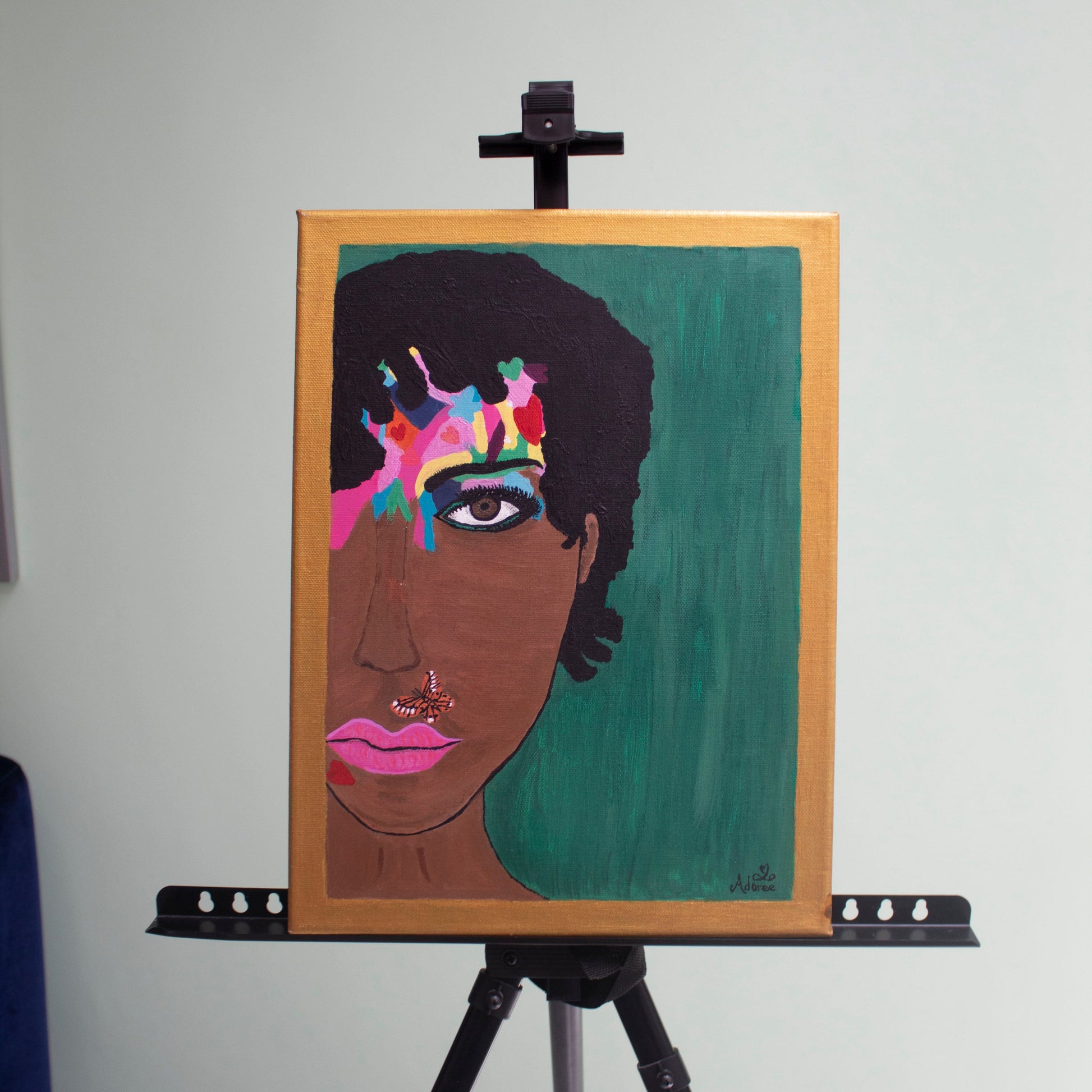Sobre lienzo de tela, bastidor de madera. Acrílico y acuarela