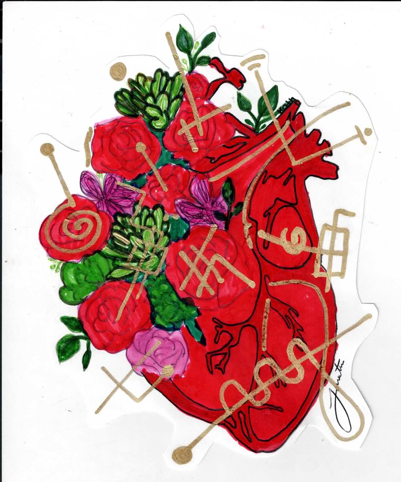Esta imagen intervenida presenta un corazón adornado con delicadas flores, evocando la belleza y el florecimiento del amor. El contraste entre el oro y el amor destaca una dualidad fascinante: el oro simboliza la riqueza y la eternidad, mientras que el amor representa la pureza y la profundidad emocional. La combinación de estos elementos refleja una energía vibrante, sugiriendo que el amor no solo es un sentimiento precioso, sino también una experiencia que ilumina y enriquece nuestras vidas.
