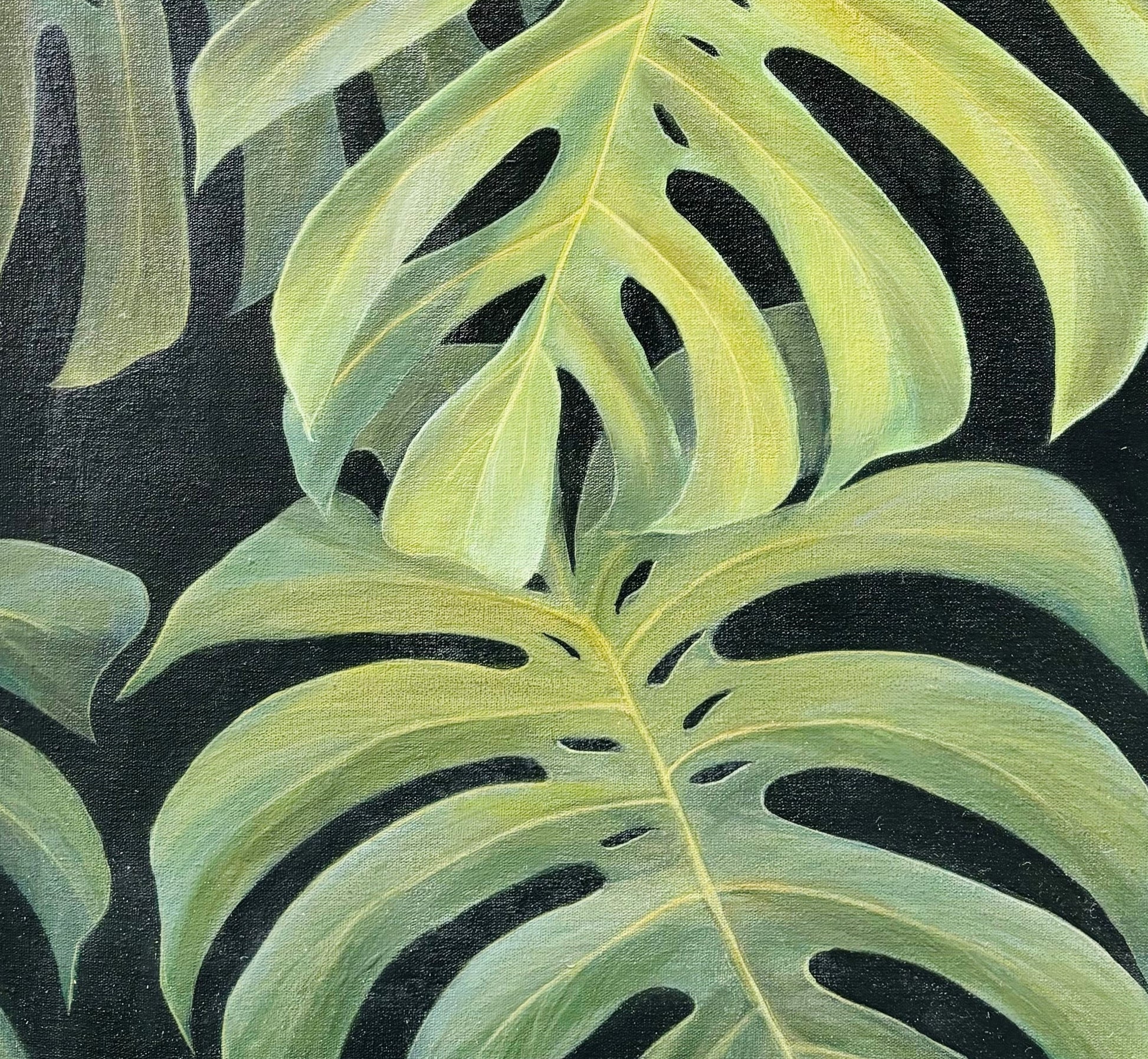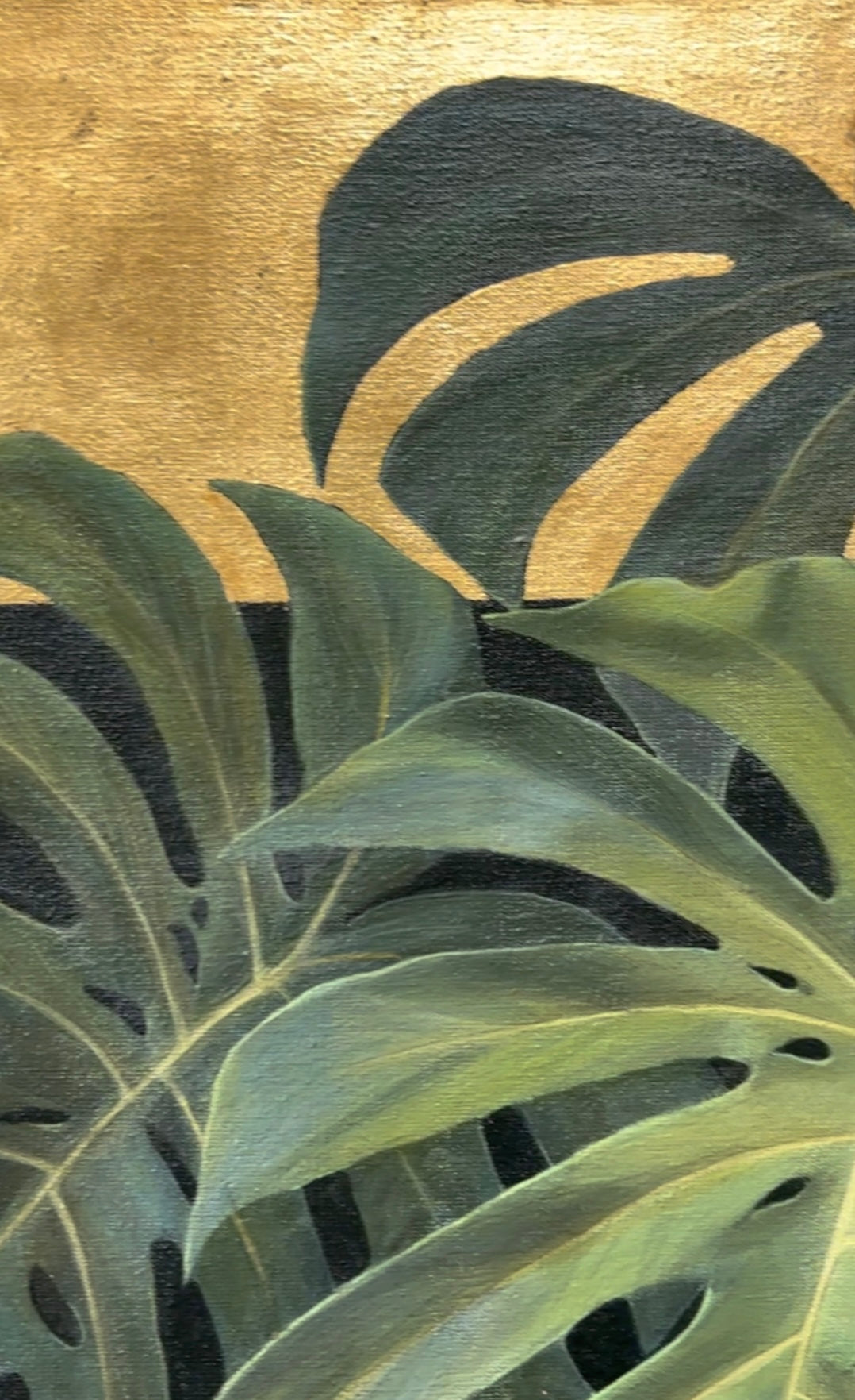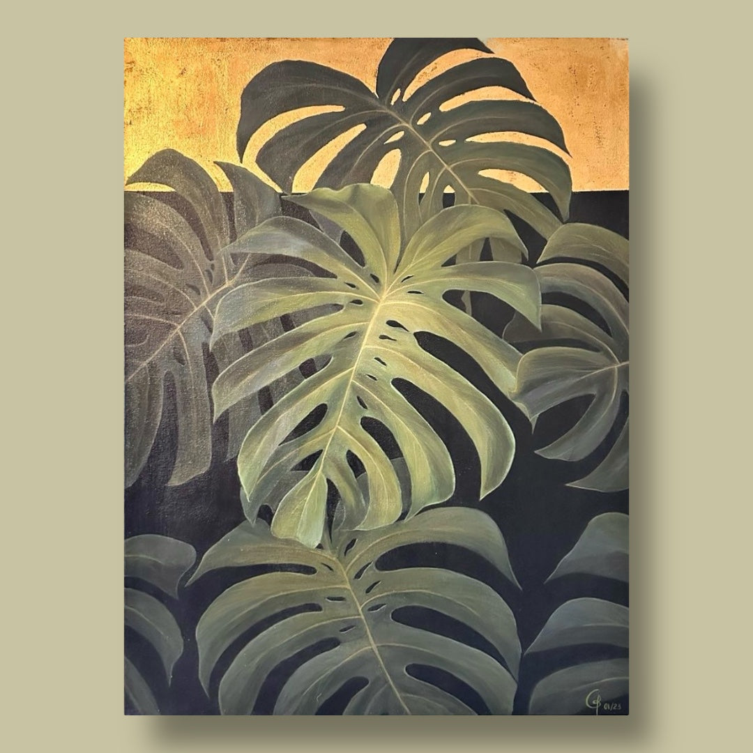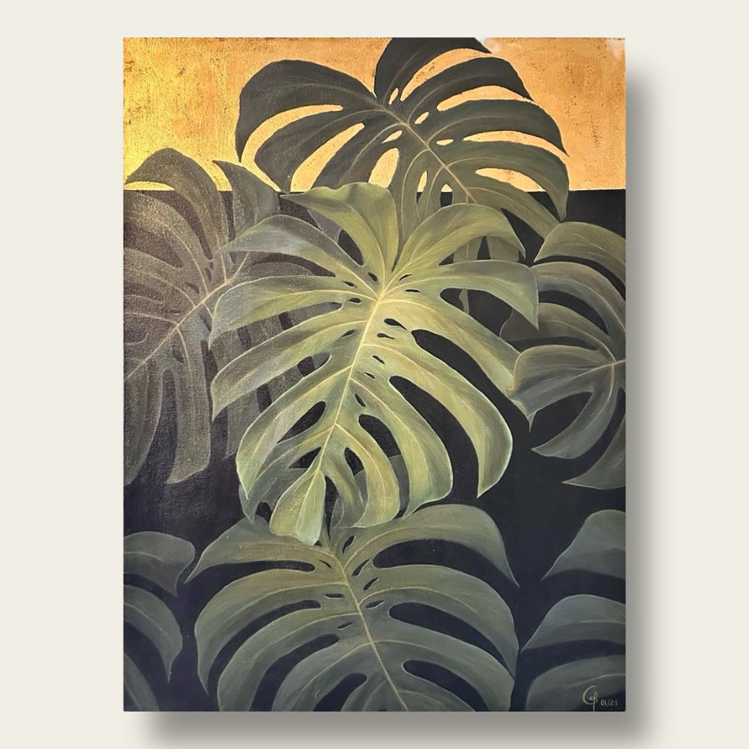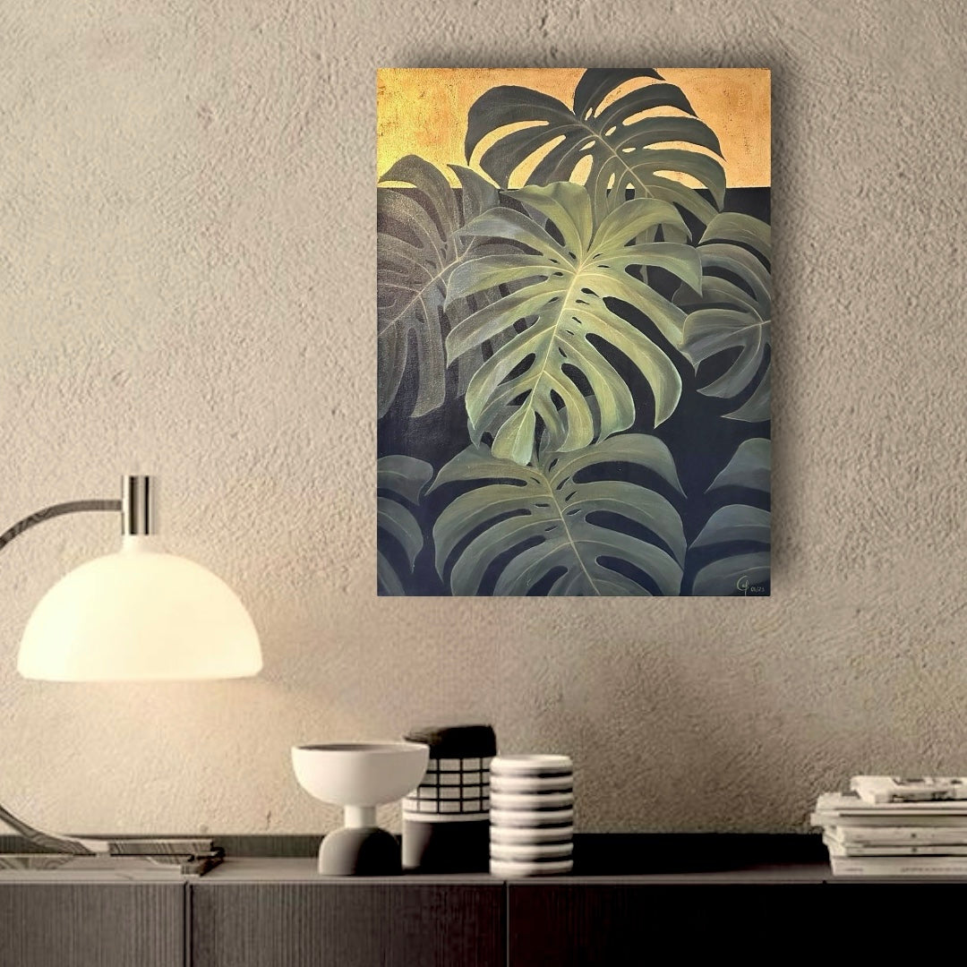 "Perfectamente Imperfecta” es una obra que captura la esencia vibrante de un paraíso natural en el Estado de México. Inspirada en su exuberante vegetación, la pintura presenta como protagonistas unas hojas únicas, que a simple vista pueden lucir verdes pero dentro de ella encuentras matices con verdes azulados, verdes con tonos naranjas y algunos más amarillos, reflejando la diversidad y riqueza que guarda cada una de las hojas. El fondo dorado simboliza los poderosos rayos del sol que bañan estas hojas cada mañana. Esta pieza no solo embellecerá tu espacio, sino que también le transmitirá la luz y la fuerza revitalizante de este lugar.
