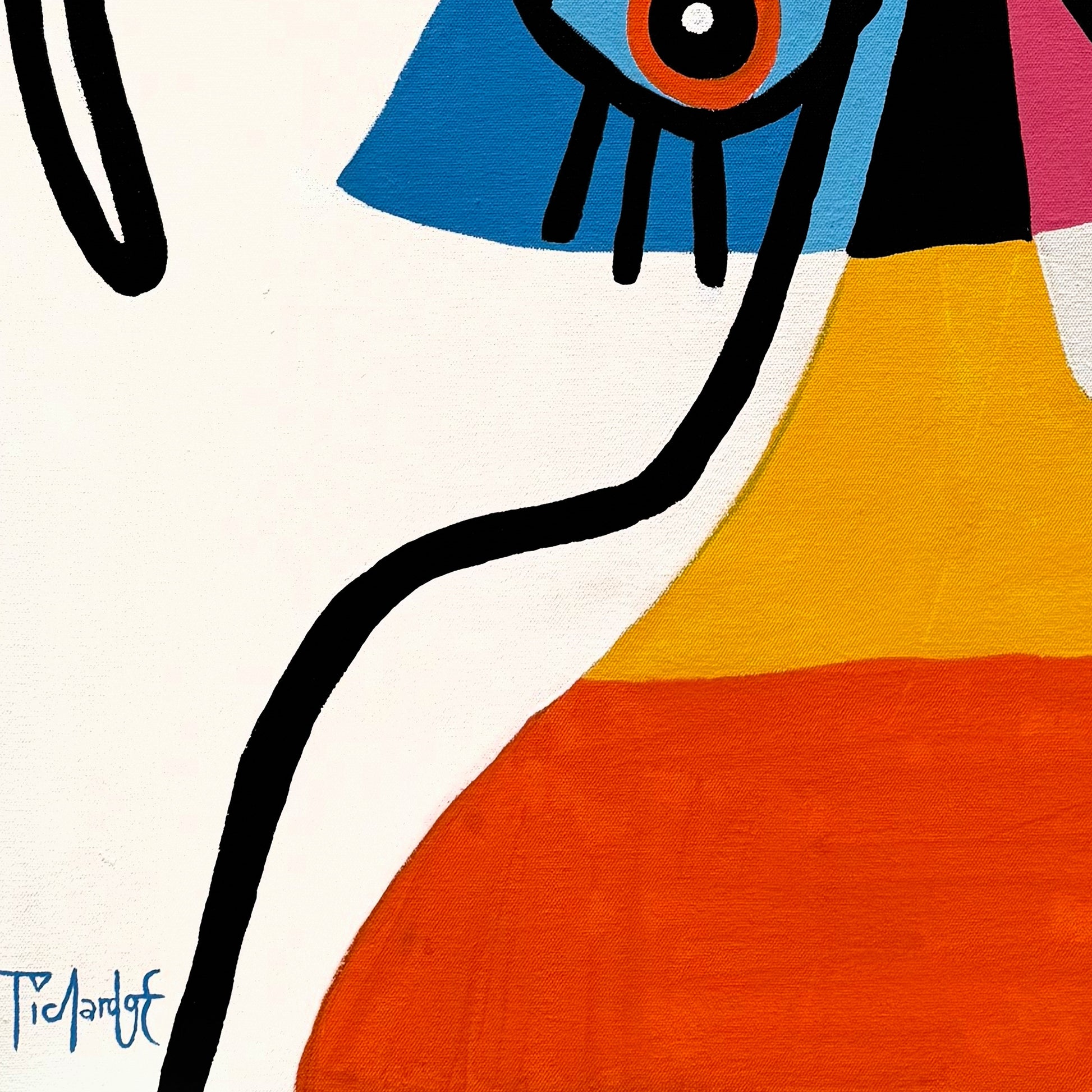 La obra de Enrique Pichardo se consolida como una pieza representativa del arte contemporáneo figurativo, destacando por su estructura gráfica, su color vibrante y su lenguaje visual reconocible, ideal para colecciones que buscan obras con identidad y fuerza plástica.