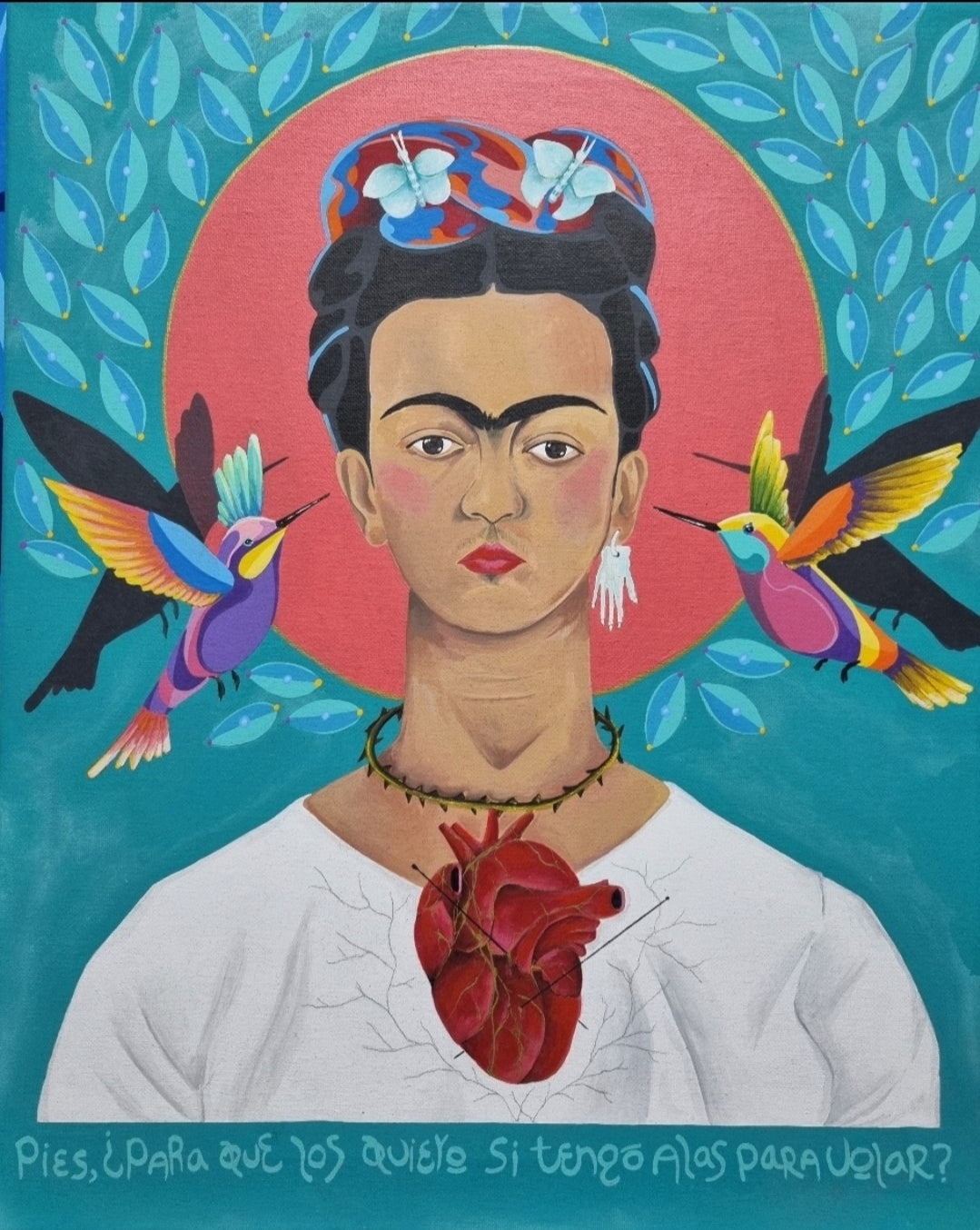 Frida, el corazón la parte viva, la vida, los pájaros representa los mensajes la intuición, son elementos entre la libertad y el sufrimiento.
