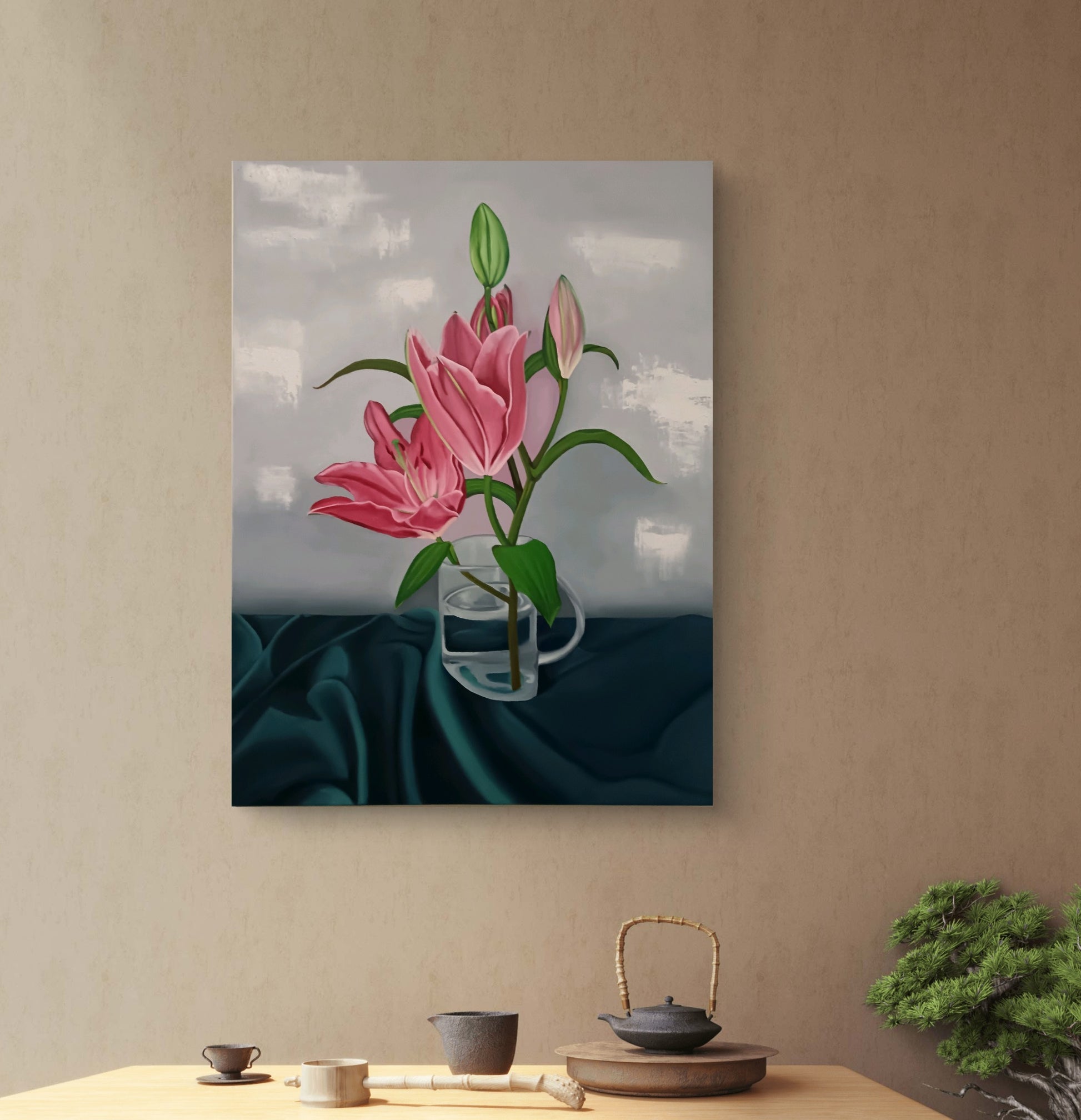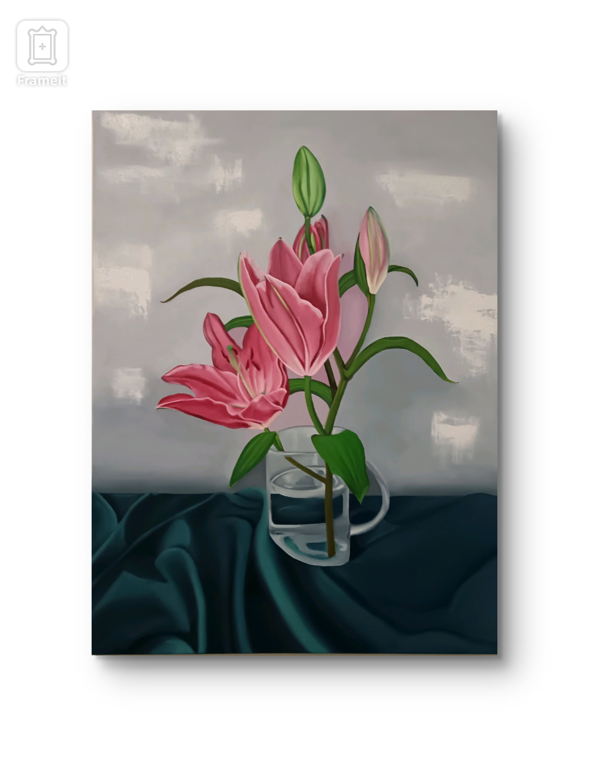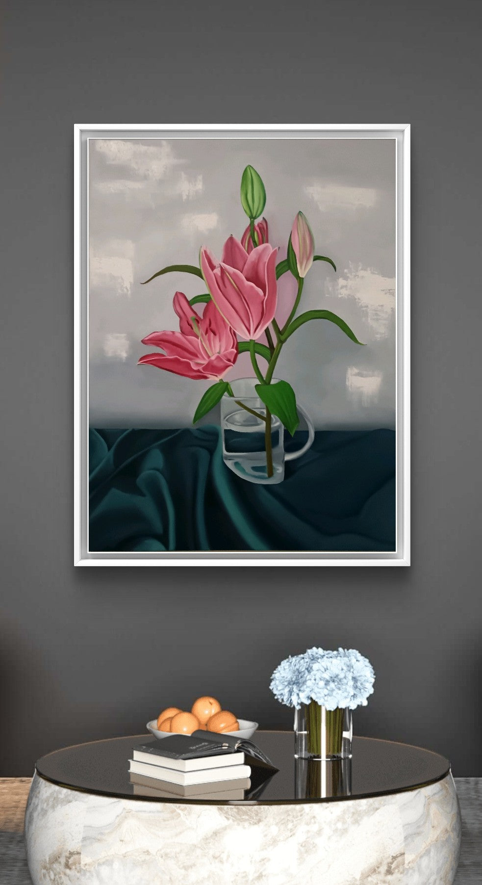 Estas flores están inspiradas en las pinturas clásicas donde, la figura posa con telas, en este caso son unas lindas flores posando para quedar plasmada para siempre.