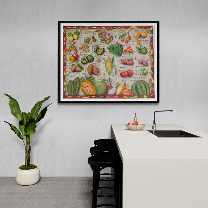 Desde hace años investigo, estudio y pinto algunos ingredientes comestibles que México le ha dado al mundo. En mis pinturas incluyo nomenclatura en español, latín (nombre científico) y algunas lenguas indígenas. La variedad de frutas y verduras acompañadas siempre del chile, hacen de mis cuadros obras únicas y auténticamente mexicanas.