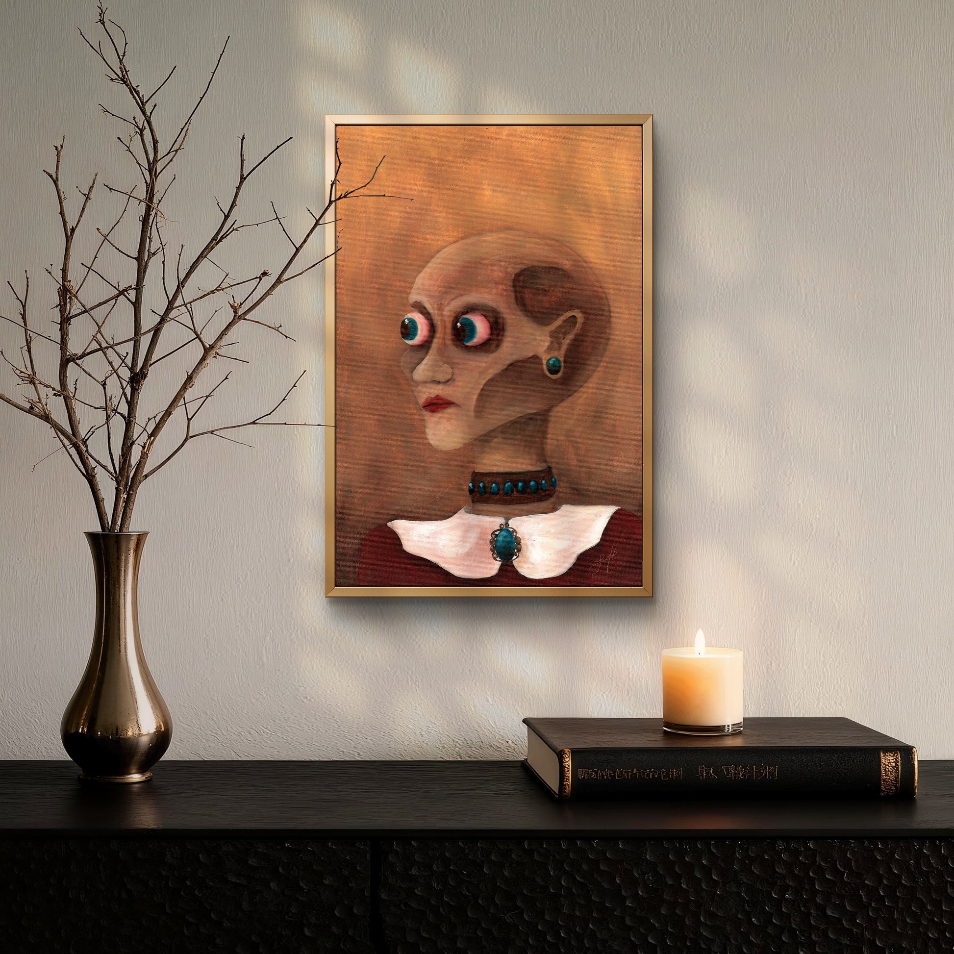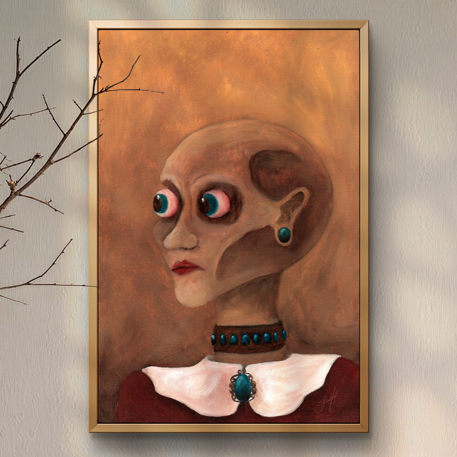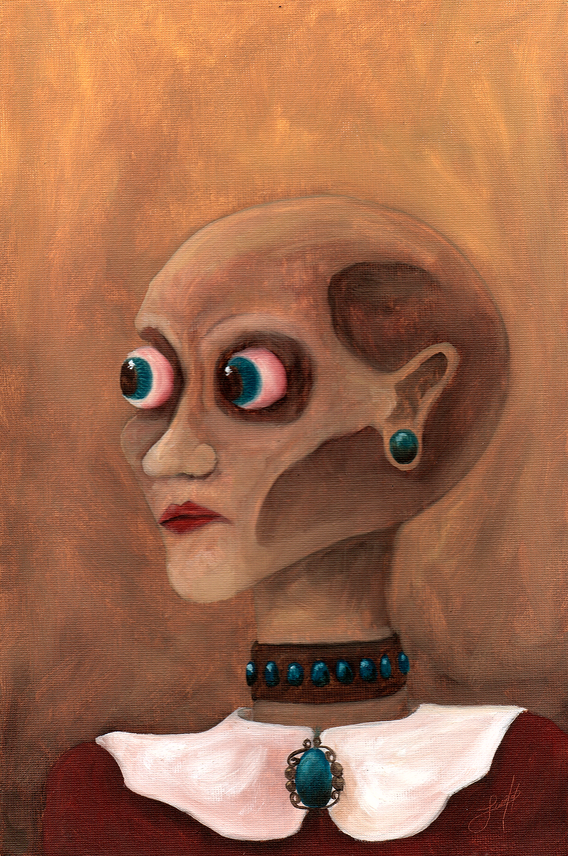 Esta pintura pertenece a una serie de mini lienzos titulada "presencias extrañas" en la cual el objetivo era superar el bloqueo creativo. Para ello se me ocurrió recordar mi niñez, volver a dibujar y pintar como cuando tenía 10 años, sin pensar en darle una explicación a cada cuadro, sólo fluyendo con el óleo y las formas que acompañaron aquella etapa en mi vida.