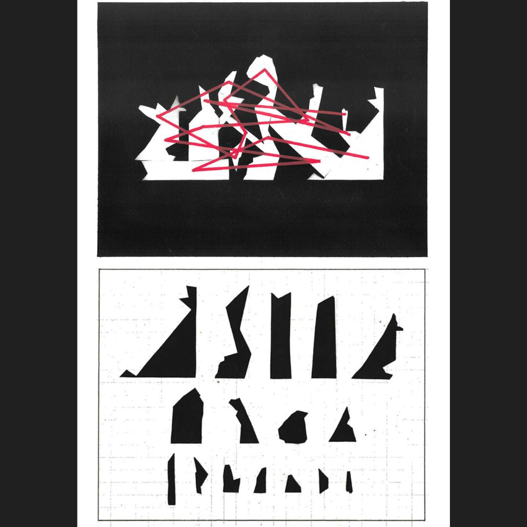 Después, partiendo de este orden, los fragmentos fueron unidos en las composiciones mediante una línea roja que seguía el criterio de clasificación previa. Esto dio como resultado un tipo imprevisto de visualidad en las composiciones iniciales.