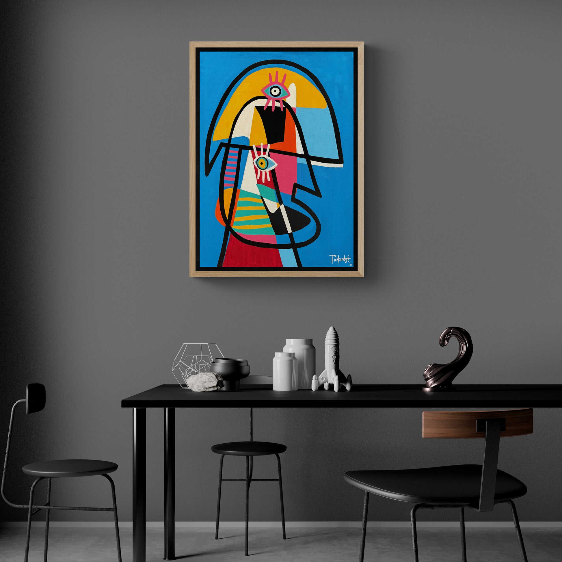 Prognata representa una oportunidad sólida para coleccionistas de arte contemporáneo interesados en obras con identidad visual fuerte, lenguaje simbólico y una estética alegre y sofisticada. Su combinación de abstracción figurativa, color intenso y narrativa gráfica la posiciona como una pieza destacada dentro del panorama actual.
