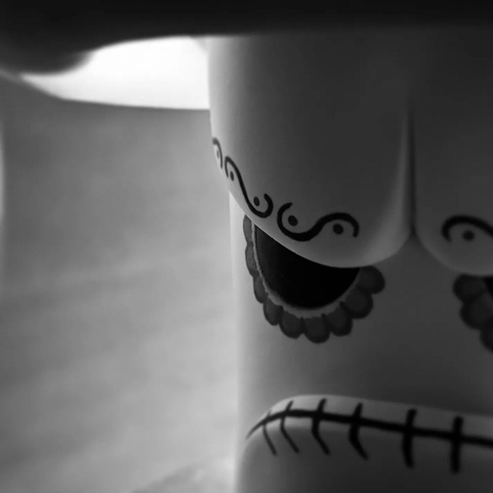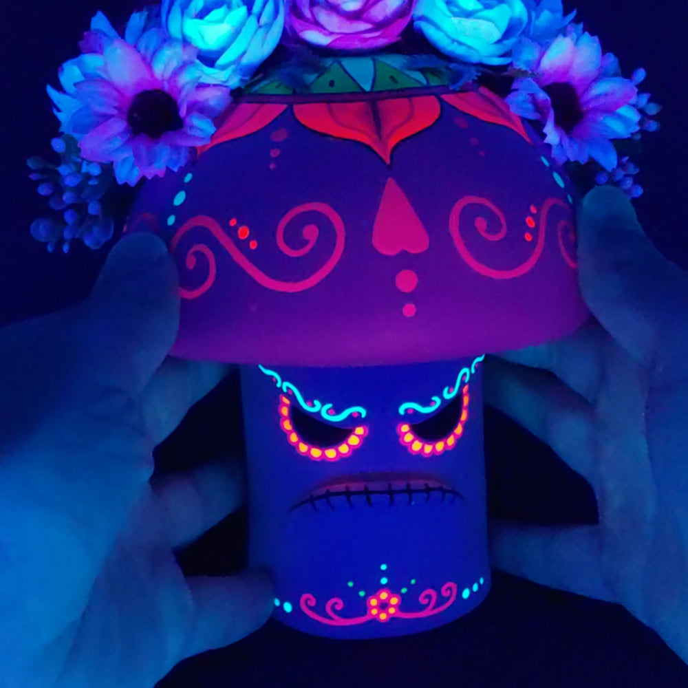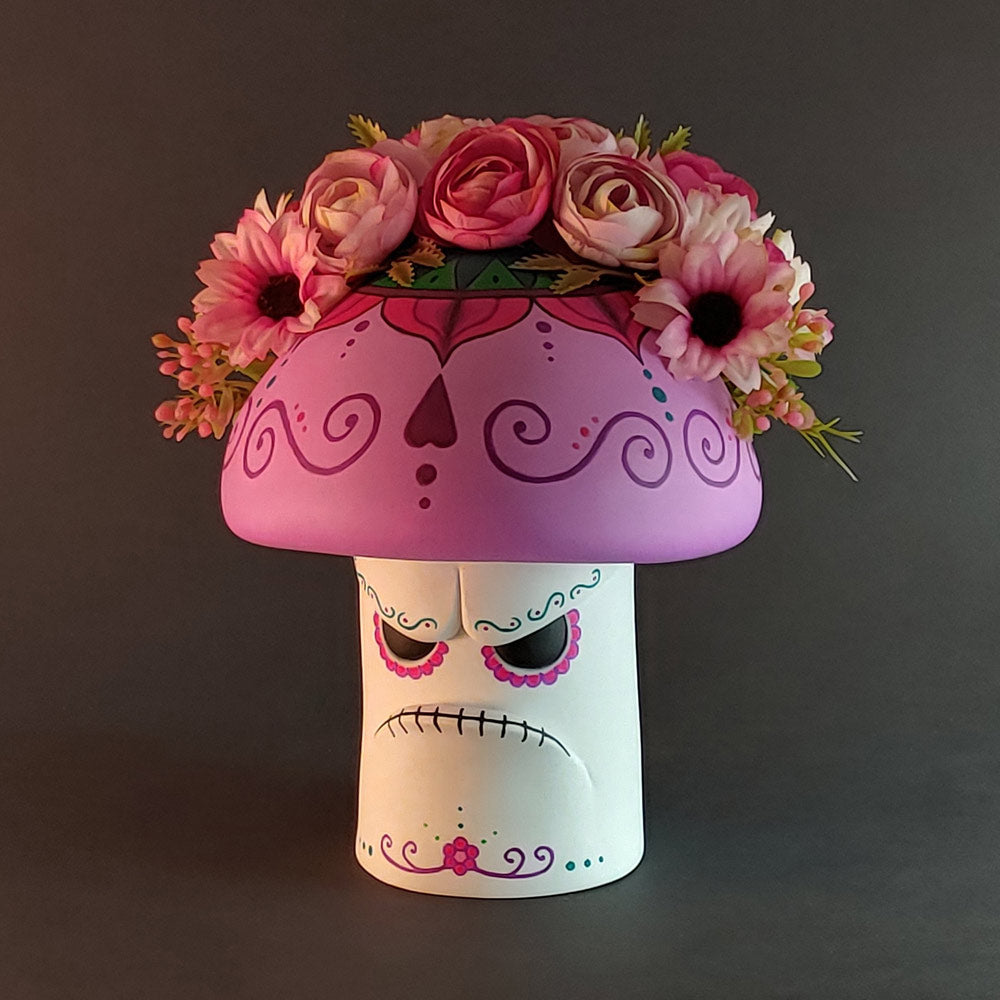 Esta es una pieza que fue creada por el artista alemán Moxodon y la cual fue parte de la Expo Internacional La Muerte Toy Show. Te comentamos que es una pieza glow in the dark?