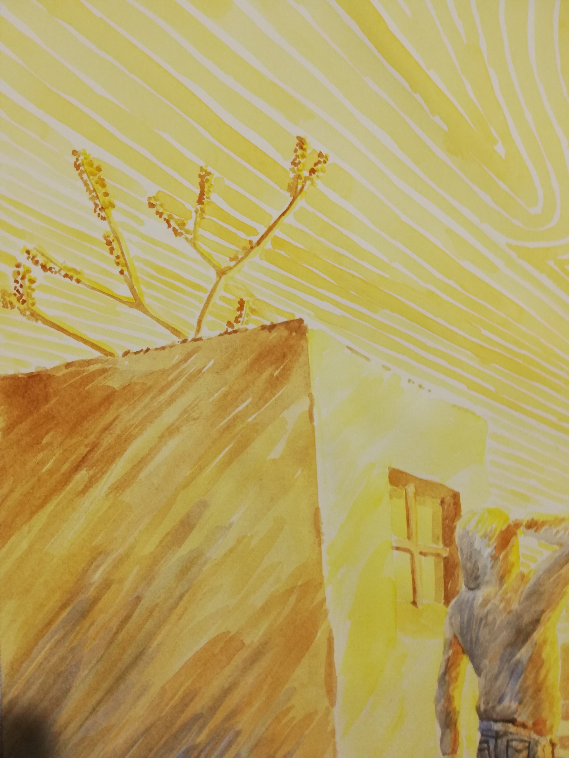 La obra invita al espectador a contemplar junto al joven, al mismo tiempo que preguntarse qué es dicha estructura, y qué secretos se contienen en su interior.
