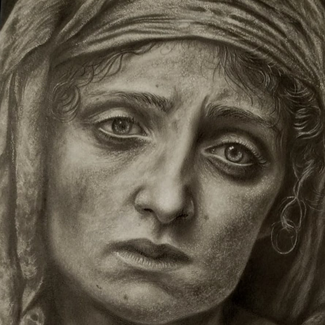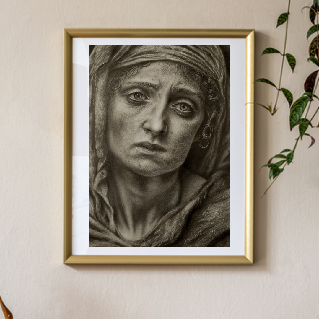 "RECONCILIATE CON LA REALIDAD" es una obra que desde mi perspectiva personal plasma que debemos aceptar la verdad de una situación, incluso si es dolorosa o diferente a lo que se esperaba o deseaba. Implica dejar de lado la resistencia y la negación, y encontrar paz en el presente tal como es. Si observamos la expresión de esta mujer podemos asimilar que su semblante es de tristeza, negación y dolor pero al mirar fijamente la situación trata de aceptar las circunstancias para crecer en la adversidad y encontrar la paz, llevándonos a la aceptación.