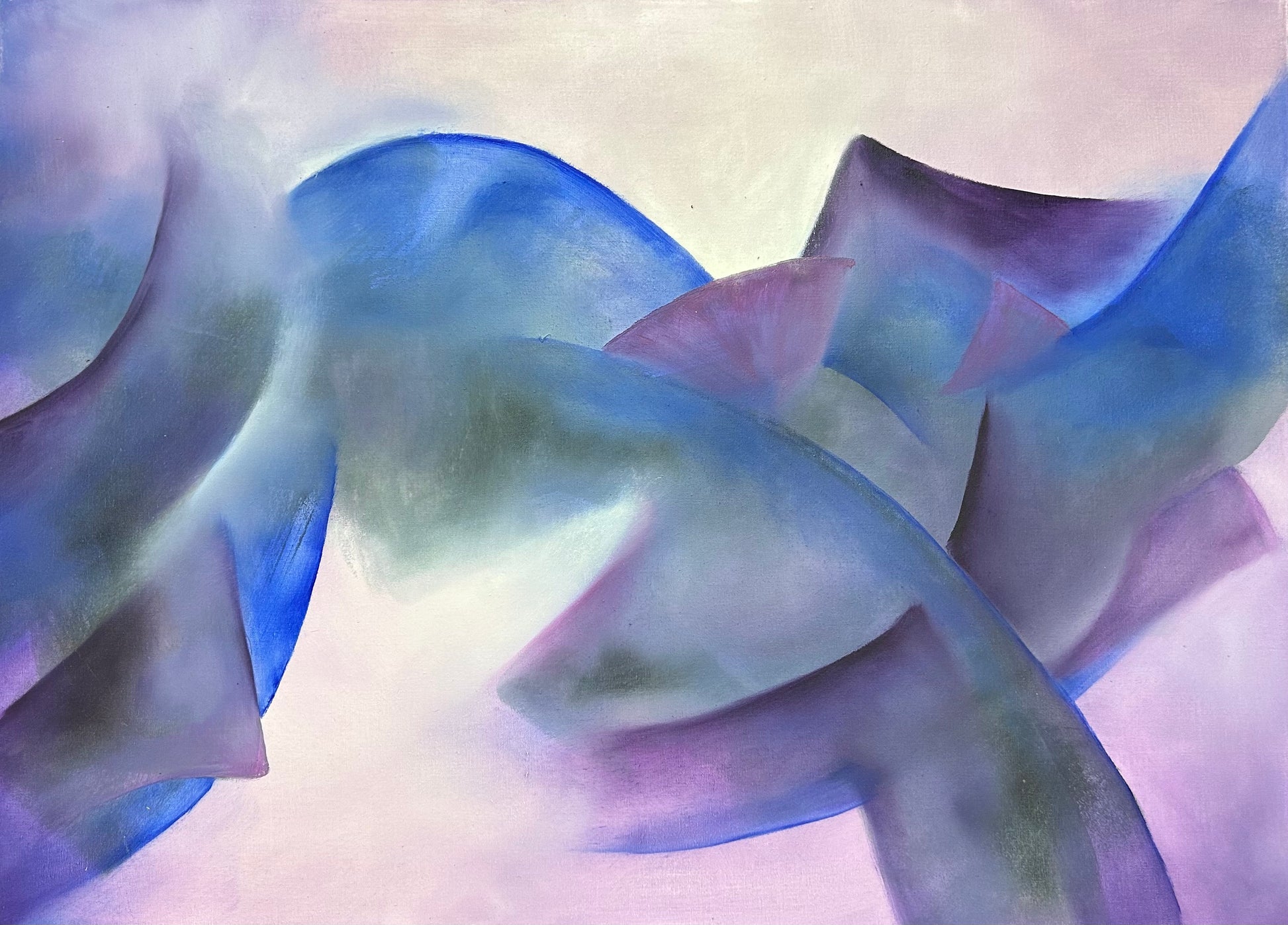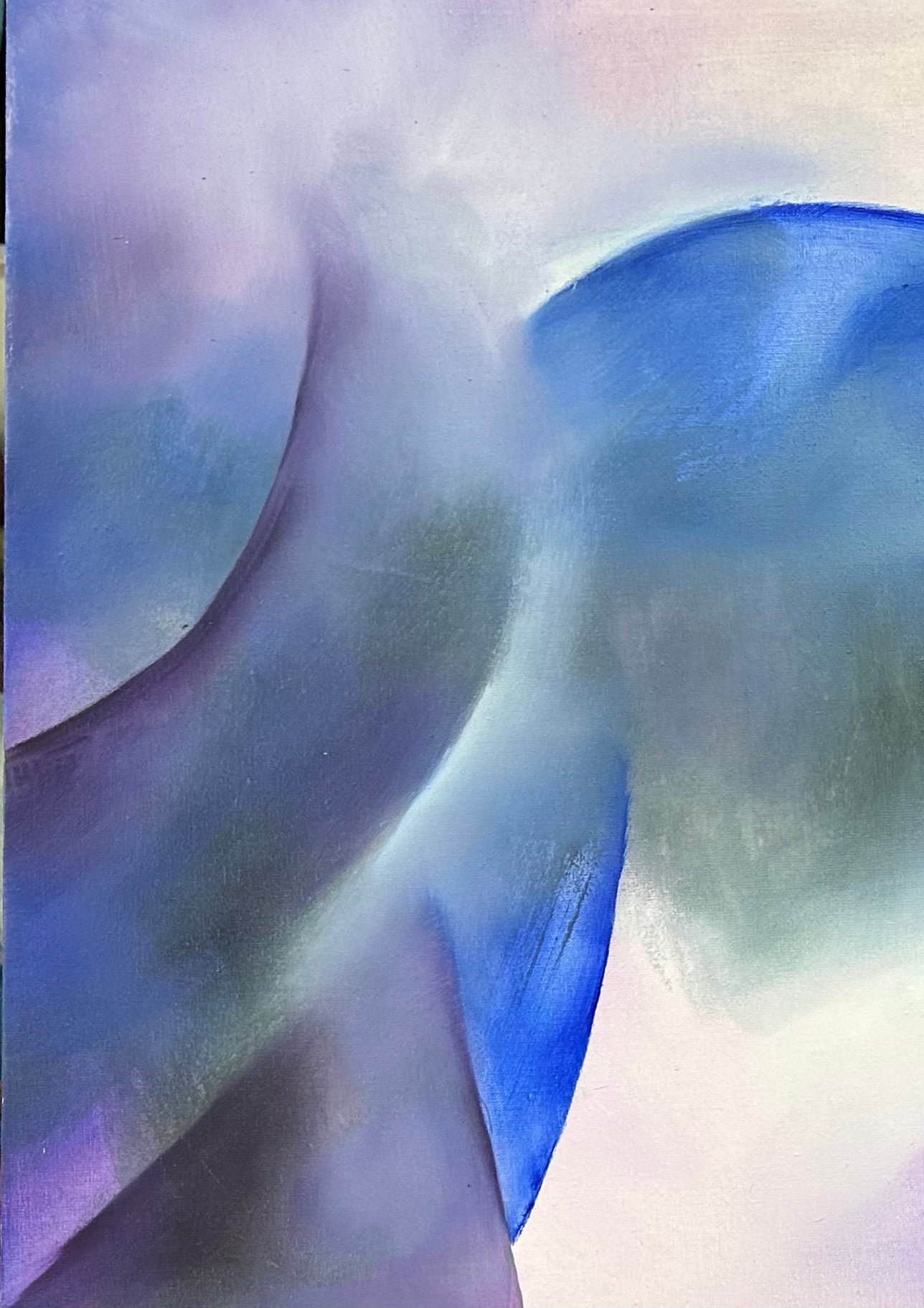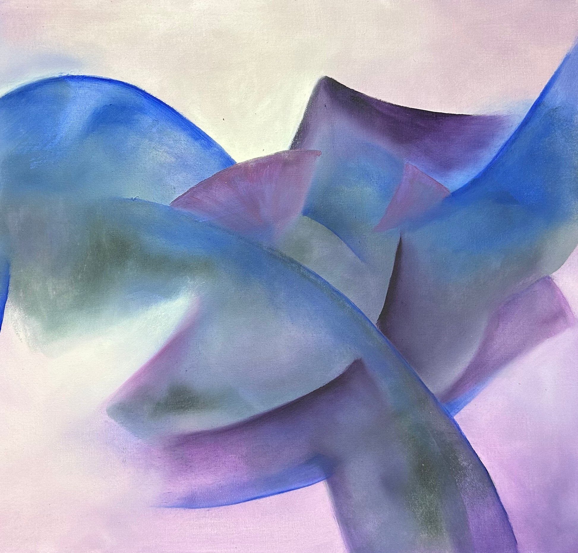 “Reflejos del Alma” es una pieza abstracta que combina armoniosamente tonos de azul, lila y blanco. La composición presenta formas fluidas y superpuestas, creando una sensación de movimiento y profundidad. Los bordes suaves y los gradientes de color le confieren un aspecto onírico, evocando emociones e introspección, como si reflejara los pensamientos más profundos del alma. Aunque no se distinguen figuras u objetos específicos, esta obra logra transmitir un estado de ánimo a través del color y la forma.