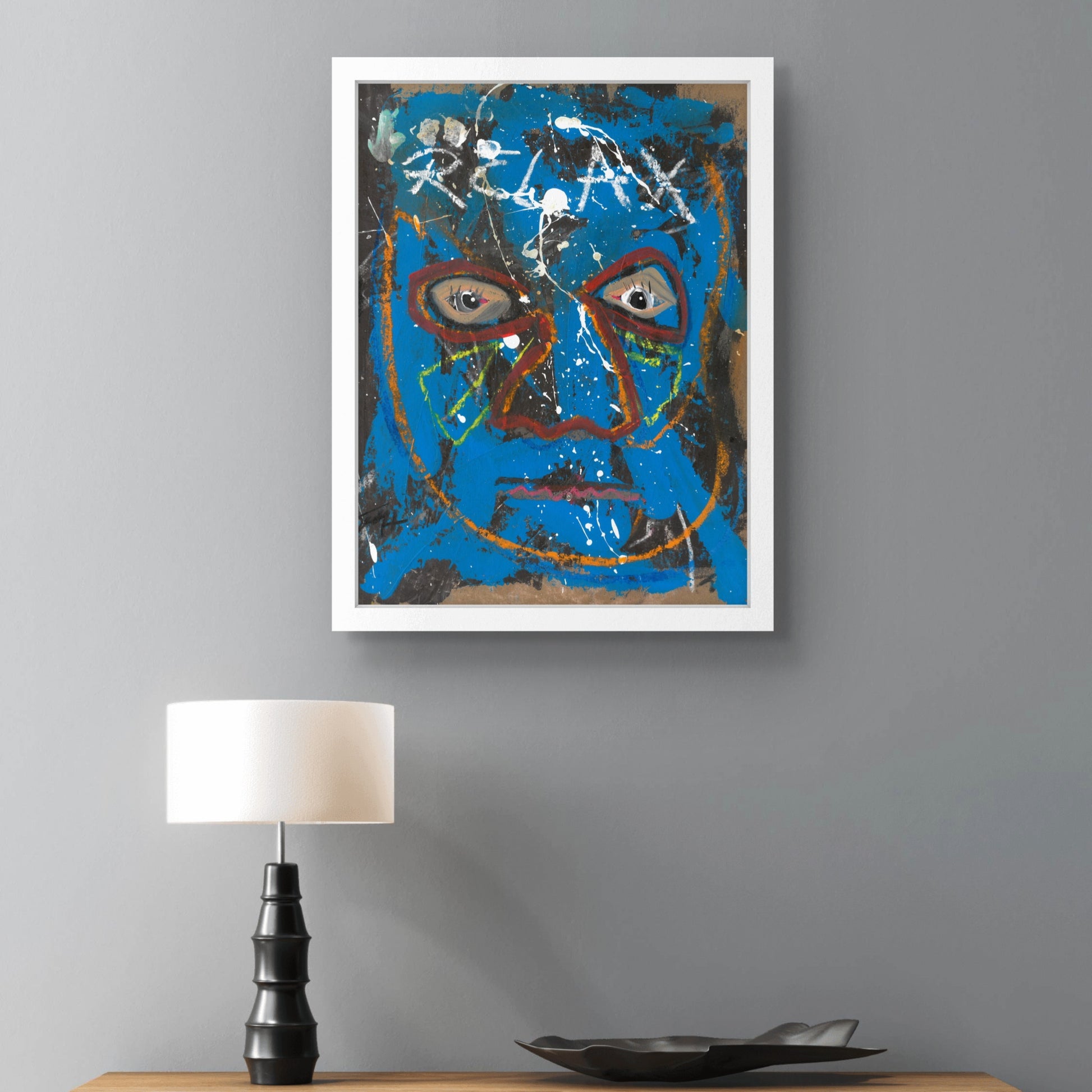 RELAX pertenece a la serie Tic Tac y explora el instante posterior a la tensión: cuando el tiempo se ralentiza y la mente se aquieta. La mirada frontal y profunda transmite presencia, mientras el azul dominante envuelve al rostro en una atmósfera de calma introspectiva.