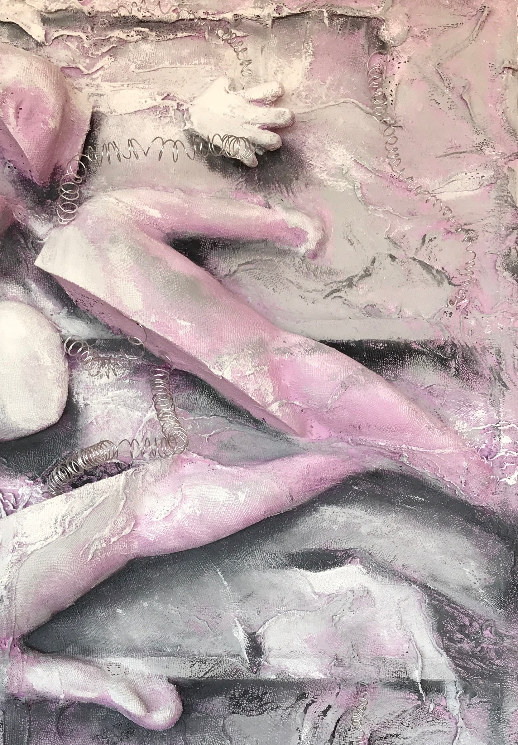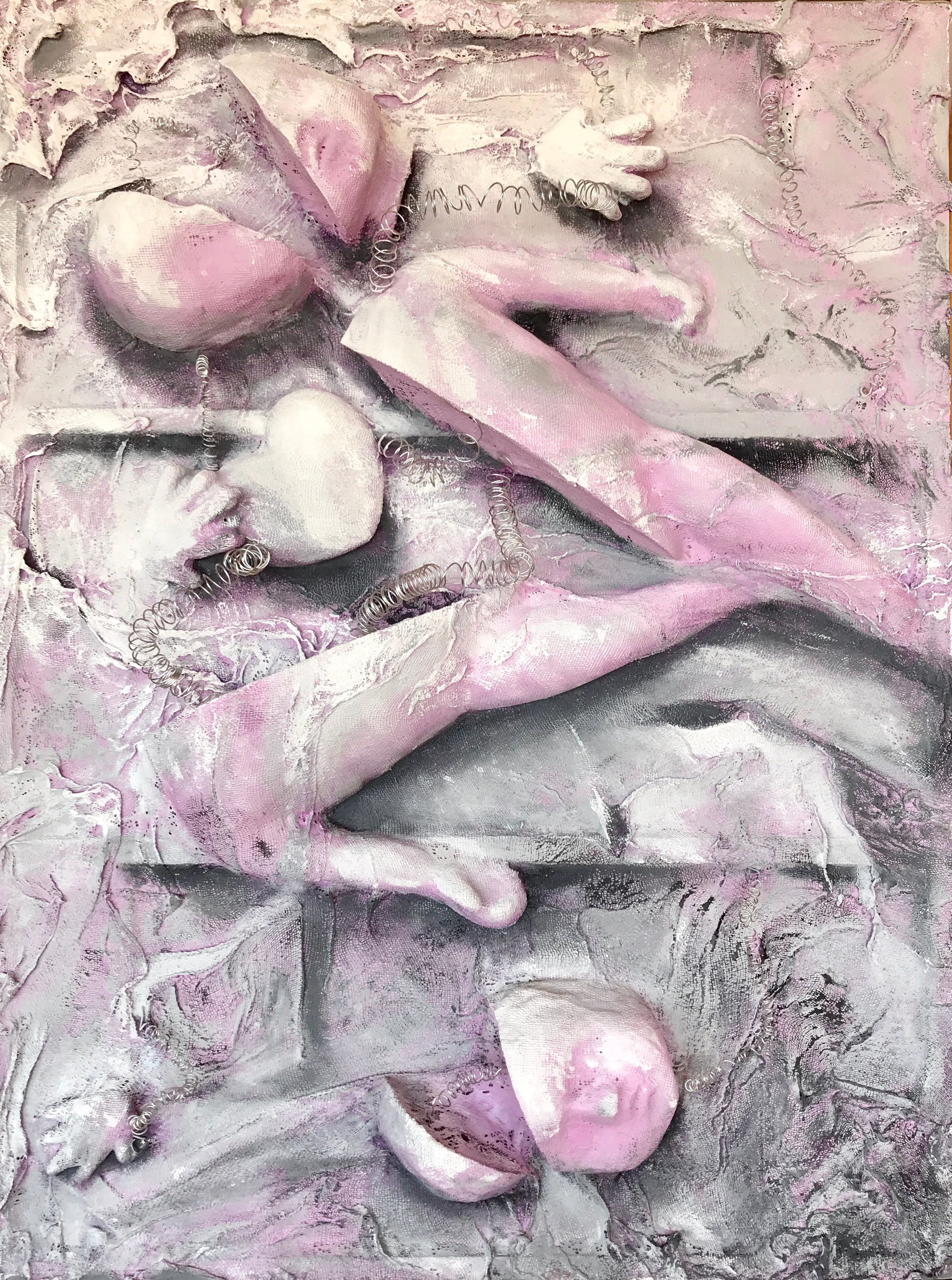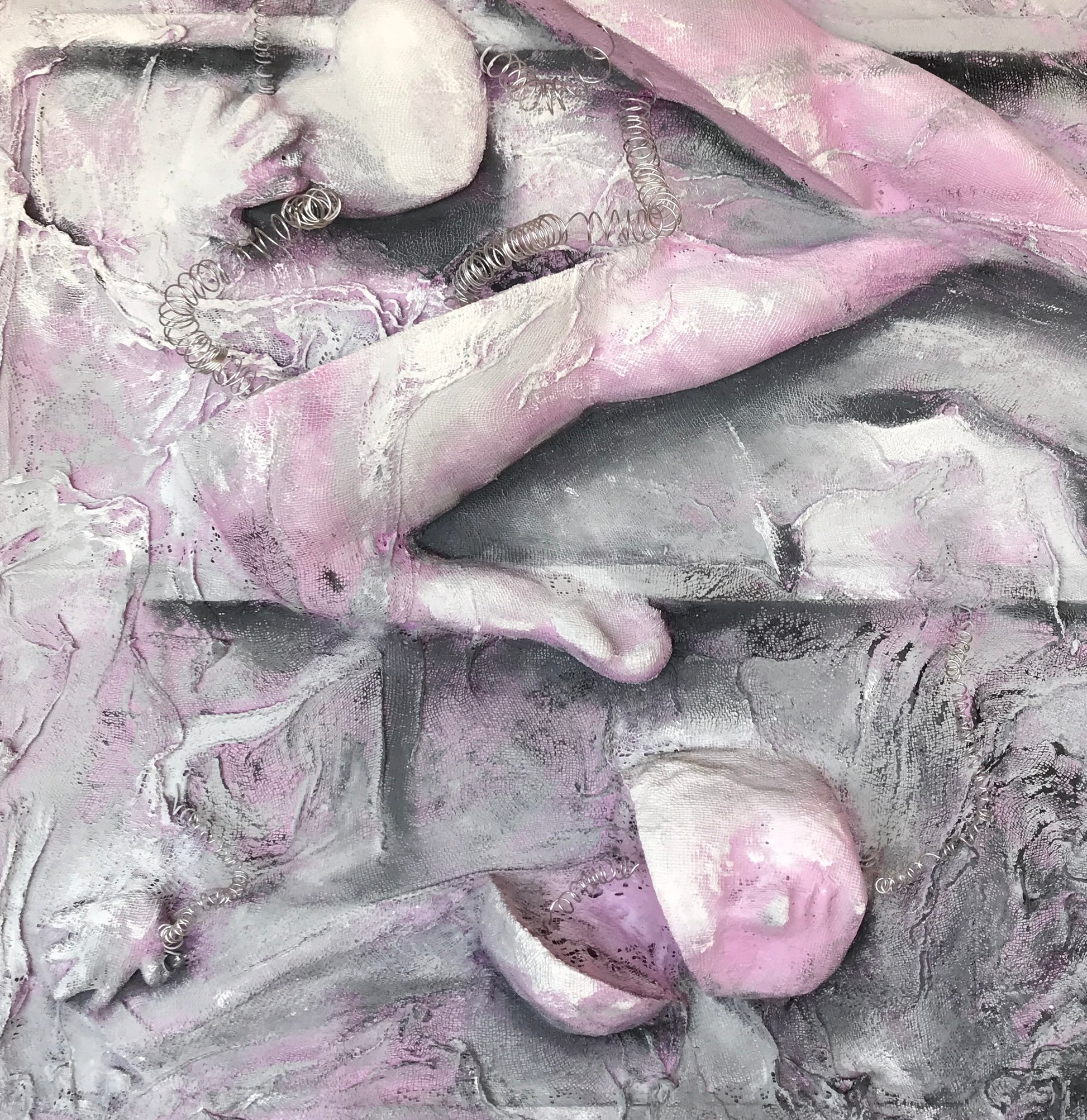 Las capas de acrílico parecen superponerse y entrelazarse reflejando como la IA puede enriquecer la creatividad humana, pero también generar preocupaciones sobre la autenticidad y originalidad en la producción artística. Los elementos de alambre, fibra de vidrio y unicel sugieren una estructura en constante cambio, simbolizando la transformación del arte en esta era Digital.