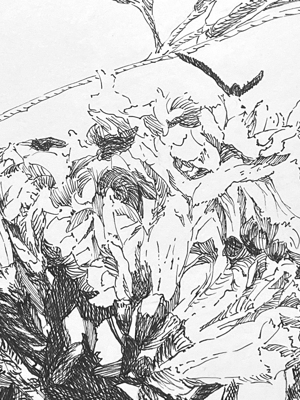 Esta pieza, esta realizada directamente con pluma y tinta. Integrando una amplia gama de recursos artísticos, estéticos y técnicos. En una expresión a través de los fundamentos del dibujo, a partir de la diversidad sensible de la línea.